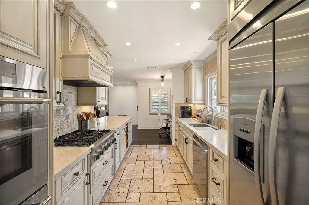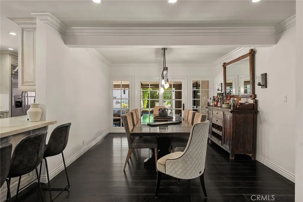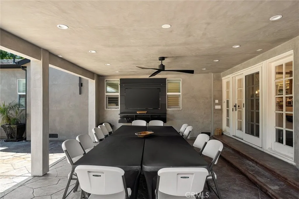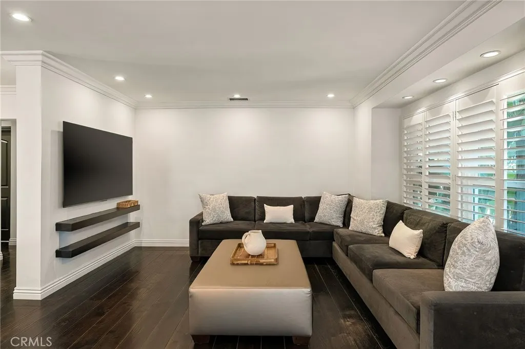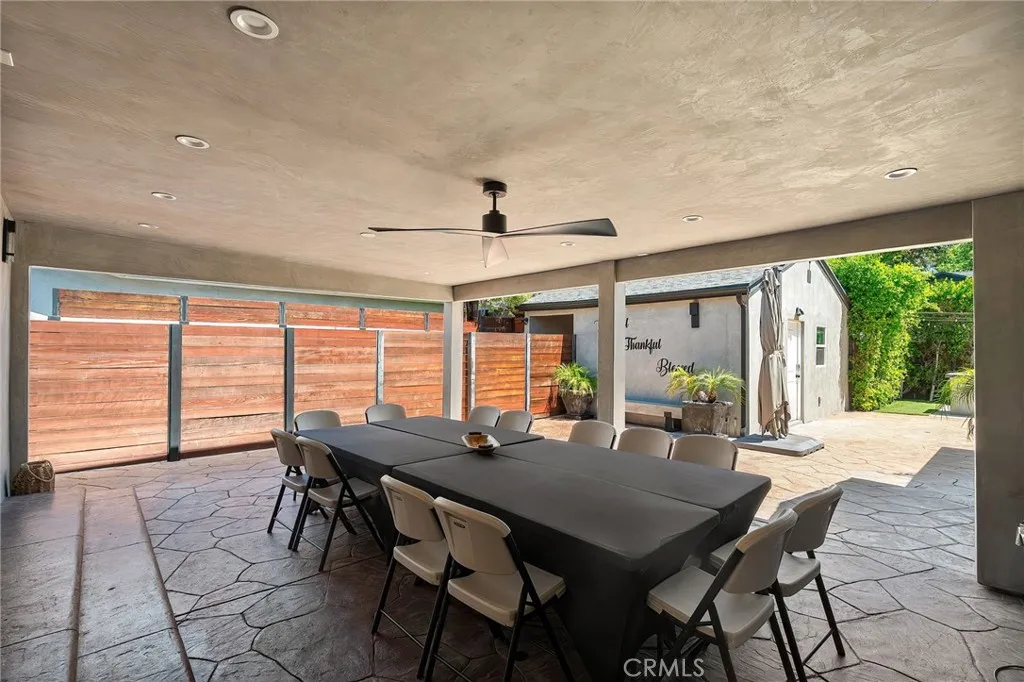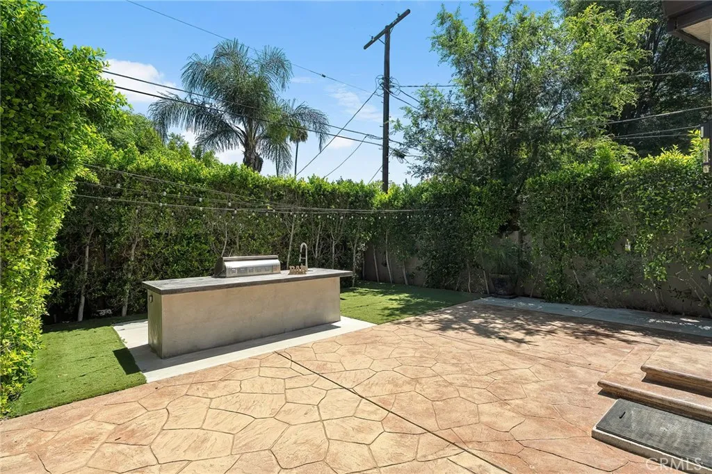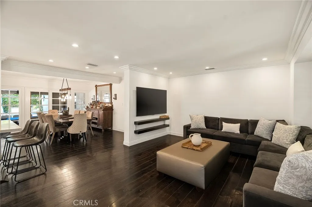 Welcome to this beautifully upgraded and move in ready home in the heart of Sherman Oaks, offering a perfect combination of style, comfort, and functionality. Step inside to a bright open layout with rich hardwood floors, recessed lighting, and a seamless flow between the living, dining, and kitchen areas. The spacious living room is both inviting and elegant, featuring custom finishes and abundant natural light. The kitchen is designed for both everyday living and entertaining, with custom cabinetry, high end appliances, generous counter space, and a large center island with seating. A built in office area adds incredible functionality, perfect for working from home while staying connected to the main living space. The bedrooms are well proportioned and thoughtfully designed. The primary suite offers a comfortable retreat with ample closet space and a beautifully finished bathroom. The home also features French doors that open to the backyard, creating a true indoor outdoor lifestyle ideal for relaxing or hosting. The exterior showcases a clean modern look with a private driveway, gated access, and lush landscaping that adds both privacy and curb appeal. Move in ready and ideally located near shopping, dining, and everything Sherman Oaks has to offer, this home truly checks every box.