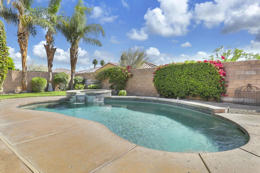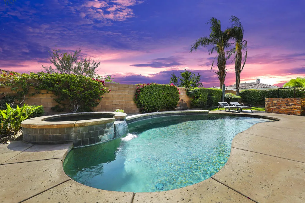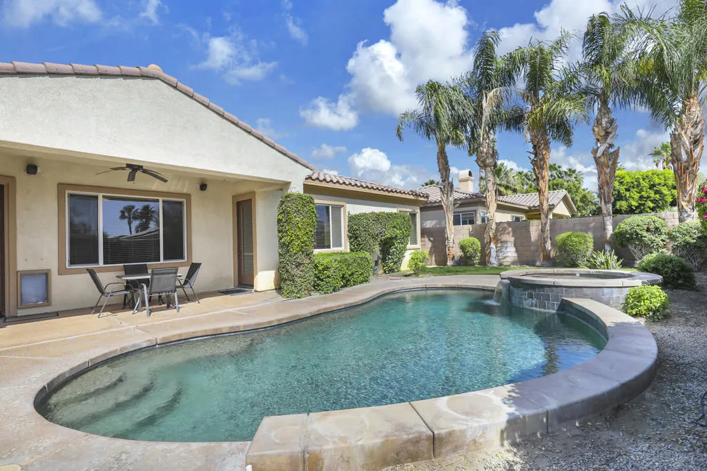 Welcome to Estacio! Exceptional opportunity to own a beautifully situated home on a corner lot at the end of a quiet cul-de-sac at 48640 Vienna Court. This property offers the perfect blend of privacy, space, and desirable outdoor amenities.Featuring a well-designed floor plan with abundant natural light, the home provides comfortable living spaces ideal for both everyday living and entertaining. The kitchen opens to the main living area, creating a seamless flow for gatherings.Step outside to your private backyard retreat complete with a pool and spa, perfect for enjoying warm desert days and relaxing evenings. The corner lot location enhances curb appeal and provides additional space and privacy rarely found in similar homes.Located in a desirable neighborhood with convenient access to shopping, dining, and local attractions.