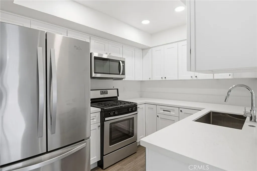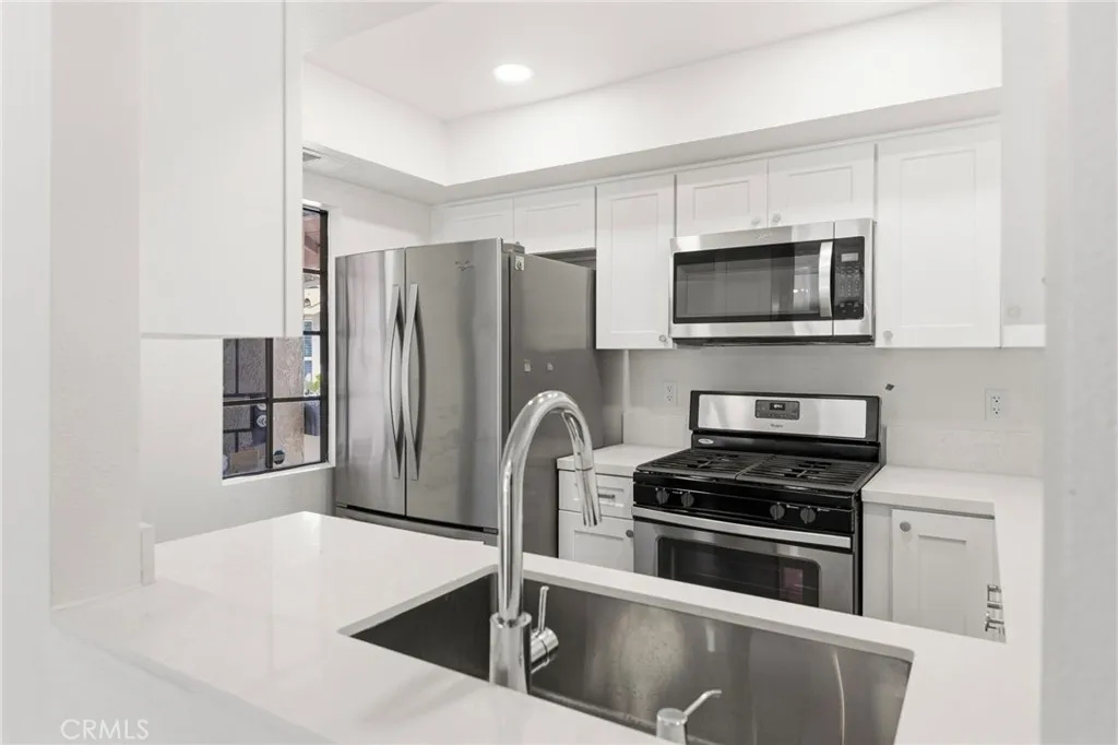 Welcome to 2609 W Cameron Ct., Unit 224, Anaheim—a well-maintained 2-bedroom, 2-bathroom single-story upper end unit offering comfort and privacy. The primary bathroom was completely remodeled, fresh paint, updated flooring throughout, new lighting, 2 car garage and community pool! This light-filled home features cathedral ceilings, an oversized primary bedroom, and a private balcony. The fully remodeled kitchen adds modern style and functionality, complemented by a convenient indoor laundry area. Located in a quiet community, the HOA provides well-maintained grounds and common area upkeep for easy living. Ideally situated near schools, shopping, dining, and freeway access.