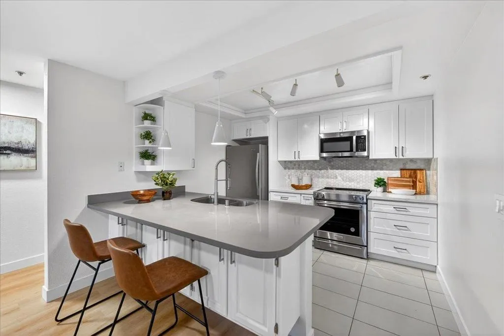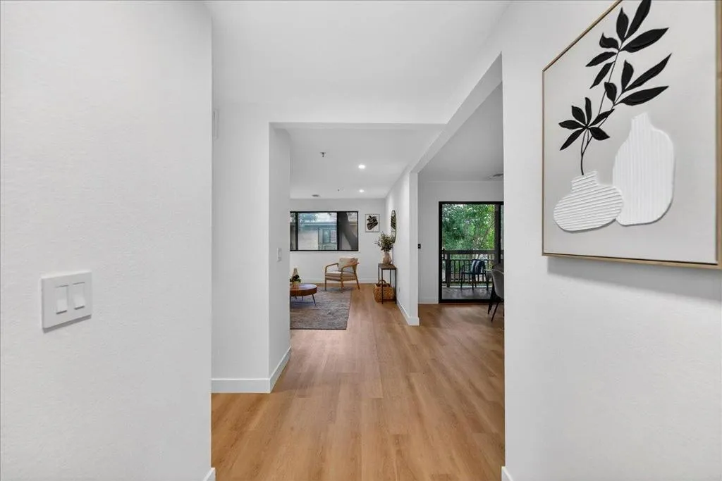 Welcome to one of Santa Clara's most spacious condo offerings under $800K. Designed for comfortable, low maintenance living, this second floor, single level home features bedrooms positioned on opposite sides for added privacy and flexibility. Open living spaces and large windows bring in natural light, creating a calm and inviting atmosphere throughout. Recently refreshed with painted cabinetry, new flooring, recessed lighting, a new AC system, stainless steel appliances, and fresh interior paint, the home feels clean, cohesive, and move in ready. A private balcony overlooks mature trees, offering a sense of quiet and separation. Designed for ease, the HOA covers hot and cold water and provides access to community amenities including a pool and recreation room, creating a more complete, low maintenance lifestyle. Two parking spaces, elevator access, in unit laundry, and secure entry add to the convenience. Well positioned near Apple, Nvidia, and everyday essentials, with easy access to major commuter routes.