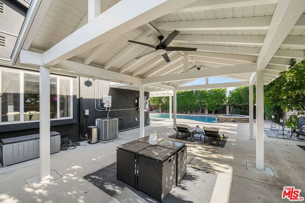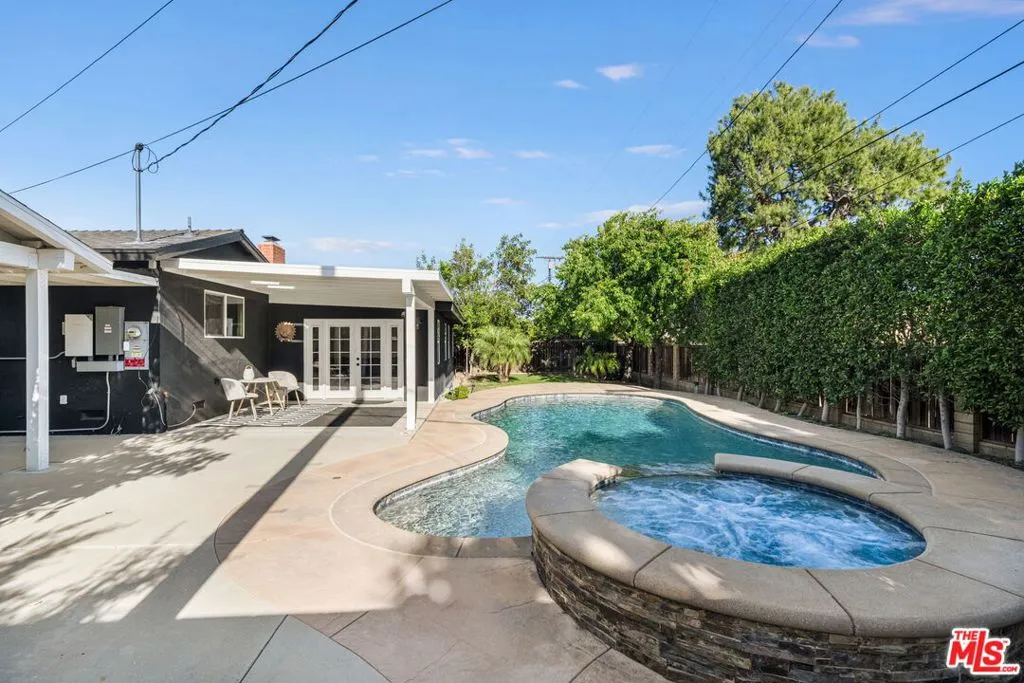 Modern Living Meets Energy Independence! Welcome to this beautifully remodeled 4-bedroom, 3-bathroom residence offering over 2,000 sq ft of open-concept living on an expansive 10,000+ sq ft lot in a sought after neighborhood. Designed for both comfort and entertaining, this turnkey home blends modern upgrades with resort-style outdoor living. Step inside to a light-filled interior featuring a custom chef's kitchen complete with a high-end professional-grade stove, elegant marble countertops, and designer finishes. The open layout flows seamlessly into the main living areas, anchored by a charming wood-burning fireplace. The massive primary suite of this home is a true retreat with it's own sitting area, walk in closet, en suite bathroom and spacious bedroom area. Updated bathrooms, a fully rewired WiFi system, dedicated washer and dryer, and fresh interior and exterior paint within the last two years ensure a move-in-ready experience. A standout feature of this home is its commitment to energy efficiency and smart living. The off-grid solar system (to be assumed by the buyer) paired with two Tesla Powerwalls provides energy independence and backup power, while WiFi-enabled systems allow you to control the pool and spa with ease.Step outside to your private backyard retreat. A rare 10-foot-deep pool and hot tub create a true resort feel, complemented by a covered vaulted pergola ideal for year-round entertaining. The spacious yard includes a grass area for play or relaxation, along with mature fruit trees including sour cherry, apple, and lemon. Multiple outdoor zones offer flexibility for hosting, unwinding, or future enhancements. Additional highlights include beautifully landscaped designed front yard, a 2-car garage with electric vehicle capability and a prime location in desirable West Hills, just minutes from new developments, the upcoming Rams training facility, and shopping and dining at Topanga. This is more than a home, it's a lifestyle upgrade combining modern luxury, sustainability, and exceptional outdoor living.