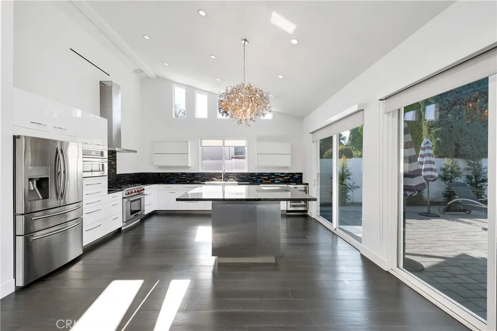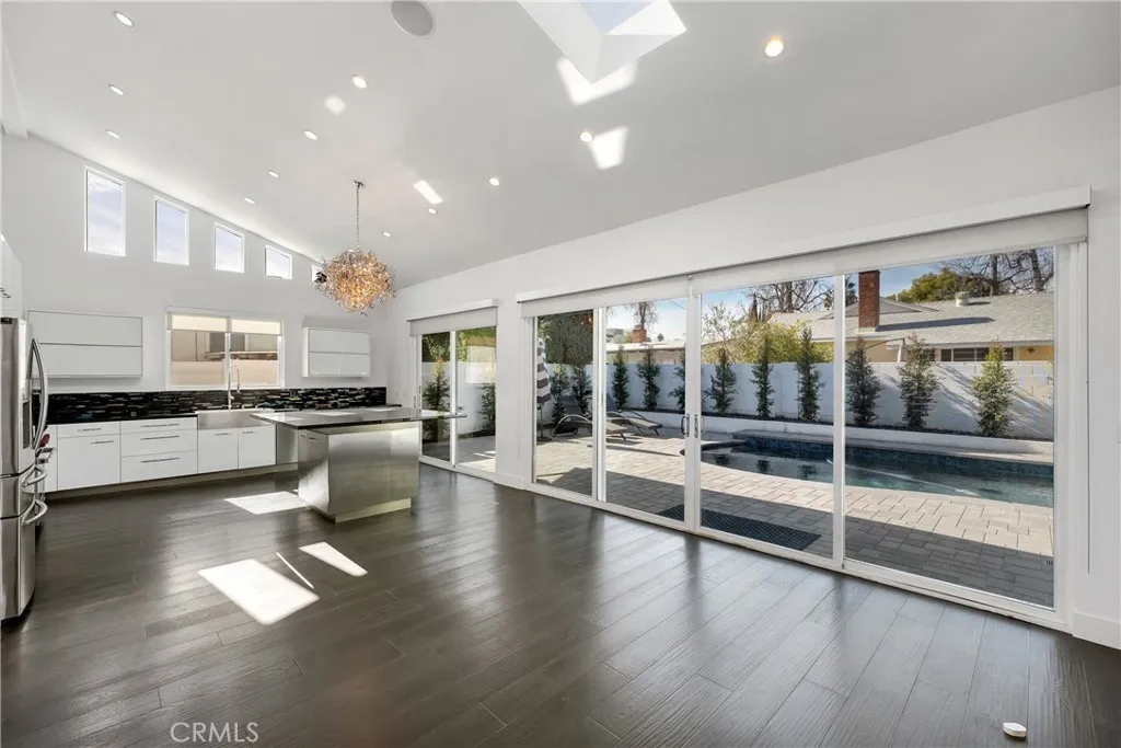 This Beautiful Contemporary Pool Home was Completely Rebuilt. Inside, find Expansive Living Spaces accented with 18 foot high ceilings, 8 foot high doorways, Solar Tubes and Architectural Skylights. The Open Concept Living Room features a Gas Fireplace with Fire Glass and a Picturesque View of the Relaxing Rear Yard. Sleek and Functional Kitchen includes Custom Cabinets, Stone Counters, High-End Appliances and Oversized Center Island with Elegant Chandelier. Vinyl Sliders Open to Rear Yard from Living Areas for Indoor/Outdoor Entertaining. Master Suite features Private Bath, Walk-in Closet and Glass Doors leading to Pool and Patio. Master Bathroom includes a Tub and Walk-in Shower w/Glass Enclosure. Secondary Bedrooms and Baths have been tastefully updated with Current Colors & Décor. Individual Laundry Room with Washer & Dryer. Entertainer's Yard features New Hardscape Patio Areas, New Landscaping, New Vinyl Fencing and Newly Refinished Pebble Tec Pool. Perfect for BBQs, Outdoor Dining, Lounging or Pool Parties. Custom Shades for Windows and Doors, Recessed Lights and Built-in Speakers. Central Air/Heat, Copper Plumbing, Dual Pane Vinyl Windows. Double Garage with Direct Access and Door Opener. Walk to Park for Shaded Playground, Community Center, Tennis and Basketball or Take the Bike Paths to Lovely Lake Balboa. Just minutes from 101/405 Freeways, Shopping and Restaurants. Award Winning Encino Elementary