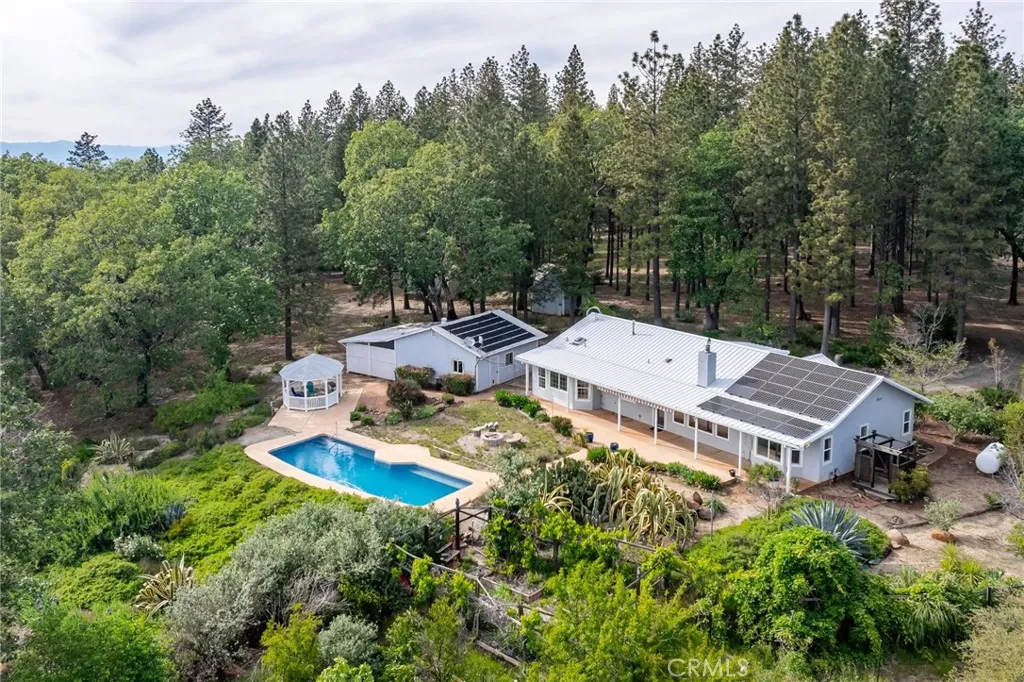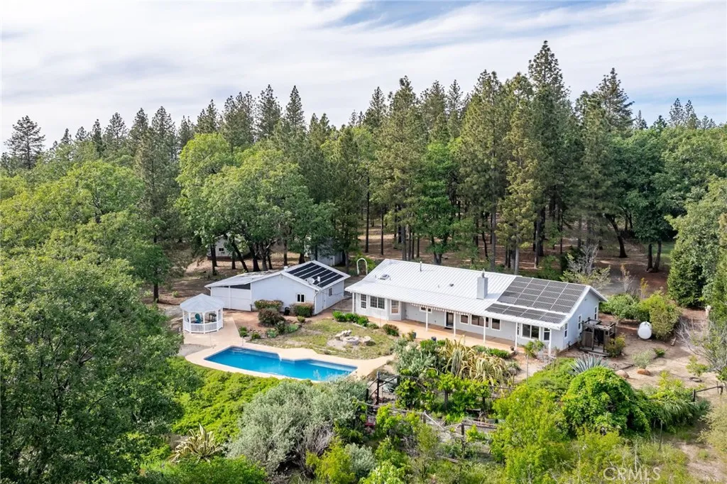 Welcome to your private slice of paradise at 4620 Wedlis Rd in Forest Ranch—where breathtaking views, peaceful surroundings, and thoughtful amenities come together on 5 stunning acres. This dream property offers truly incredible panoramic views of the Sutter Buttes, miles of rolling treetops, and canyon vistas that stretch as far as the eye can see. By night, enjoy unforgettable star-filled skies in complete tranquility. This 3-bedroom, 2-bathroom home spans 1,808 square feet and is filled with natural light, thanks to skylights and expansive picture windows that perfectly frame the surrounding beauty. The spacious living room opens to views of the sparkling saltwater pool and the incredible landscape beyond. The kitchen features white cabinetry, stainless steel appliances, abundant counter and cabinet space, and a walk-in pantry. Just off the kitchen, the large dining area offers even more stunning views, making every meal feel special. The layout includes two generously sized guest bedrooms and a guest bathroom, while the primary suite serves as a peaceful retreat with a walk-in closet and an ensuite bathroom complete with a jetted tub and separate walk-in shower. Step outside and the magic continues. The large covered patio and saltwater pool overlooks the sweeping views, making it the perfect place to relax or entertain. The property also features owned solar, a 2-car garage, a workshop, 2,500-gallon water storage, and lots of space for all your toys, animals, gardens, or future dreams. Mature fruit trees and open space add to the charm and functionality of this one-of-a-kind setting. All of this, just a short drive from Chico—offering the perfect balance of convenience and the peaceful beauty of nature.