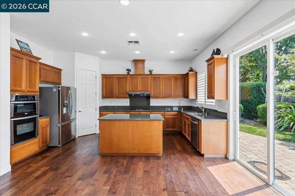 Welcome to one of Concord’s most desirable neighborhoods, offering exceptional convenience and access to highly rated schools, shopping, dining, and outdoor amenities. This prime location is within walking distance to local plazas, cafés, restaurants, fitness clubs, scenic trails, and top-rated schools including Clayton Valley Charter High School, Pine Hollow Middle School, and Highlands Elementary School. This beautifully maintained, single-story residence is move-in ready and ideally situated on a quiet court. The home features four spacious bedrooms and three full bathrooms, set on an approximately 0.25-acre lot. A three-car garage is equipped with a high-end storage cabinet system, providing both functionality and organization. The property also includes a solar energy system that is fully owned by the sellers, offering added efficiency and long-term cost savings. Inside, the home showcases classic birchwood flooring and a light-filled layout that enhances both the living and dining areas. Custom wood shutters and elegant ceiling fans add timeless style throughout, while all bedrooms are comfortably carpeted. The well-appointed kitchen features granite countertops, a walk-in pantry, and rich wood cabinetry with ample storage. Designed for both everyday living and entertaining, the kitchen includes a breakfast nook and opens seamlessly to the family room, complete with a gas fireplace and views of the backyard. The outdoor space offers a private retreat with mature landscaping in both the front and back yards. Enjoy a beautifully designed backyard featuring a paver patio, walkways, and a spacious grassy area—perfect for relaxation or entertaining.
