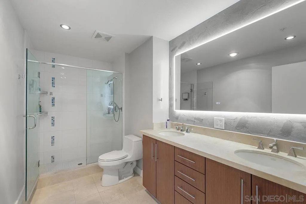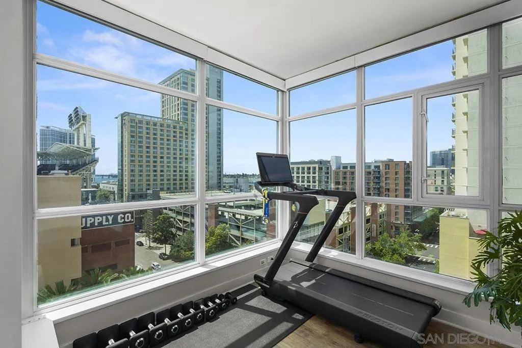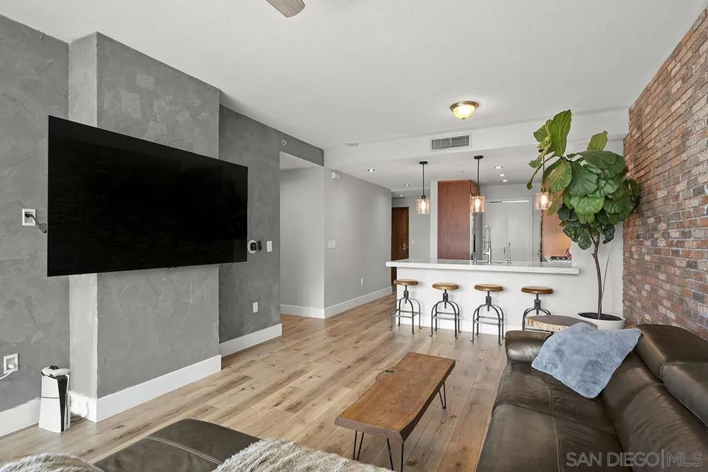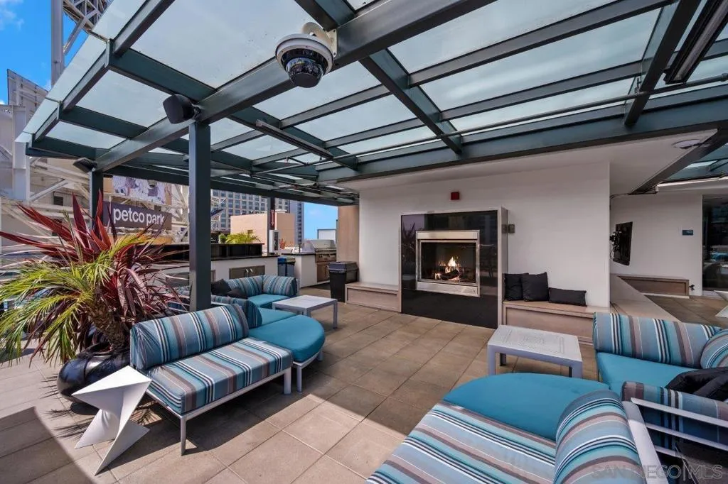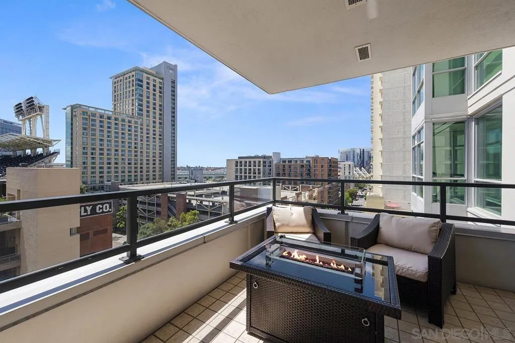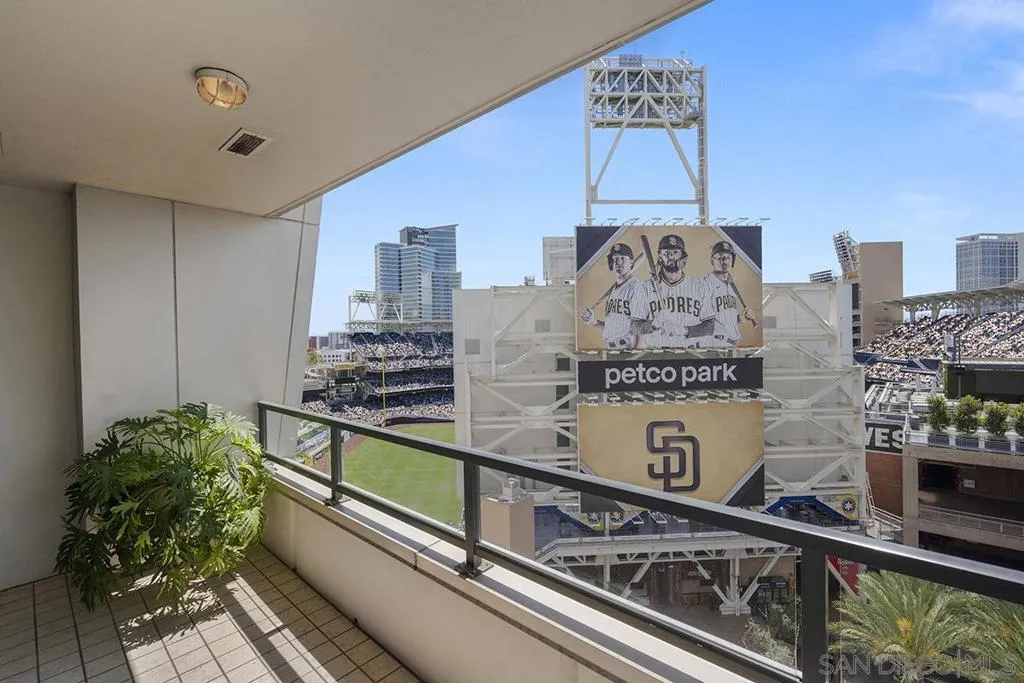 Front-row seats don’t get any better than this southwest corner residence at The Legend, Downtown San Diego’s iconic address perched directly above Petco Park—where this condo delivers a living experience for the true baseball fan. From your large, private balcony, the scoreboard, outfield, and stadium energy are on full display. For game day, pull up a chair to your firepit and settle in—you’re not just watching the game, you’re part of it. Inside, the home steps up in equal fashion. Wide-plank vinyl flooring and a striking brick accent wall stretch from the kitchen through the living space, adding a level of warmth and character rarely found in a high-rise plus remote shades throughout. The kitchen is the heart of the home, featuring stainless appliances, upgraded custom slab stone counters with breakfast bar, glass pendant lighting, gas cooktop with hood, and rich wood cabinetry—perfect for hosting before first pitch or unwinding after the final inning. The primary suite takes full advantage of its corner positioning with floor-to-ceiling windows that capture sunlight, the cityscape, and peek bay views, along with a walk-in closet and an ensuite bath complete with dual vanity with backlit LED mirrors and step-in shower. The second bedroom offers flexibility with equally inviting natural light and ballpark views, ideal as a guest retreat, home office, or a combination of both. Rare features with two parking spaces (tandem) and a private storage unit right outside your condo’s door; valuable perks in the heart of the city! Just steps from the Gaslamp Quarter, the waterfront, and Little Italy, you’re immersed in the best of San Diego’s dining, entertainment, and coastal lifestyle. When it comes to location, lifestyle, and views, this one truly hits it out of the park! The Legend is the only residential high-rise to be built inside the gates of a Major League Ballpark and the only residential tower to be built on the three-acre Park at the Park! This iconic building overlooking the Padres Ballpark will be treasured for generations with historic detailing preserved by Bosa to create a world class residential tower. Centrally located next to the Gaslamp Quarter and Marina District for convenient access to shopping and endless dining options. The Legend’s amenities include a second-floor rooftop deck looking out over Petco Park complete with pool and spa, a fully equipped fitness room, roof garden, barbeque area, steam, sauna and changing rooms. Your guests and clients will love 'Club Legend' located on the seventh floor, complete with a huge roof deck overlooking Petco Park and an outdoor fireplace lounge fully-equipped with indoor and outdoor kitchen and BBQ. An elegant courtyard entrance, creating a private enclave approaching the lobby provides a fitting and impressive sense of arrival for residents and their guests. The concierge service and 24-hour security add a sense of belonging while an ambiance of refinement and contemporary sophistication is apparent throughout the building.