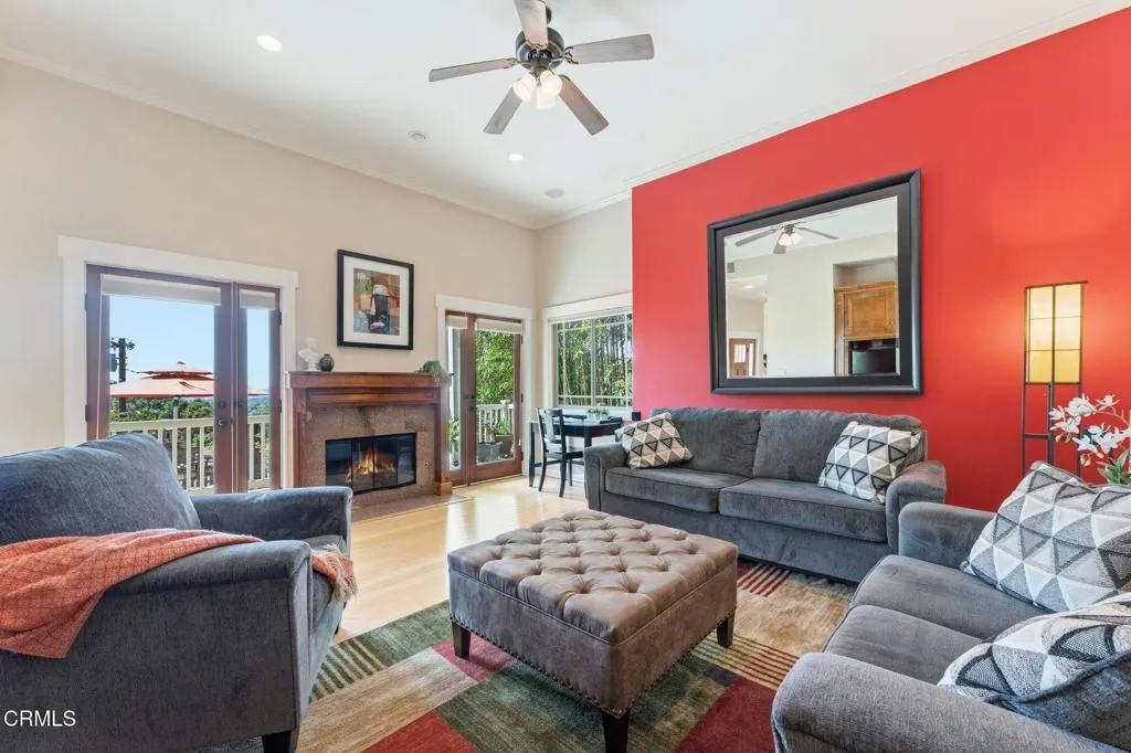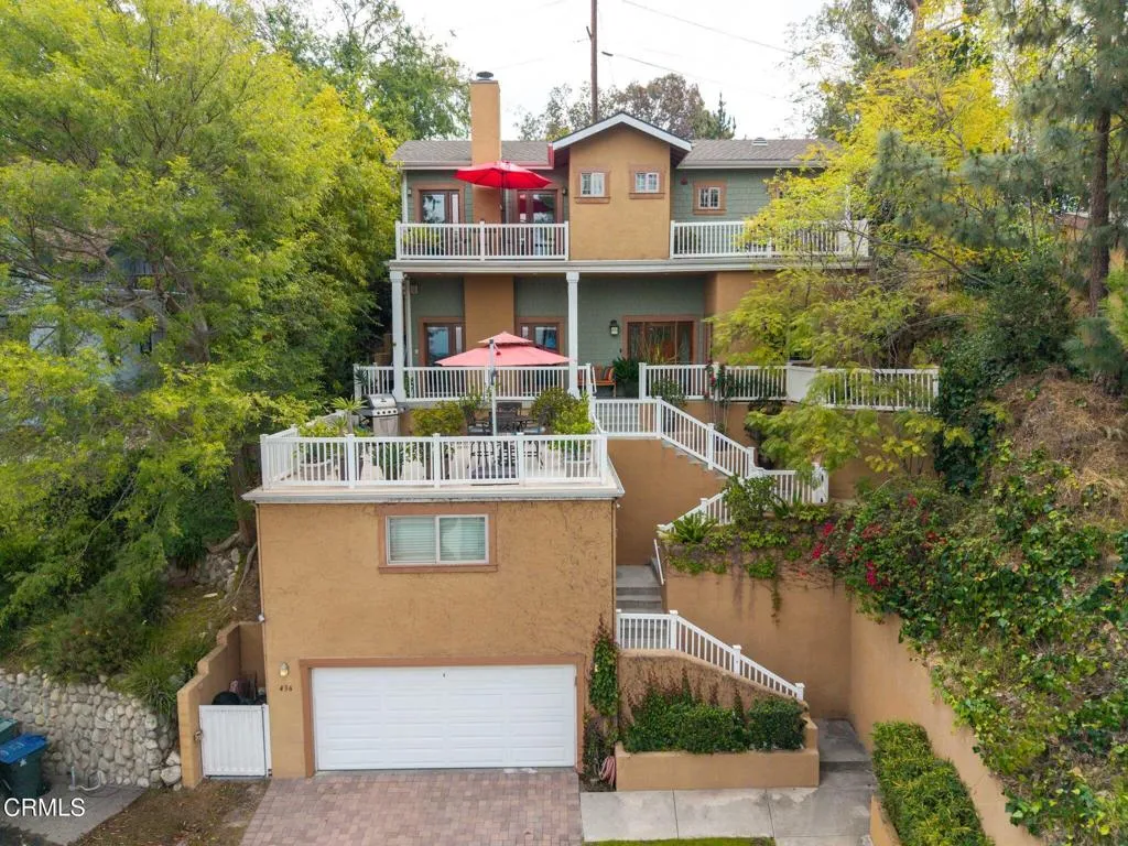 Perched above a quiet, winding road in gorgeous San Rafael Hills, 436 Redwood Dr is the hillside retreat you've been searching for. This peaceful home is inviting and secluded, with multiple outdoor spaces offering sweeping views. Ascend the ivy-draped stairs to the generous front patio where the San Gabriel Mountains create a stunning backdrop. On the main level, hardwood floors and a classic fireplace set an elegant tone in the living room. French doors open to the patio beyond while bringing in radiant natural light. The sunlit dining area is open to the spacious kitchen, which includes stainless steel appliances, abundant storage, and an eat-in counter. Upstairs, a large primary suite includes two closets, a dual-vanity ensuite, and a private balcony perfectly positioned to soak in the morning views. The secondary bedroom is equally bright, boasting its own private balcony, a walk-in closet, and a nearby full-sized hallway bath. A wonderfully secluded, bamboo-lined back patio is also accessible on this floor, providing a relaxing and private outdoor space to unwind with a good book. When evening falls, you can soak in the hot tub under the stars. The home also includes a versatile, detached bonus room ideal for a private home office, creative studio, or fitness space. Warm, private, and offering a true sense of tranquility, 436 Redwood Dr is more than a hillside retreat. It's your invitation to live peacefully above it all.