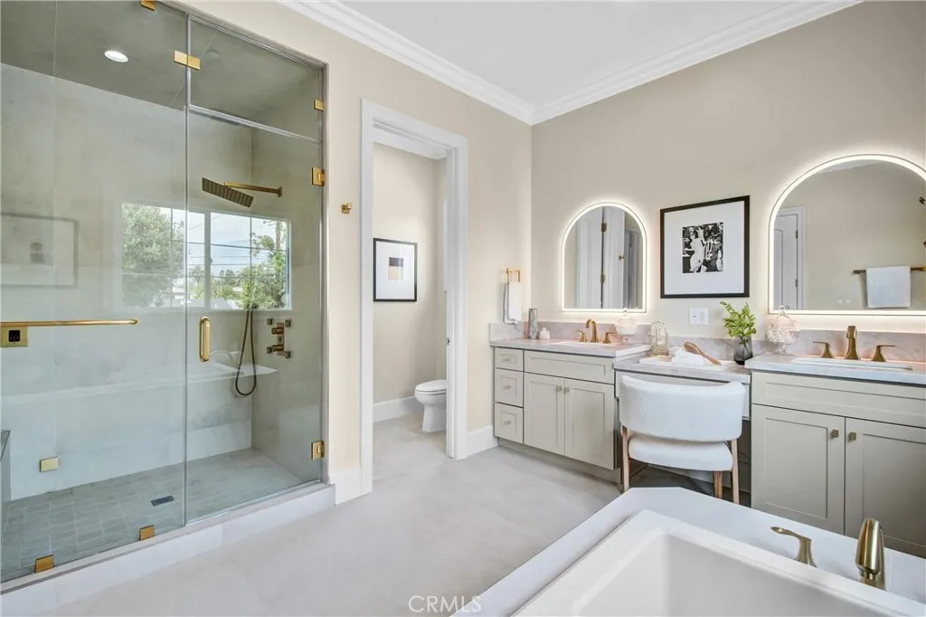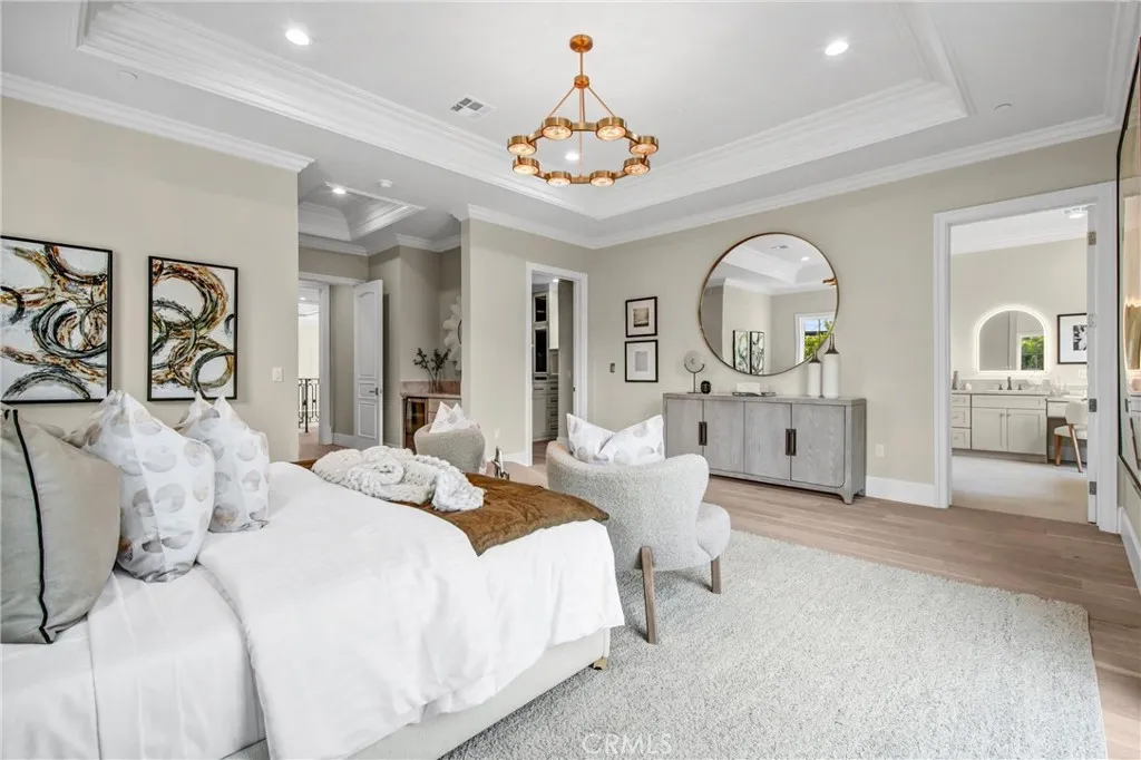 Brand new custom-built estate on a prime south-facing elevated lot, ideally positioned above street level on a quiet street surrounded by newer luxury homes. With a generous lot size and wide frontage, this distinguished residence offers exceptional curb appeal, natural light, and a truly impressive estate presence. The main residence features 5 spacious bedroom suites and a dramatic grand entry with soaring ceilings and elegant chandeliers. The formal living room is beautifully appointed for sophisticated entertaining, while the formal dining room creates an ideal setting for memorable gatherings. A private library/office and powder room add both functionality and refinement. Additional highlights include a dedicated home theater with full sound system and a wine tasting room with built-in wine cooler. Designed for both entertaining and everyday comfort, the gourmet kitchen showcases a large center island, premium appliances, and a separate wok kitchen, complemented by a full wet bar for entertaining. The bright breakfast nook with bay windows flows seamlessly into the open family room, creating a warm and inviting atmosphere. Large sliding glass doors extend the living space to a beautifully landscaped backyard featuring a sparkling pool and spa and waterfall, The detached 2-bedroom ADU includes 2 bedroom suites, a well-lit living room, a kitchenette, and washer/dryer hookups, offering excellent flexibility for extended living. Additional amenities include an attached 3-car garage, security system, designer exterior lighting, smooth stucco exterior, granite-trimmed window and door casings, and a beautifully elevated front yard that enhances the home’s stately appearance. Listing agent is available to accommodate easy and flexible showings.