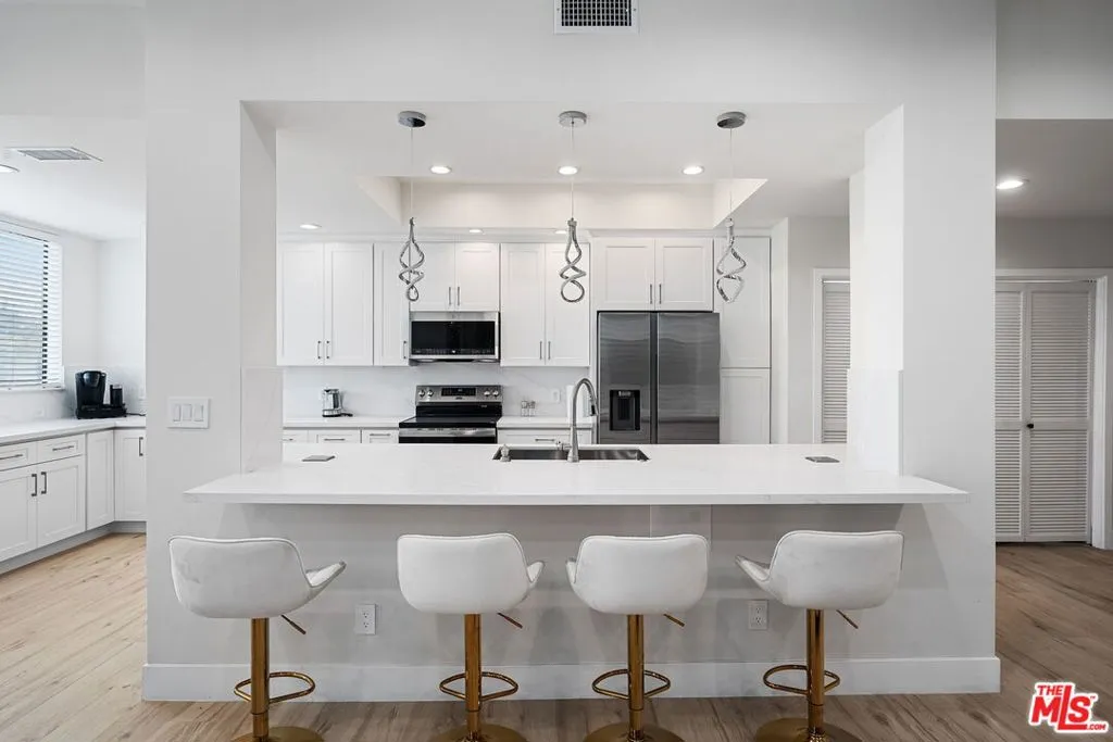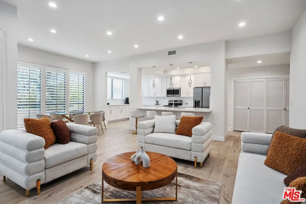Welcome to this newly renovated 2-bedroom, 2-bathroom south-facing Westwood condo. Natural light floods every corner, creating a warm and inviting atmosphere. Situated in a highly desirable Westwood location, this corner unit combines contemporary updates with a thoughtful layout. Step inside to discover a newly renovated interior, highlighted by a brand-new kitchen featuring modern cabinetry, quartz countertops, and brand-new stainless steel appliances, making it as functional as it is stylish. The open-concept floor plan flows seamlessly from the kitchen into the expansive living and dining areas, plus a covered patio, ideal for entertaining or simply relaxing in comfort. The primary bedroom is a true retreat, offering a large layout, ample closet space, and a beautifully updated en-suite bathroom. The second bedroom is equally spacious and versatile, perfect for guests, a home office, or a creative workspace. Both bathrooms have been tastefully remodeled with modern fixtures and finishes. One of the standout features of this unit is its south-facing orientation, which ensures abundant sunlight throughout the day while offering a serene and quiet living environment. The corner location provides added privacy and beautiful views of the surrounding neighborhood. Additional features include two side-by-side parking spaces in a controlled-access garage, ensuring convenience and peace of mind. The building itself offers a wide range of amenities including a pool, spa, sauna, exercise room, and a sundeck perfect for enjoying the Southern California sunshine. Located in the heart of Westwood, this home is just minutes away from world-class dining, shopping, and entertainment options. Nearby landmarks include the Westwood Village, UCLA, Century City, and easy access to major freeways. Don't miss the opportunity to own this move-in-ready gem in one of Los Angeles' most sought-after neighborhoods.