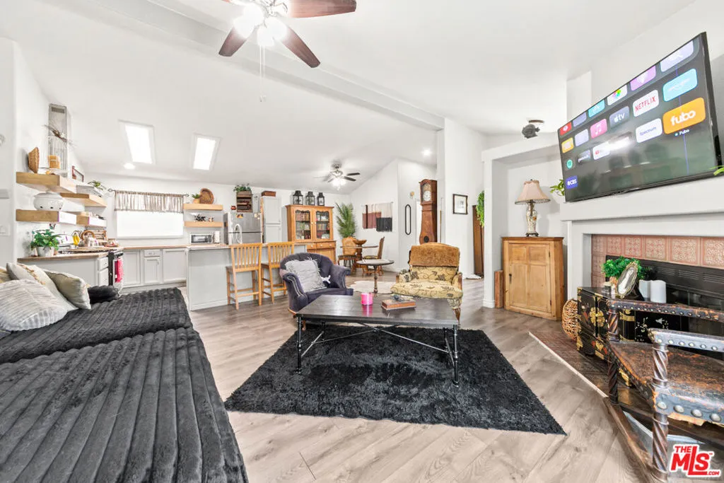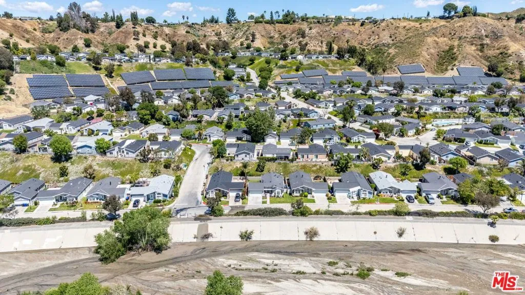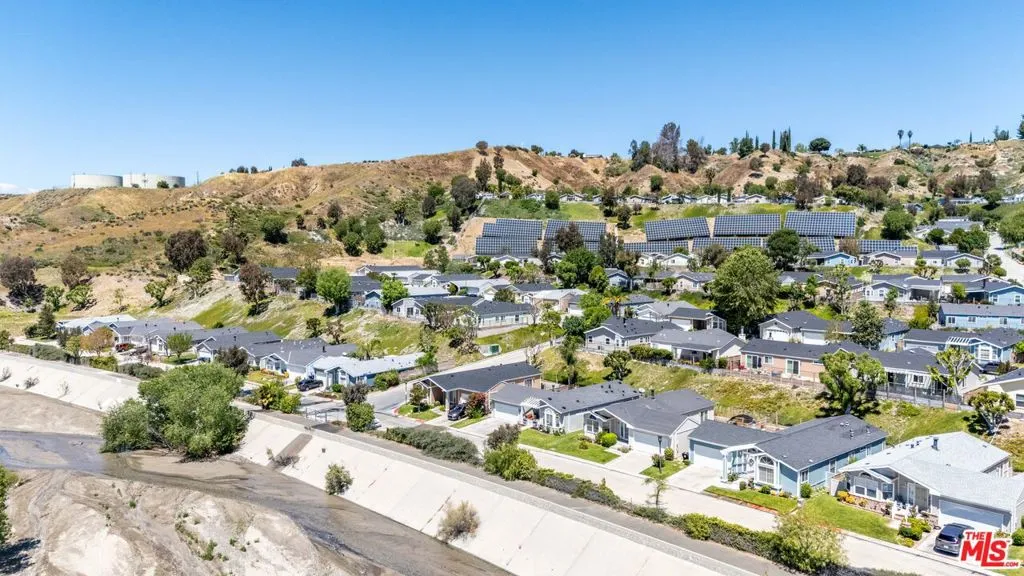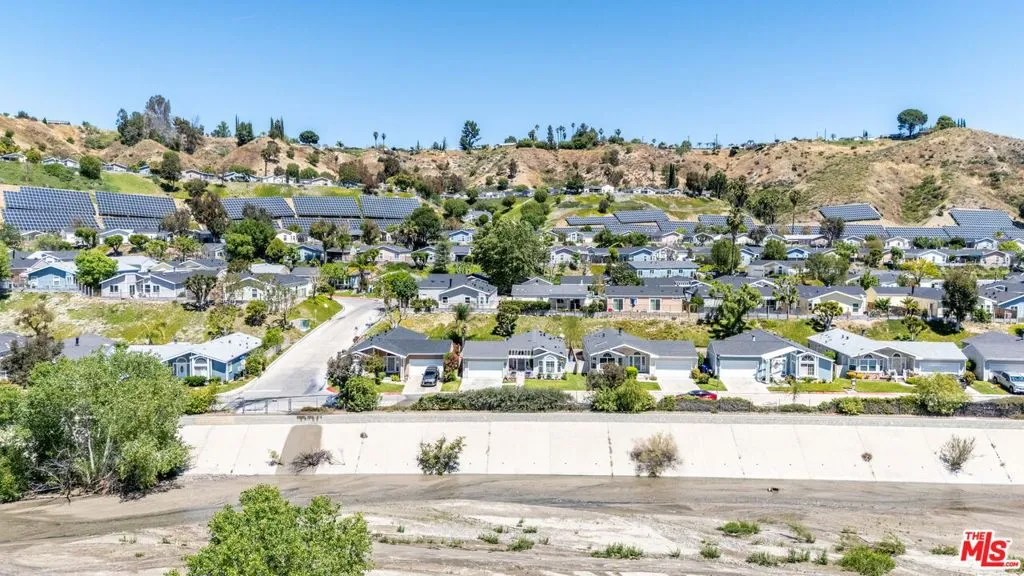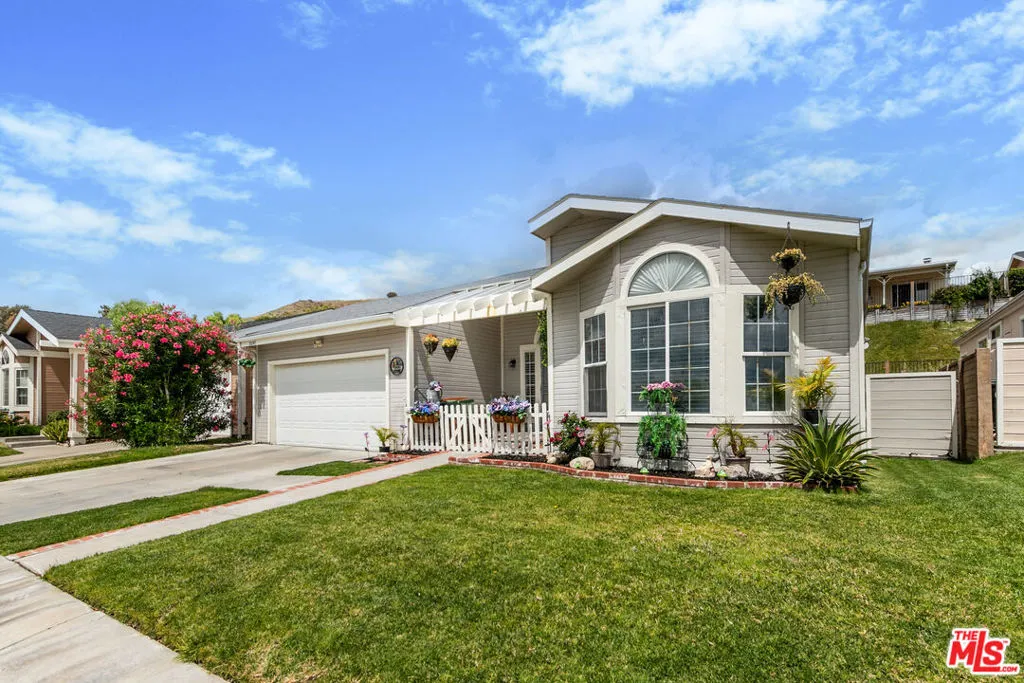 Welcome to Canyon View Estates, a gated community with guard entry offering a peaceful and well-maintained setting. This single-story manufactured home features 2 bedrooms and 2 bathrooms with an open floor plan designed for comfortable living. Inside, you will find an open and airy layout complemented by vaulted ceilings and laminate or plank flooring, creating a bright and inviting living space. The kitchen offers generous cabinetry and a practical layout, making it well-suited for both everyday use and entertaining. The overall design provides a comfortable flow for gatherings and daily living.Ideally located directly across from the Santa Clarita River, the home enjoys open views and a natural setting. Residents can take in mountain views in the winter, vibrant sunsets, and the surrounding landscape, along with the sounds of nearby wildlife and seasonal river flow.The home includes a spacious garage with high vaulted ceilings and ample built-in shelving for storage.The property offers a private and quiet setting, with a backyard and lawn area suitable for pets and outdoor enjoyment. The street is lightly traveled, adding to the sense of privacy.Canyon Estates provides a variety of community amenities, including pickleball and tennis courts, two pools, and a community center with a recreation room available for private events. The home is located a short distance from these amenities while maintaining a sense of separation. Additional neighborhood features include a small park, access to nearby hiking and nature trails, and community events throughout the year.This property offers a unique opportunity to enjoy a tranquil lifestyle within a well-established gated community.