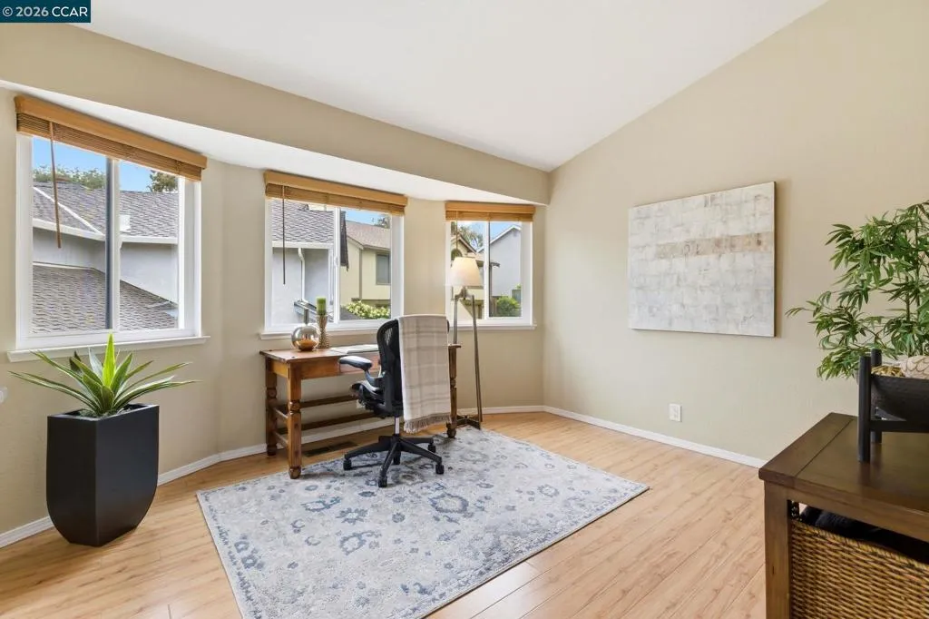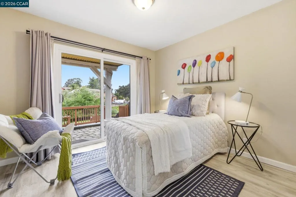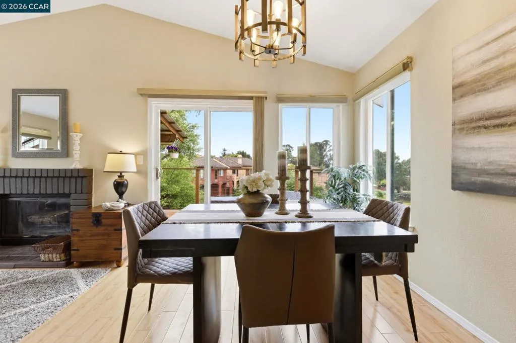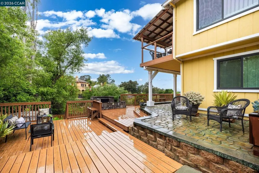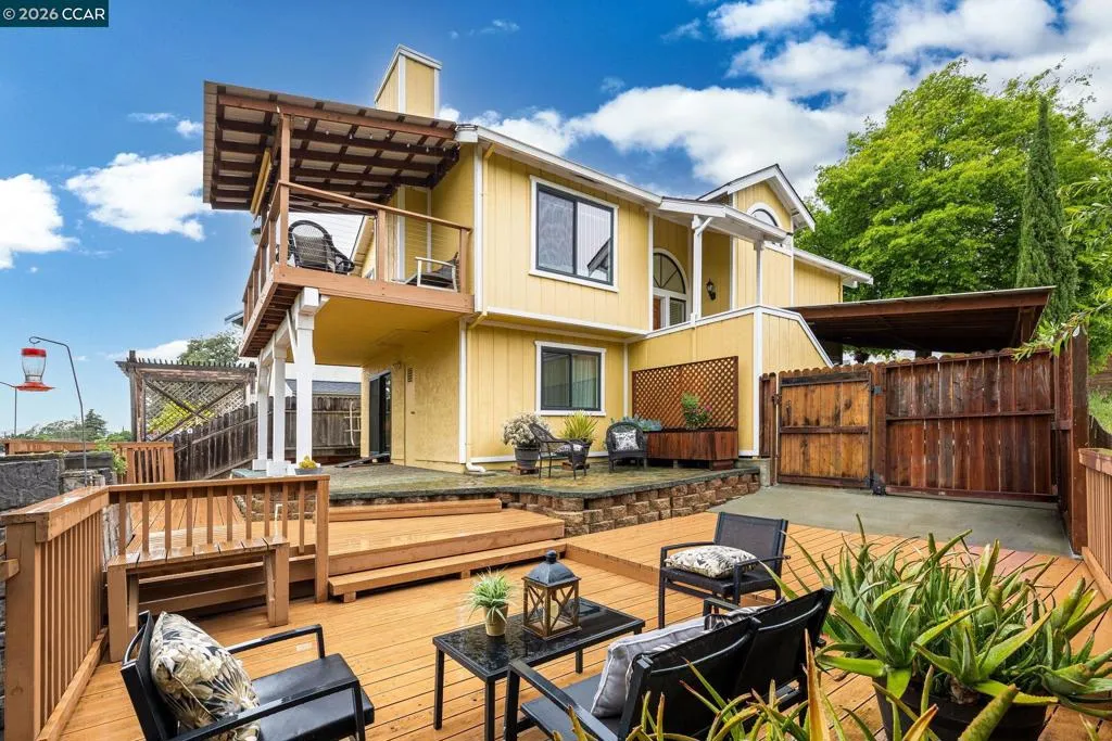 End-of-cul-de-sac setting in the Fairview area with privacy, open surroundings and views of Mission Hills, eucalyptus and a distant glimpse toward the Bay. Backing to open land with a pastoral backdrop, often dotted with grazing sheep, the setting feels unexpectedly removed while still close to everyday conveniences. The layout is designed for flexibility across two levels, with the main living spaces positioned upstairs to maximize natural light and connection to the surrounding setting. Vaulted ceilings and large windows create an open, airy feel, while the living room centers around a fireplace and opens directly to an expansive balcony that captures the surrounding views, ideal for outdoor dining, relaxing or unwinding at the end of the day. The dining area connects seamlessly to the updated kitchen, featuring granite countertops, stainless steel appliances, ample cabinetry and a functional layout that supports both daily use and hosting. A separate room off the kitchen offers versatility for a home office, additional living space or formal dining, adapting easily to changing needs. The primary bedroom is located on the main level with convenient access to a full bath, while the lower level offers two additional bedrooms and a full bath, creating a distinct bedroom wing that works well for guests, multigenerational living or workspace separation, with direct backyard access that enhances flexibility and privacy. Outdoor living is a standout with a spacious balcony and expansive deck areas that take full advantage of the setting, creating multiple zones for dining, gathering or quiet retreat. The backyard offers usable space for entertaining, gardening or relaxing, complemented by a mature lemon tree and the natural landscape beyond. Parking is a standout feature with a two-car garage, oversized carport, extended driveway with space for multiple vehicles and additional street parking, accommodating a variety of needs. Easy access to hiking at Five Canyons Open Space and Don Castro Regional Park, plus convenient connections to BART, 580 and 880. Close to K-12 schools, adding to the overall convenience of the location.