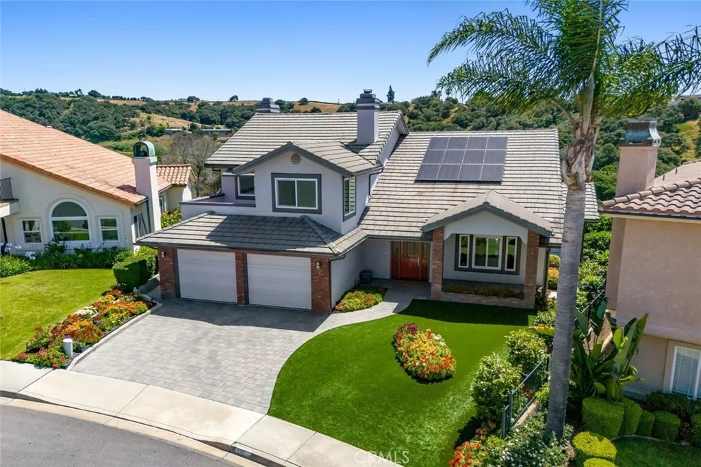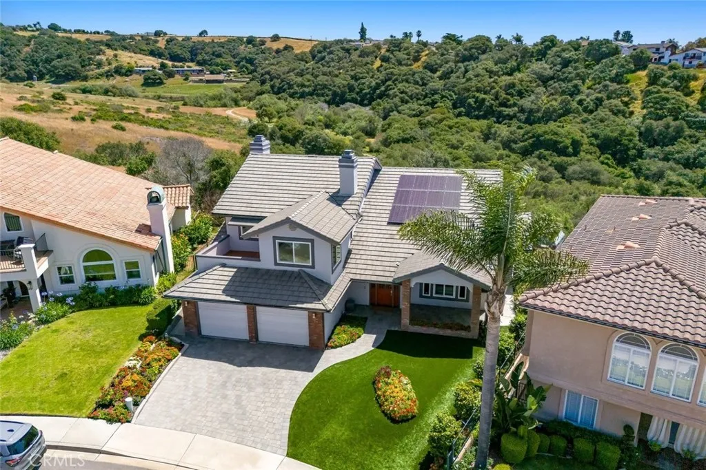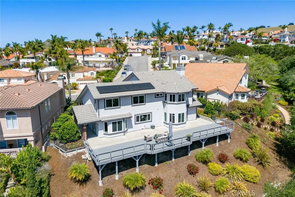 Perched in the highly sought-after Ventana Del Mar enclave of Pismo Beach, this beautifully maintained single-owner home offers breathtaking panoramic ocean and canyon views that define Central Coast living. With 4 bedrooms and 3,189± square feet, including a desirable main-level bedroom and full bath, the home combines flexibility, comfort, and timeless appeal. Meticulously cared for, the residence showcases thoughtful updates throughout, including stunning bamboo flooring, a well-appointed kitchen, and expansive living spaces designed to capture the surrounding vistas. The main level features a formal dining room, living room, and an inviting family room with fireplace—each positioned to take full advantage of the sweeping canyon backdrop. Step outside to a spacious deck ideal for entertaining or simply enjoying the serene setting, with views stretching from rolling canyons to the Pacific Ocean. The front yard features low-maintenance turf, while the property also includes owned solar for efficiency and sustainability. Additional highlights include a finished garage with epoxy flooring and abundant storage, enhancing both function and convenience. Offering privacy and tranquility, this exceptional home is just minutes from the beach, as well as the charming communities of San Luis Obispo and Arroyo Grande. Experience refined coastal living where stunning sunrises and sunsets become part of your everyday routine.