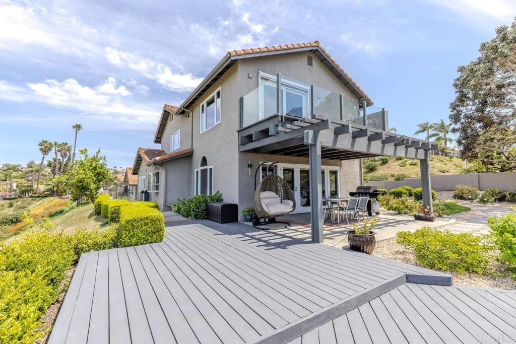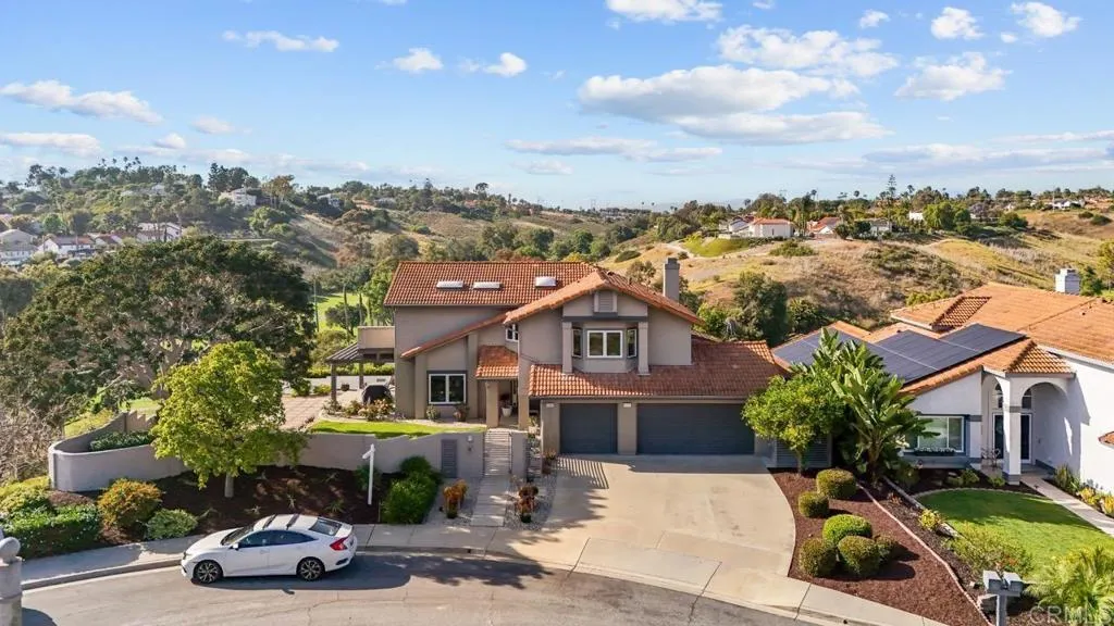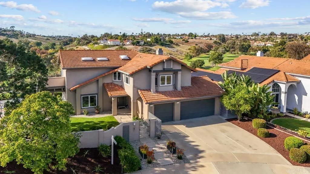 RARE COASTAL ESTATE ON EL CAMINO COUNTRY CLUB Experience unparalleled privacy and scale on the premier corner lot of the exclusive El Camino Country Club. This highly upgraded 2,900-square-foot residence sits on a massive 1.5-acre lot—an expansive private oasis that is nearly impossible to find in this coastal corridor. Situated on a quiet cul-de-sac with no HOA, this home offers a front-row seat to sunrises and sunsets with unobstructed and protected views of the El Camino golf course, rolling hills, and the ocean beyond. The journey begins through professional landscaping and a private gated courtyard, creating a serene entry to a home positioned 100+ feet above the tranquil putting grounds of the Back Nine. Inside, tile and beautiful hardwood floors run throughout the open-concept layout, connecting the dining room, family room, and living room to the spectacular panoramic scenery. The gourmet kitchen features a 36-inch Thermador range, built-in Sub-Zero refrigeration, modern cabinetry, and a textured 3D backsplash. A sophisticated cocktail bar, expansive granite countertops, and a grand butcher-block island with a wet bar provide the ideal centerpiece for hosting. The main level includes a versatile bedroom and guest suite with a Jack-and-Jill bathroom, ideal for a professional home office or multi-generational living. The upper level features dual primary suites among the total of four bedrooms and four bathrooms. The main primary retreat offers spectacular views from every window, a private outdoor balcony to savor the ocean breeze, a custom walk-in closet, and a spa-inspired ensuite equipped with top-tier Hansgrohe and Kohler fixtures. A secondary primary suite with its own private bath and walk-in closet ensures comfort and luxury for all residents. Practicality meets prestige with a three-car garage, an expansive driveway, a dedicated laundry room, and separate high-end central air conditioning units for both levels. Located just minutes from the 78 and I-5, you are a short drive from Carlsbad beaches, Oceanside Pier, and world-class shopping. The expansive 1.5-acre wraparound lot serves as a premier canvas for a custom estate expansion, offering ample space for a resort-style pool, a private guest casita, or an ADU, all while preserving those legendary, unobstructed views for a lifetime.