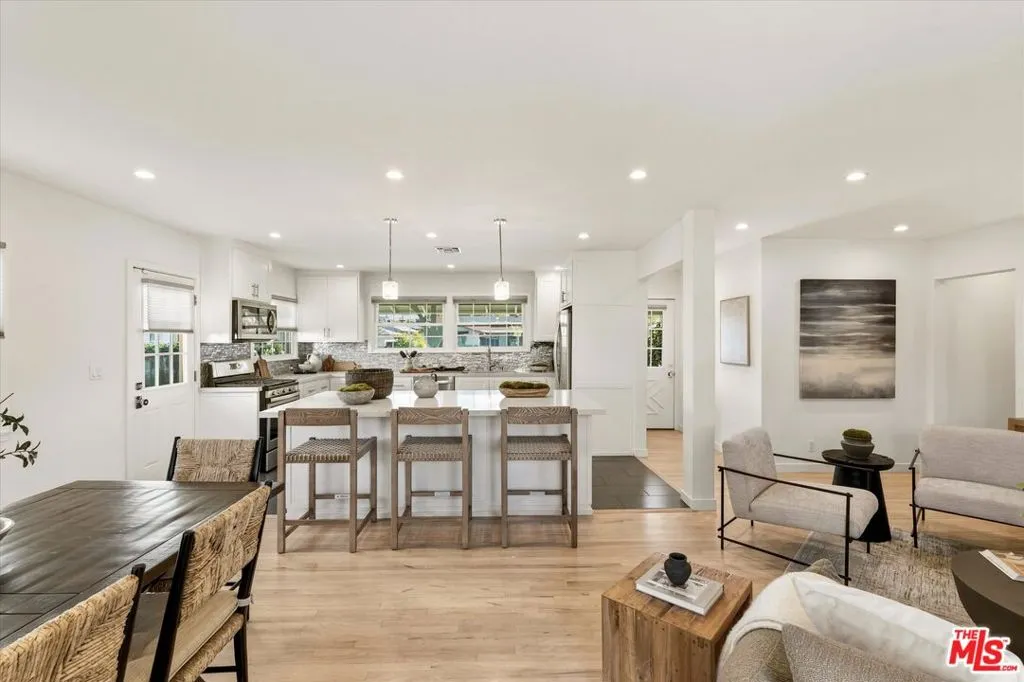 Tucked away on a quiet circular street with no through traffic, this fully updated 4-bedroom, 2-bath residence offers a rare sense of privacy , safety and neighborhood comfort. The expansive backyard, adorned with native low-water plants and trees, epitomizes the quintessential Californian lifestyle. Inside, an open-concept floor plan is filled with natural light and anchored by a large kitchen island that flows seamlessly into the dining and living areas, creating the perfect environment for entertaining.The kitchen is equipped with stainless steel appliances, ample counter space, and storage. Thoughtfully upgraded, generous storage, solar panels for energy efficiency, a landscaped backyard for indoor-outdoor enjoyment, and a 2-car garage make this home as functional as it is beautiful. Enjoy quick access to the 405 freeway for easy commuting and connectivity to the LA west side and the valley. **Exterior Photos are from the summer when trees were in full bloom**