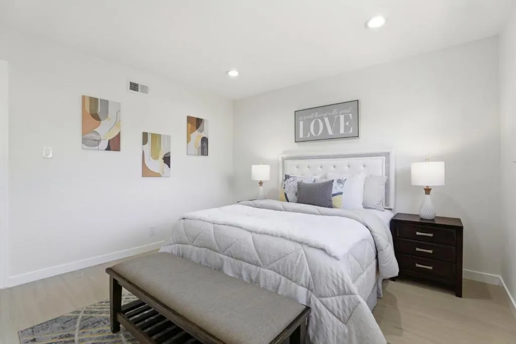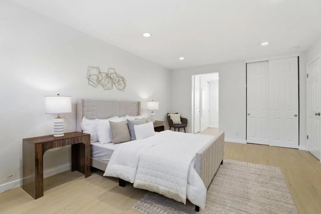 Beautifully remodeled 5-bedroom, 2.5-bath San Jose home offering 2,002 sq. ft. of stylish living space with separate living and family rooms for added flexibility and comfort. This move-in ready property has recently undergone an extensive renovation featuring fresh interior and exterior paint, new waterproof luxury vinyl plank flooring throughout, LED recessed lighting, and thoughtfully selected modern finishes. The remodeled kitchen showcases new white Shaker cabinets, full slab quartz countertops and backsplash, plus new stainless steel gas range/oven, dishwasher, and microwave. Bathrooms have been tastefully updated, including the half bath, hallway bath, and primary bath, with custom tile work and modern vanities. The backyard features a covered porch that extends outdoor living, creating the perfect setting to entertain family and friends. Updated central heating and A/C add to the homes overall comfort and appeal. Bright, refreshed, and beautifully updated throughout, this home offers comfort, functionality, and contemporary appeal.