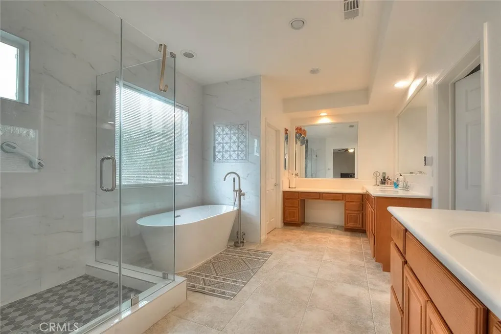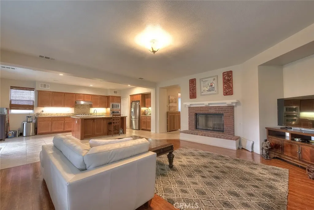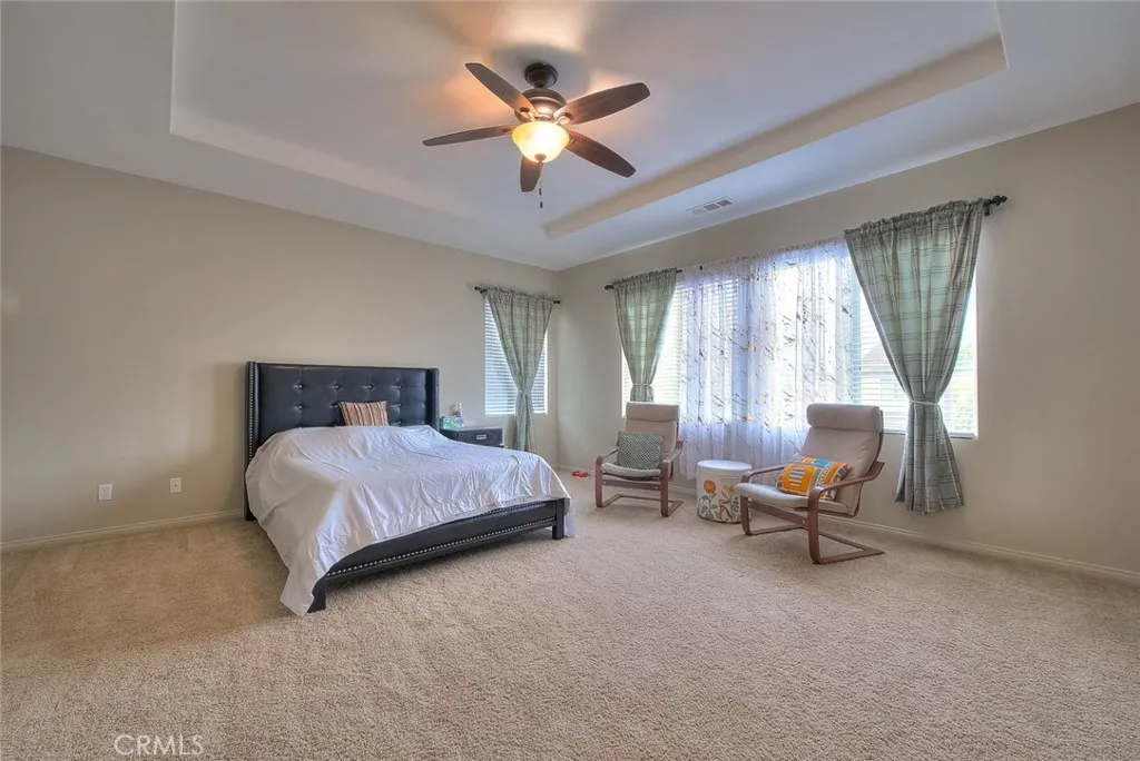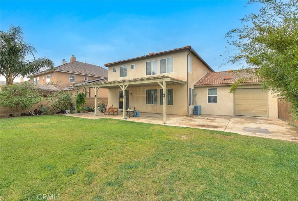 FANTASTIC Eastvale property featuring 4 bedrooms plus bonus room that could be converted to a 5th bedroom located on the first level of the home. Wonderful cul-de-sac location on a desirable "pool sized" lot. Fabulous floorplan AND a 4 car garage with pull through access to the backyard! As you enter the home you will appreciate the spacious formal living and dining room to your right, the bonus room is to the left and has a walk-in closet and could be enclosed for 5th bedroom option if needed. There is a 3/4 bathroom as well located on the first story. Family/Kitchen have a "Great Room" feel, an inviting fireplace in the family room is the perfect place to relax and enjoy each other's company. The kitchen has recessed lights, tile floors, large center island with bar top dining, stainless appliances, breakfast nook for casual informal dining, granite counters and wonderful counter space to work/prepare as well as excellent storage. Upgraded carpet on the stairs and upper hallway is very elegant & there is additional storage cabinetry on the upper landing. Sizable primary suite is very tranquil with upgraded on-suite bathroom featuring a walk-in shower, separate soaking tub, elegant tile detailing, 2 vanities and oversized walk-in closet. There is also another upstairs bedroom with private on-suite 3/4 bathroom that could be used as a 2nd primary bedroom. In addition, there are 2 other guest bedrooms that share a full bathroom, Jack & Jill style. The upstairs laundry room is GREAT, generous in size with wonderful extra storage cabinets, counter/desk space & can be utilized for craft or office needs. HUGE backyard with block wall fencing on all sides has both ADU potential and swimming pool potential!! Large grassy area is level & waiting to be personalized to the new owners needs. Expansive covered patio provides outdoor entertaining space. 4 car garage is a fantastic feature of this home PLUS driveway space and pull through storage to the back. Centrally located and just minutes away from Eastvale Elementary, River Heights Intermediate and Eleanor Roosevelt High School. Nearby to Silverlakes Sports Complex which offers 24 full size soccer fields, 4 LED lit synthetic fields, 5 equestrian arenas, a HUGE outdoor Cafe, Concert facility called The Backyard & so much more with future developments that will offer even more options! Your Buyers will appreciate ALL that this special property has to offer.