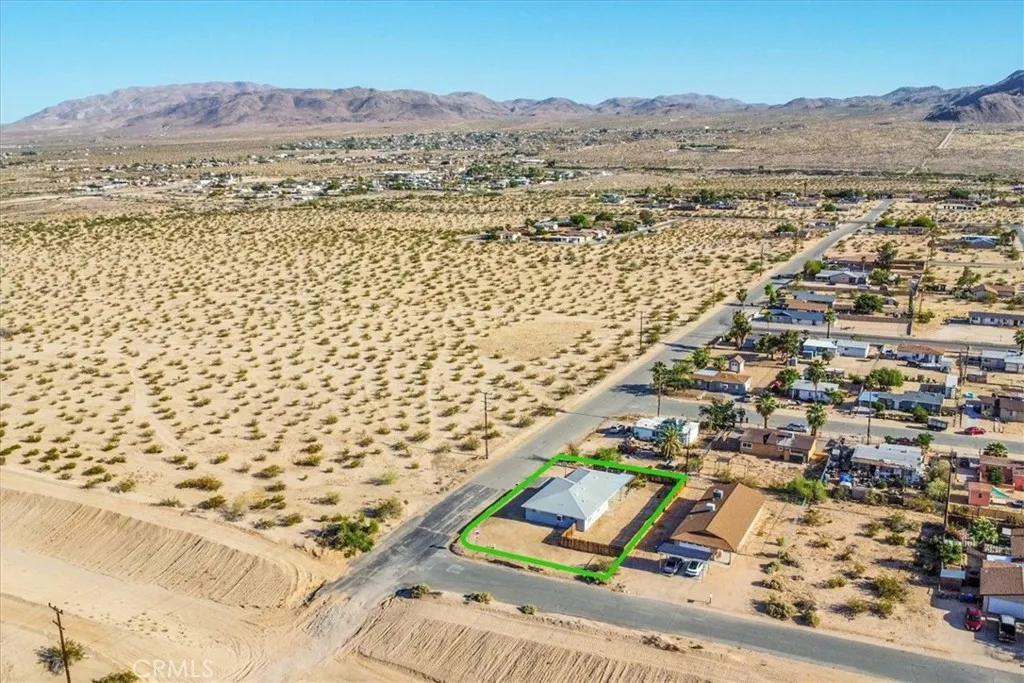 Welcome to this charming starter home situated on a desirable corner lot, offering expansive, unobstructed views from the front. Inside, you’ll find fresh paint and new flooring that give the home a clean, updated feel. The thoughtfully designed split floor plan provides added privacy, making it ideal for families or hosting guests. Conveniently located in town, this home is just minutes from the Post Office, shopping, and everyday essentials. Commuters will appreciate the easy drive to the nearby military base, while outdoor enthusiasts will love the close proximity to Joshua Tree National Park. This property has also proven to be a reliable rental, with the previous tenant happily calling it home for 10 years—an excellent sign of comfort and affordability.