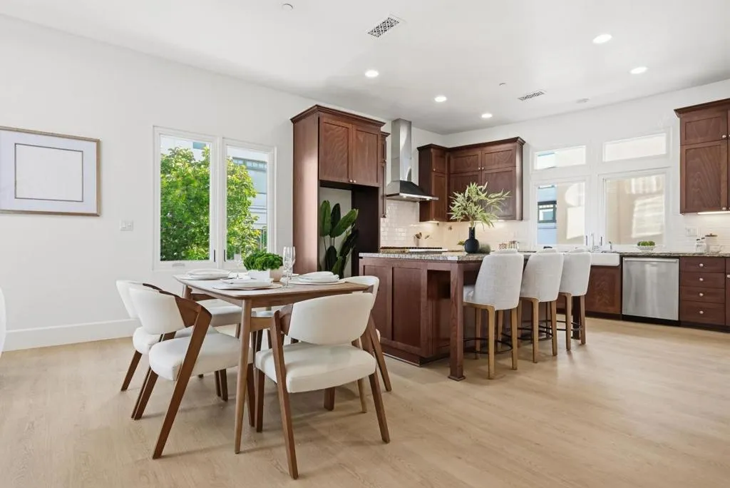 Stunning modern townhome in the sought-after Penny Lane community of Campbell, featuring a spacious private rooftop deck for exceptional indoor-outdoor living. Built by award-winning Robson Homes, this contemporary residence offers an open-concept layout with high ceilings, abundant natural light, and luxury waterproof SPC flooring throughout. The gourmet island kitchen flows seamlessly into the expansive great room, ideal for everyday living and entertaining, while a versatile den can be used for remote work or as an additional living space.Upstairs features a spacious primary suite with walk-in closet, along with two additional bedrooms offering comfort and privacy. Enjoy the rooftop retreat with space for dining, lounging, and entertaining. Additional highlights include dual-zone HVAC, EV charging capability, and smart home features.Located in the desirable Moreland School District, just minutes to Downtown Campbell, The Pruneyard, Santana Row, and major Silicon Valley employers. Walk to restaurants and coffee shops. Turnkey and move-in ready!