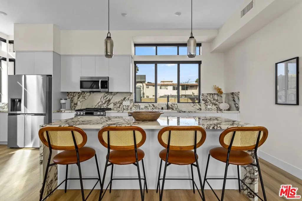 Set within an exclusive collection of five freestanding residences, this sophisticated modern home offers the rare comfort of no shared walls in a prime location bordering West Hollywood and Hollywood. Thoughtfully designed with soaring ceilings and abundant natural light, the residence features three spacious bedrooms and three and a half beautifully appointed bathrooms, blending refined design with everyday functionality. Interiors showcase wide-plank white oak floors, custom cabinetry, designer window treatments, built-in closets, and a curated selection of premium stainless-steel appliances. Zoned heating and air conditioning on each level provide optimal comfort, while in-home laundry adds convenience. An expansive rooftop deck captures sweeping city views, creating an ideal setting for entertaining or relaxing above it all. Additional highlights include a private two-car garage with direct access. Modern architecture and timeless finishes come together in a vibrant, centrally located neighborhood just moments from premier dining, shopping, nightlife, parks, and the trails of Runyon Canyon. HOA dues are projected at no more than $100 per month. Property also available for lease. Contact Agent for Interest Rate Buy-Down Incentive! We are offering the lowest Rates in the market!