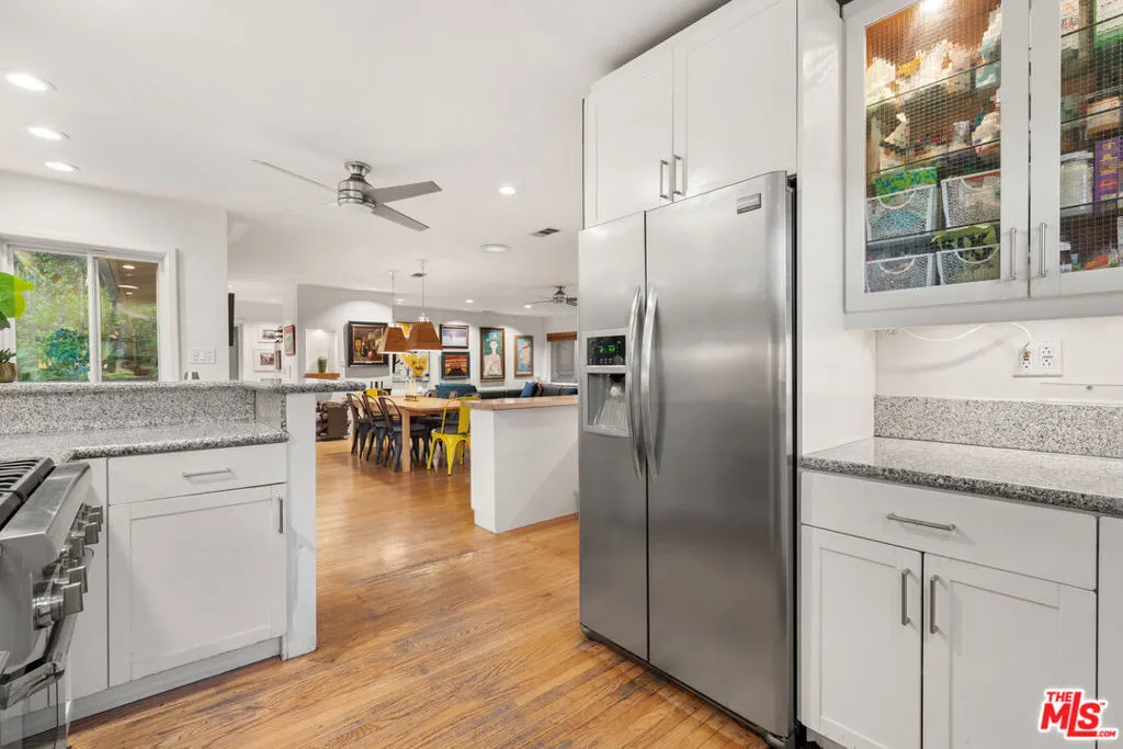 Tucked into the heart of Laurel Canyon and within the coveted Wonderland School District, this warm and inviting 3-bedroom, 2-bath home is designed for connection, creativity, and everyday living. A true indoor-outdoor retreat, the home opens effortlessly to expansive entertaining spaces perfect for long dinners at golden hour, weekend gatherings, and quiet mornings surrounded by nature. The kitchen, dining area, office, and primary bedroom all flow seamlessly , creating a natural rhythm between inside and out. The grounds feel like your own private garden sanctuary, with mature fig, miniature Fuji apple, lemon, and tangerine trees, multiple built-in seating areas, a dedicated dog run, garden, and a charming bonus "clubhouse" for kids-adding to the home's versatility and family-friendly appeal. Lovingly maintained by artists with a passion for entertaining, the home carries a sense of warmth and intention throughout. The primary bedroom is a true retreat, flooded with natural light and opening directly to the outdoors, offering a peaceful start and end to each day. Set against the backdrop of Laurel Canyon's rolling hills, with soft mountain views and unforgettable evening light, this is a rare opportunity to own a home that truly lives and breathes the canyon lifestyle--an ideal setting for a growing family looking to be part of the Wonderland community.