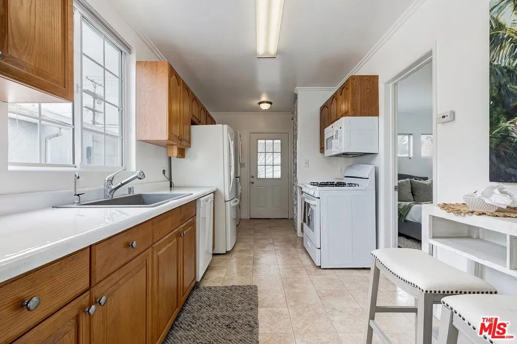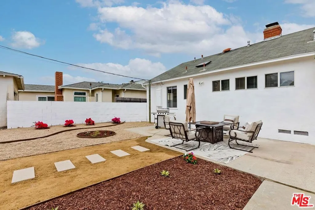 Welcome to this charming single-story residence in the highly sought-after Loyola Village neighborhood of Westchester. Recently refreshed, including interior and exterior paint, beautifully refinished hardwood floors, and updates to the kitchen and hall bathroom, this inviting home features a fully fenced, drought-resistant front yard and a covered porch that opens into a bright and airy living and dining space. Abundant windows fill the home with natural light, creating a warm and welcoming atmosphere throughout. The spacious eat-in kitchen offers generous cabinetry, a dedicated laundry area, and direct access to the expansive backyard ideal for indoor-outdoor living and entertaining. The home features a desirable primary suite with its own en-suite bathroom, along with two additional bedrooms that share an updated hall bath. Step outside to a large, fully gated backyard and patio finished with new decomposed granite (DG), offering both functionality and low-maintenance appeal. A detached two-car garage is complemented by a substantial bonus space at the rear, along with additional storage providing flexibility for a home office, gym, or creative use. The generous lot size and layout also present a fantastic opportunity for a potential ADU conversion or addition, making it especially appealing for those looking to maximize value or create additional living space. Additional upgrades include a new electrical panel, adding modern efficiency and peace of mind.Ideally located near LMU, Playa Vista, local parks, hiking trails, Westchester tennis and pickleball courts, the golf course and driving range, as well as nearby shops and dining this home offers the perfect blend of comfort, convenience, and Westside living.