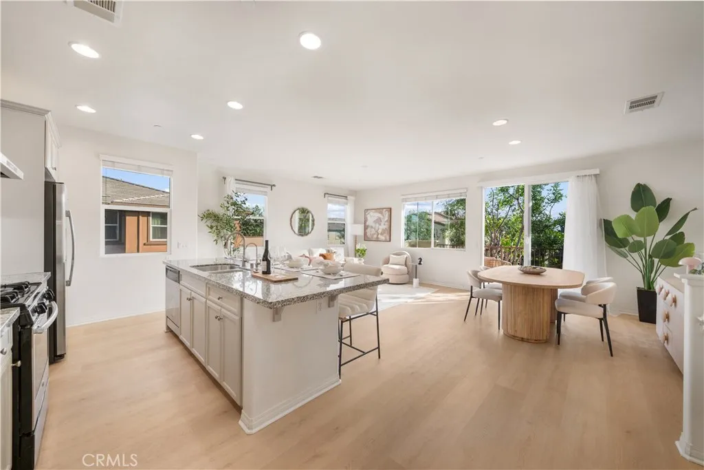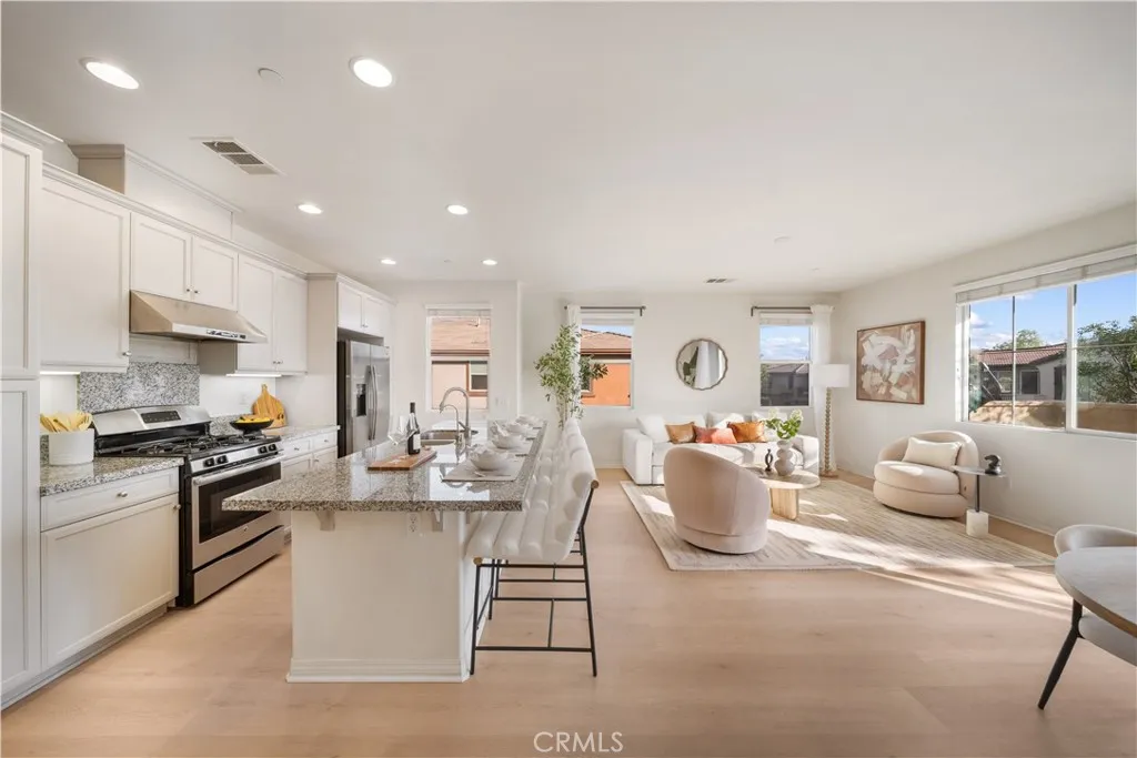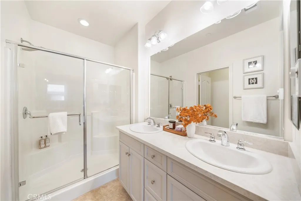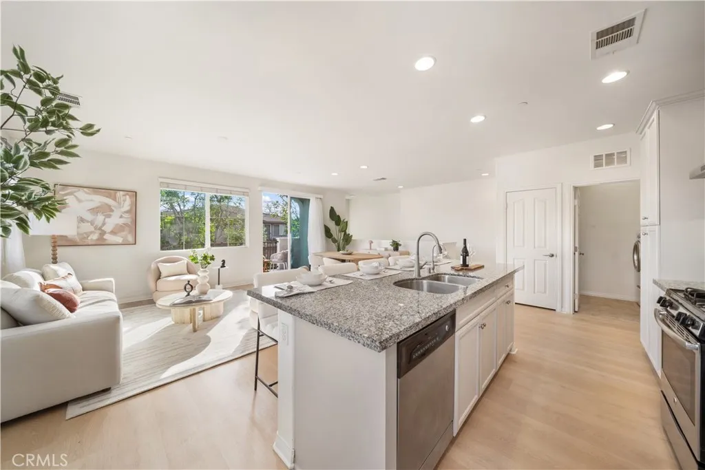 Welcome to this rare light-filled END UNIT condo located in the most desired location inside the College Park Community. It offers exceptional privacy, modern upgrades, and a truly comfortable living experience. Featuring 2 bedrooms and 2 full bathrooms. Walking up the stairs, you will find a spacious open concept living space consist of a dining area, a living room, and a modern kitchen. Flooded with natural sunlight from its ideal south and east orientation, the spacious living area opens to a large private balcony surrounded by greenery—creating a warm, serene atmosphere that feels instantly like home. Thoughtfully upgraded with a full smart home system, energy-efficient features, new flooring, and major system improvements, such as newer tankless water heater (replaced in 2022), newer A/C and heating system (replaced in 2022&2025). Just steps away from a future lifestyle plaza with dining and amenities, this is a home that blends comfort, convenience, and great value. Community amenities include parks, children’s playgrounds, tennis courts, basketball court, walking trail, fitness, and a 5 stars resort-style club house with two pools and spas surrounded by the palm trees. You will be amazed living in this beautiful community. Very convenient location for shopping and daily commute. Within 10 mins drive, there are Walmart, Target, 99 Ranch Market, Costco, TJ Maxx, Ross, and all kinds of restaurants. Easy access to 71 and 60 freeways. No more waiting, come to check it out!