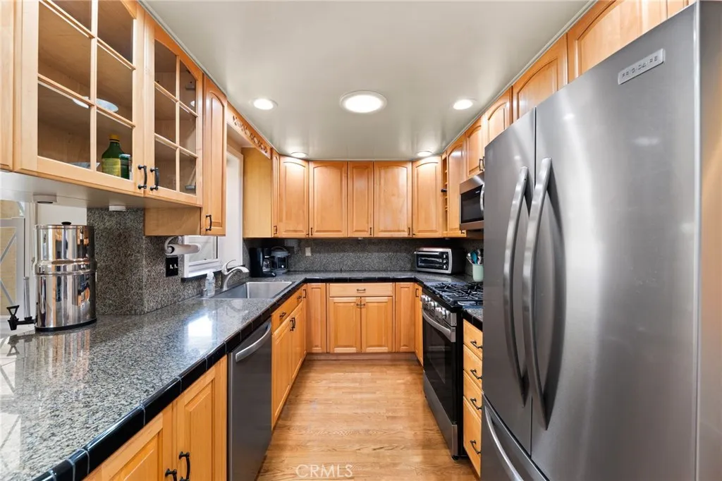 Turn-key 4-bedroom, 2-bathroom Redlands home, situated on a quiet street in an established, stable neighborhood, this home provides a peaceful retreat just minutes from the best of the city. The interior has been thoughtfully refreshed with a crisp paint palette, beautiful hardwood flooring, and plush new carpeting. The heart of the home features a versatile fireplace that accommodates both gas and traditional logs. The kitchen is equipped with easy-to-clean granite tile countertops, a newer extra-large single-bowl sink, and newer matching appliances (refrigerator included)! The primary room offers your own private sanctuary featuring a dual-sink and a walk-in bath/shower with jets and bubbles for a true spa experience. The front bathroom of the home includes a convenient low step-in shower. Save significantly on utility costs with a home designed for long-term sustainability with fully paid solar panels and a high-efficiency tankless gas water heater (designed to cut gas bills in half). Stay comfortable year-round with a Split AC system, gas heating, and dedicated electric baseboard heater for chilly days. Includes an automatic earthquake gas shut-off valve for total peace of mind. The exterior is an entertainer’s delight, featuring beautifully paved driveway and backyard spaces and secure vinyl fencing for ultimate privacy. With the water-wise landscaping, it makes for the perfect low-maintenance yard with a smart rain sensor and a comprehensive drip system for garden beds. A great advantage this home offers is an extra-large parking space next to the garage, perfect for an RV, boat, or multiple vehicles. Inside the garage you can find a custom overhead storage loft, that is engineered to support 70 pounds per square foot. It's all about location, with no HOA and being less than two miles from the University of Redlands, this home is ideal for those seeking proximity to culture and recreation. Nature is just at the door step with being minutes from the Orange Blossom Trail, the Zanja Trail, and the San Timoteo Nature Sanctuary. The sellers are open to including the Samsung front-loading washer/dryer pair, the Ring security system, and the elegant corner curio cabinet with the right offer. Excellent Redlands Schools.