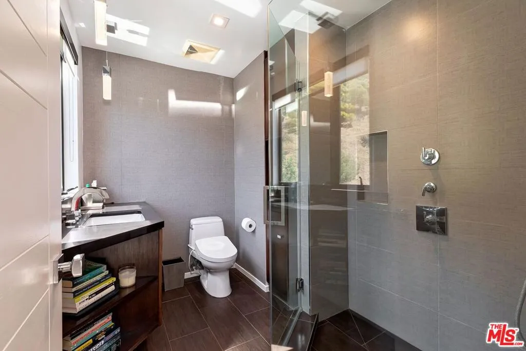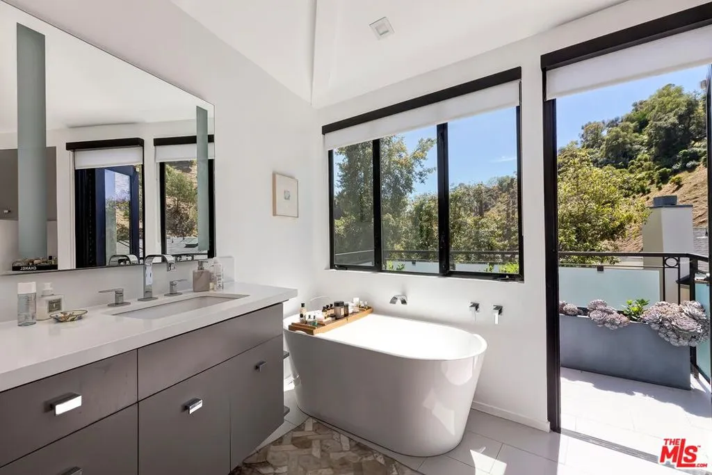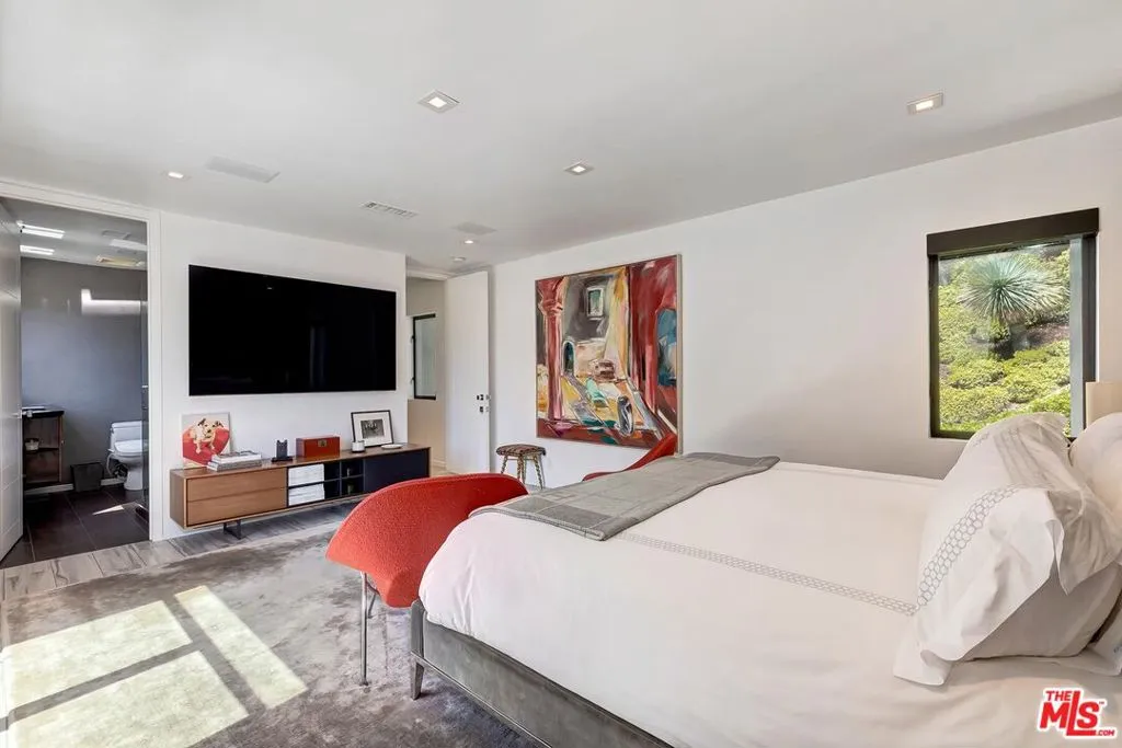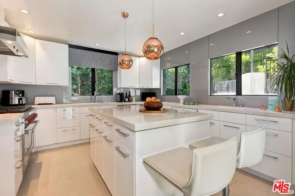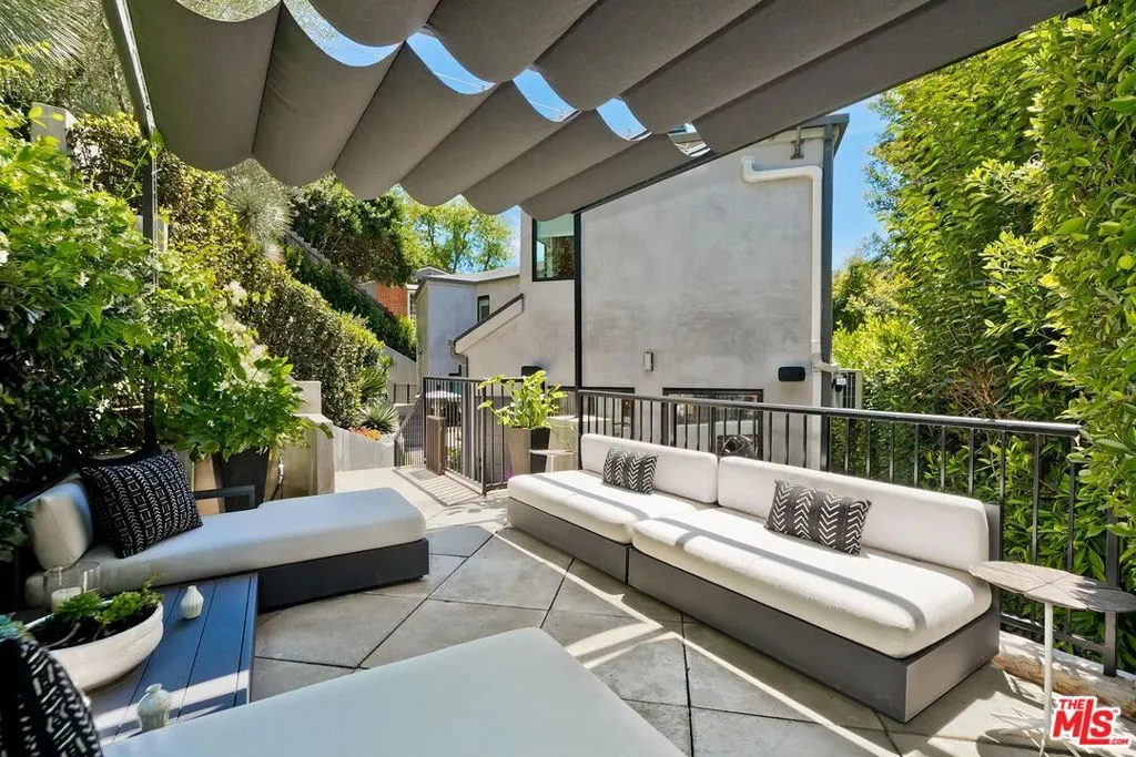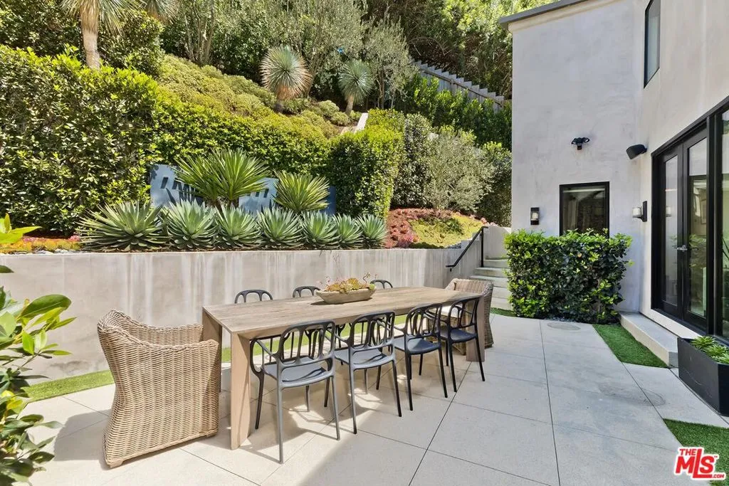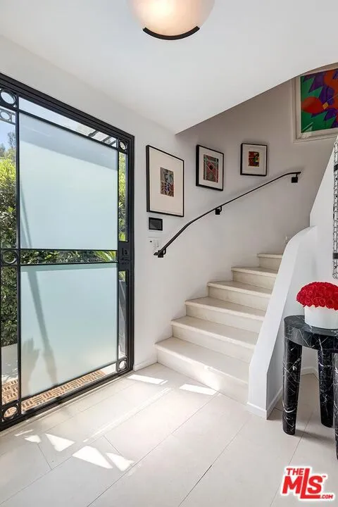 Experience refined contemporary living in this beautifully designed residence, ideally situated just minutes from the heart of Beverly Hills. Beautiful entry welcomes you with an elegant spiral staircase and exquisite travertine flooring, setting the tone for the home's sophisticated style. The light-filled living room features dramatic walls of glass that seamlessly open to serene patio spaces, perfect for effortless indoor-outdoor entertaining. A formal dining room offers an elegant setting for gatherings, while the chef's kitchen is appointed with top-of-the-line appliances and designed for both function and beauty. A stylish powder room completes the main level.The spectacular primary suite is a private retreat, boasting dual bathrooms, an expansive custom-fitted closet, and a versatile sitting room or office. Step out onto the private terrace and enjoy tranquil treetop views. A well-appointed second bedroom suite provides comfort and privacy for family or guests. Outdoors, professionally landscaped gardens create a lush, romantic setting, highlighted by a charming pergola ideal for al fresco dining or relaxation. 2-car garage. A rare opportunity to enjoy sophisticated living in one of the city's most coveted locations.