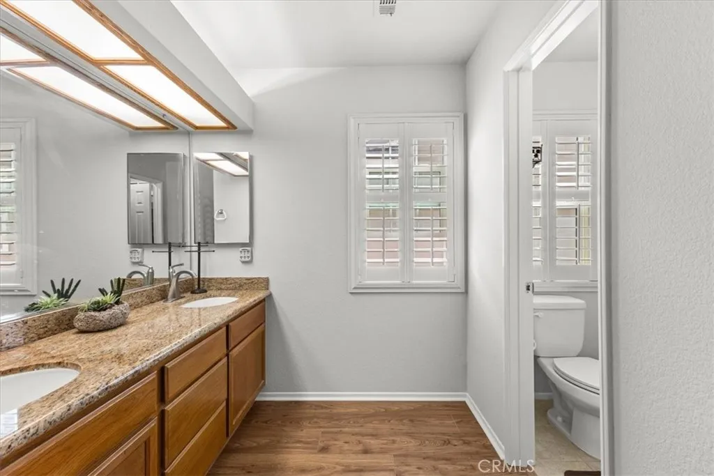 Welcome to this updated 3-bedroom, 2.5-bath townhome in the desirable Vista Santiago community of Orange. Offering 1,436 square feet of well-designed space, this home blends comfort, functionality, and a bright, inviting atmosphere. Fresh interior paint and abundant natural light enhance the interior, while granite countertops, stainless steel appliances, a cozy fireplace, and classic louvered shutters add both style and practicality. The layout feels open yet warm, ideal for everyday living and hosting. All three bedrooms are located upstairs, creating a sense of privacy and separation from the main level. Thoughtful upgrades include a newer tankless water heater, Ring doorbell, and a Nest thermostat for added efficiency and ease. An attached garage provides everyday convenience, while the private backyard extends the home outdoors, perfect for relaxing or gathering. Vista Santiago is a well-maintained community known for its manicured grounds, recently resurfaced pool and spa, and an affordable monthly HOA. Ideally located near shopping, dining, schools, Grijalva Park, the Santiago Creek Trail, and major commuter routes, this home offers an opportunity to enjoy low-maintenance living in one of Orange’s most sought-after neighborhoods.