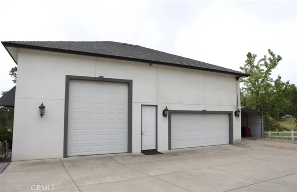 Welcome to this spectacular 1.92 acre property featuring 2647 square foot home with three bedrooms, three bathrooms and a flex room. This custom home offers vaulted ceilings throughout and a gourmet kitchen for entertaining with an oversized refrigerator/freezer and granite countertops.The walk in pantry is spacious for all your storage needs. As you walk into the palatial living room, your greeted with a double-sided fireplace that can be enjoyed from the outdoor patio too. There is a wet bar near the fireplace for your enjoyment as well. As you walk down the hallway, there are two bedrooms that are joined by a jack and Jill bathroom that makes it convenient for living accommodations. The primary suite is extraordinary. You are greeted with another fireplace, a sizable area for your bed and a walk in closet that has top to bottom shelving for clothes and shoes. The primary bathroom has a jetted tub, a separate shower and a water closet. The home has extravagant courtyard that is fully fenced in and you can bbq and sit near the other side of the double sided fireplace for relaxation. There is also a detached garage with RV parking and extra space for more vehicles or storage. There is a loft above that is not permitted. Downstairs, there is also a shower/toilet that is not permitted.Behind the outbuilding, there is an adorable garden shed and garden beds if you enjoy gardening. Other amenities include, patio sitting areas, solar included on the house, fire suppression system, intercom system, a metal carport and lastly a beautiful tree lined driveway.This home has so much to offer!You will enjoy the comforts of the country and just minutes to town. House is AS- IS sale.
