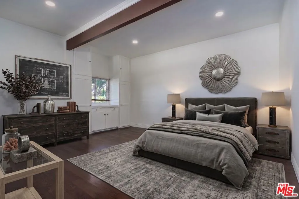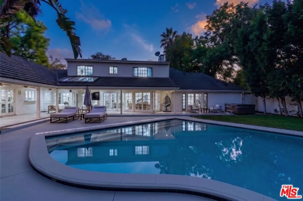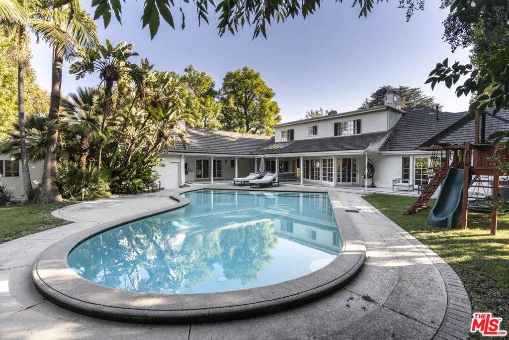 Experience unparalleled provenance at 15405 Valley Vista Blvd, the former residence of "Mr. Showmanship" himself. Perfectly positioned South of the Boulevard on a sprawling 17,800 sq ft corner lot, this 4BD/4BA Hollywood Regency-inspired estate balances historical glamour with sophisticated architectural scale. The residence greets you with soaring vaulted ceilings and expansive walls of glass, creating sun-drenched living spaces that embody the quintessential California indoor-outdoor lifestyle. The kitchen and adjoining family room serve as a refined hub for daily living, flowing effortlessly toward an entertainer's backyard anchored by the world-famous, historic piano-shaped pool. The primary suite offers a serene retreat with direct access to the lushly landscaped grounds. Adding immense value and versatility, the property includes a finished attic with a half-bath, ideal for a creative studio or private office plus a guest unit with a separate entrance off the garage, perfect for staff, visitors, or potential income. Surrounded by mature greenery for ultimate privacy, yet located moments from the premier dining and shopping of Ventura Blvd, this is a rare opportunity to acquire one of Sherman Oaks' most celebrated architectural treasures. Own a living piece of Hollywood history.