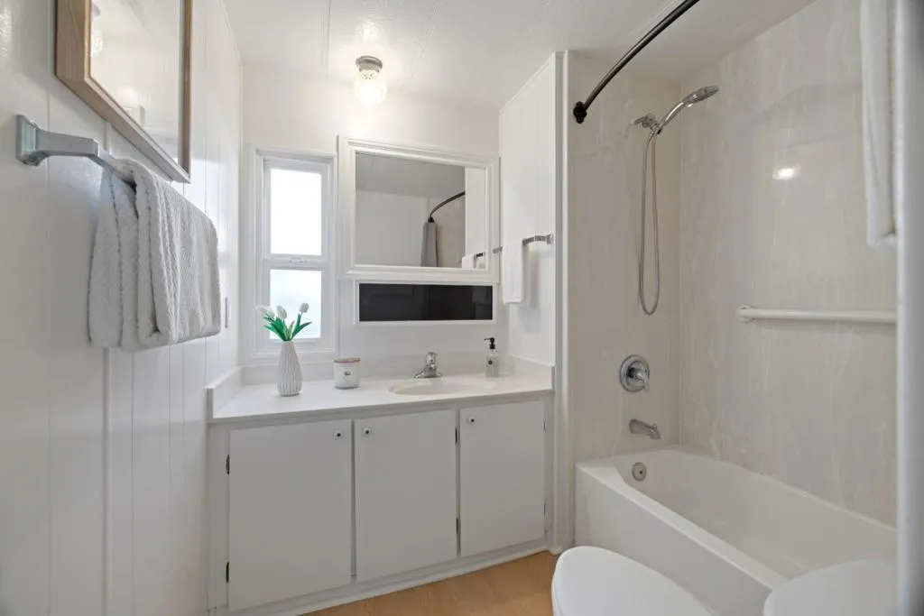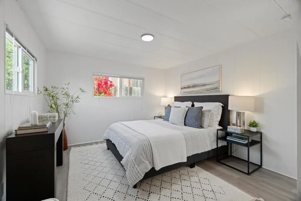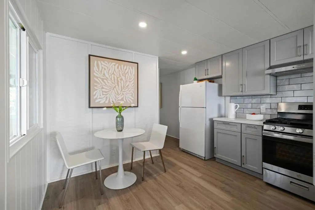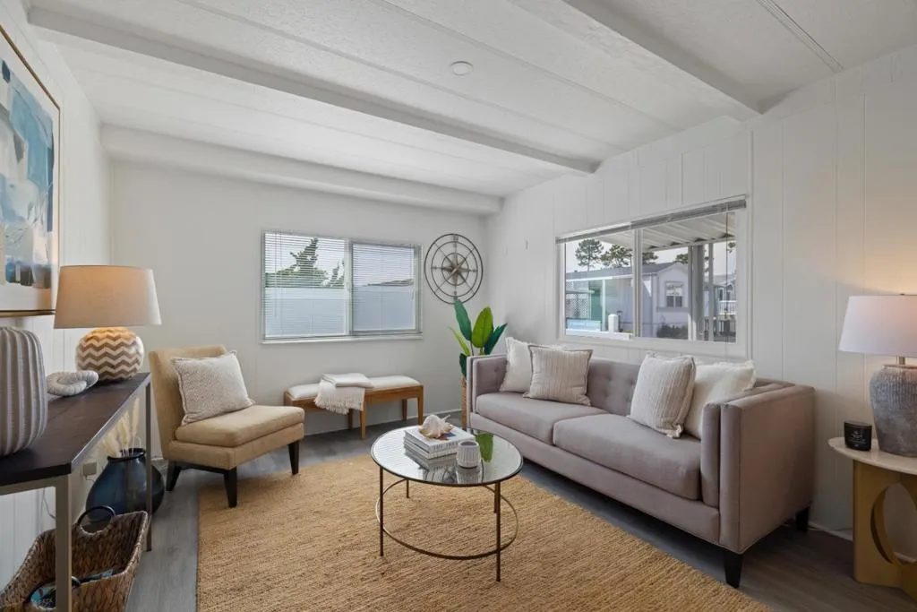 Introducing the charming property at 10 Lighthouse Rd, Half Moon Bay, CA 94019. This delightful residence offers a unique blend of comfort and convenience with an open floor plan that maximizes space and encourages natural light to flow throughout its 720 square feet. The home features two bedrooms and one bathroom, all designed for ease and functionality. The kitchen is equipped with modern stainless steel appliances that complement the overall aesthetic of the home. Additionally, the side-by-side washer and dryer make laundry chores a breeze. A standout feature of this home is its bonus room which doubles as an enclosed patio, offering additional living space for various activities or relaxation. Its westside location on Highway One provides easy access to local amenities while also ensuring a peaceful environment. This property is located within the Canada Cove 55+ Community, a vibrant neighborhood known for its community clubhouse - a gathering spot for residents where they can engage in social activities or simply unwind.