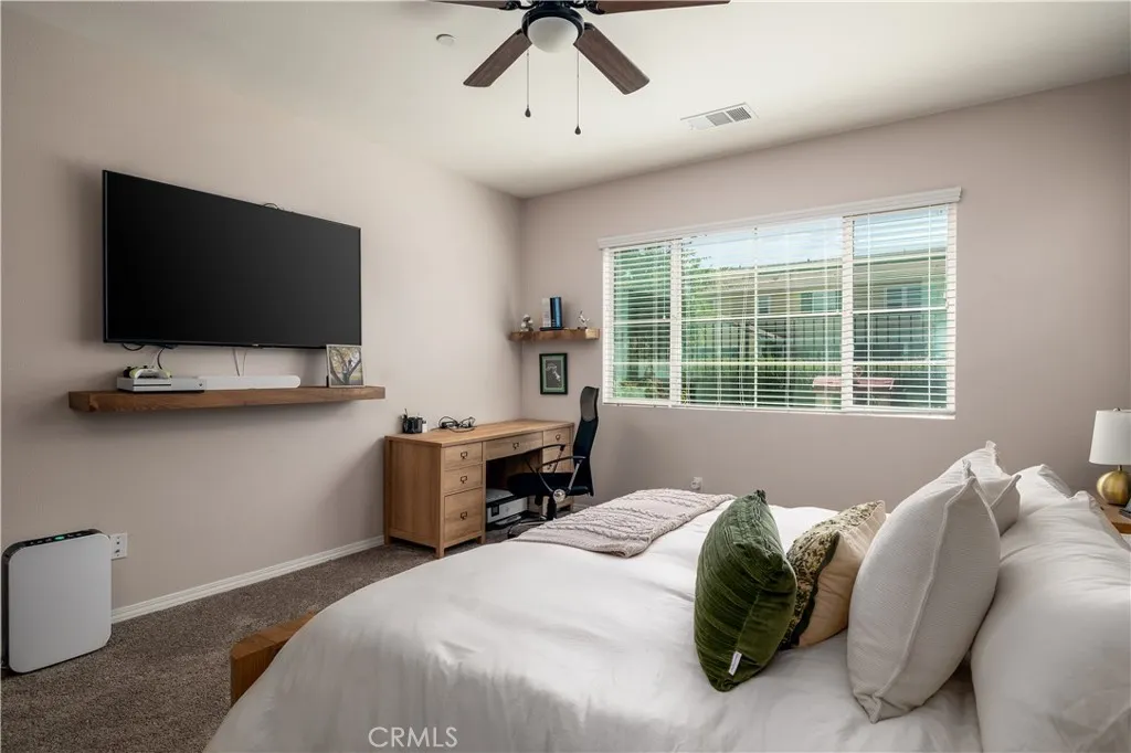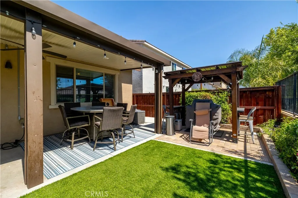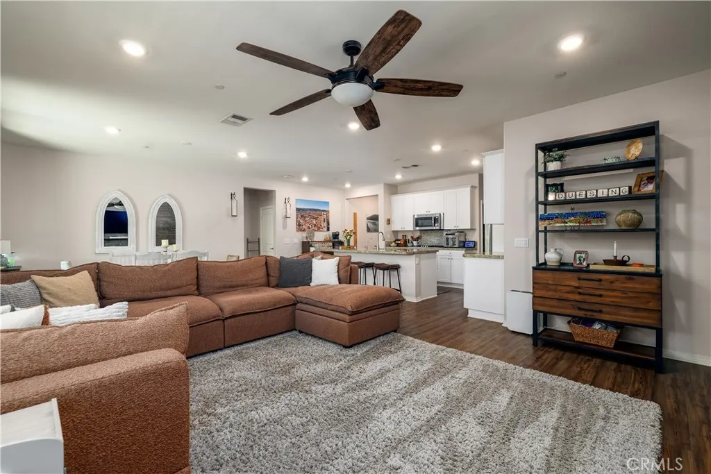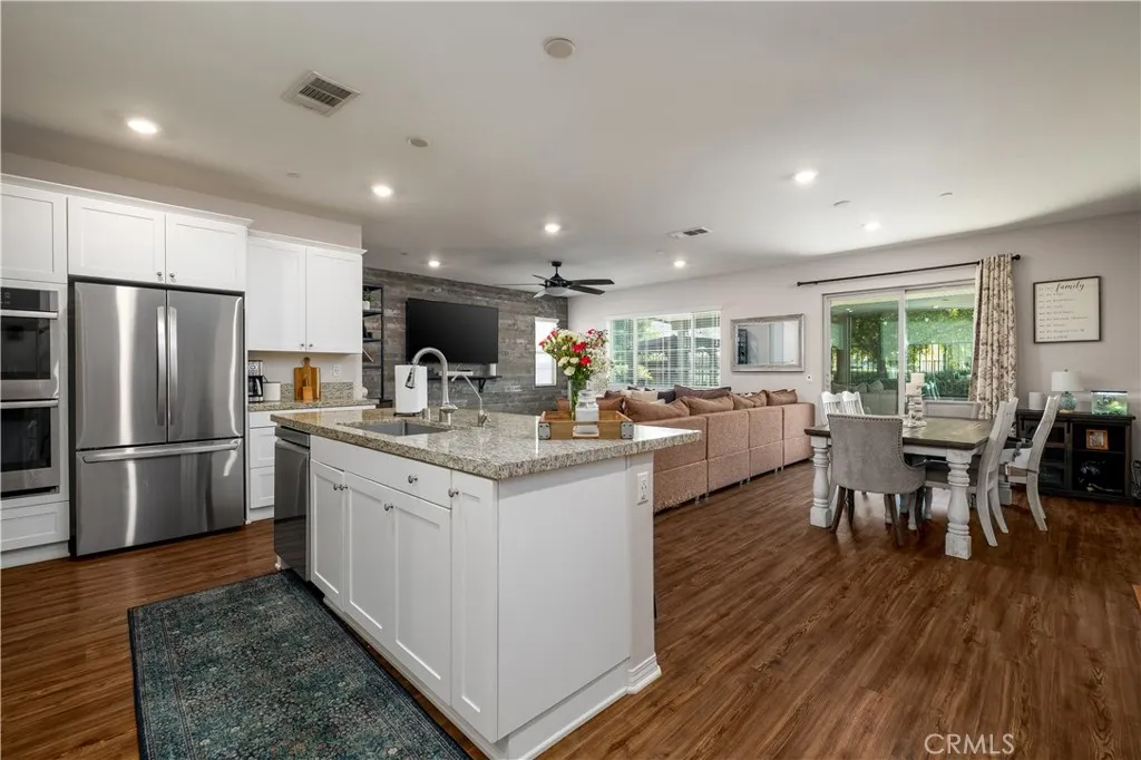 Welcome to this beautiful single level home, located in the prestigious and highly desirable Heritage Lake community, offering the best in resort-like living. This Smart Home features the open-concept of generous living area, dining area along with 3 bedrooms, 2 bath floor plan of 1866 sq ft. The expansive Kitchen is a dream with Granite countertops, a huge center island, farm style sink, with breakfast bar that family, friends and guests gather in all year round. The Primary Suite is a peaceful retreat with oversized bathroom, dual sinks, large soaking tub, oversized step in shower, with a massive walk-in primary closet with extra storage. Two comfortable bedrooms and a guest bath completes the superb floor plan. Additional fine features include a tankless water heater, total house water softener and reverse osmosis along with an oversized laundry room with extra storage shelves. Go outback through a sliding glass door to a covered patio, where you can unwind and enjoy views and a very low maintenance backyard with artificial turf--perfect for relaxing or entertaining. Heritage Lake community, residents enjoy a low HOA fee and access to an impressive array of amenities, including two pools, kiddie pool, barbecue and picnic areas, playground and dog park. Ideally situated near schools, parks, shopping centers, and dining options, this move-in-ready home is ready for its new owners.