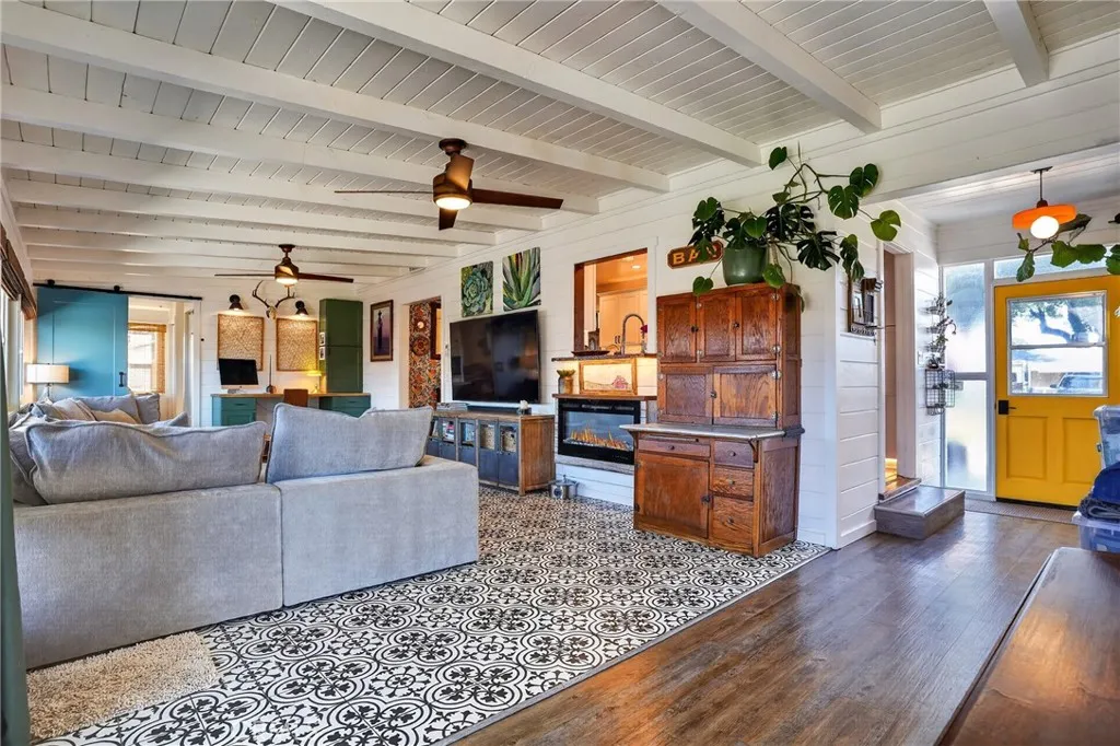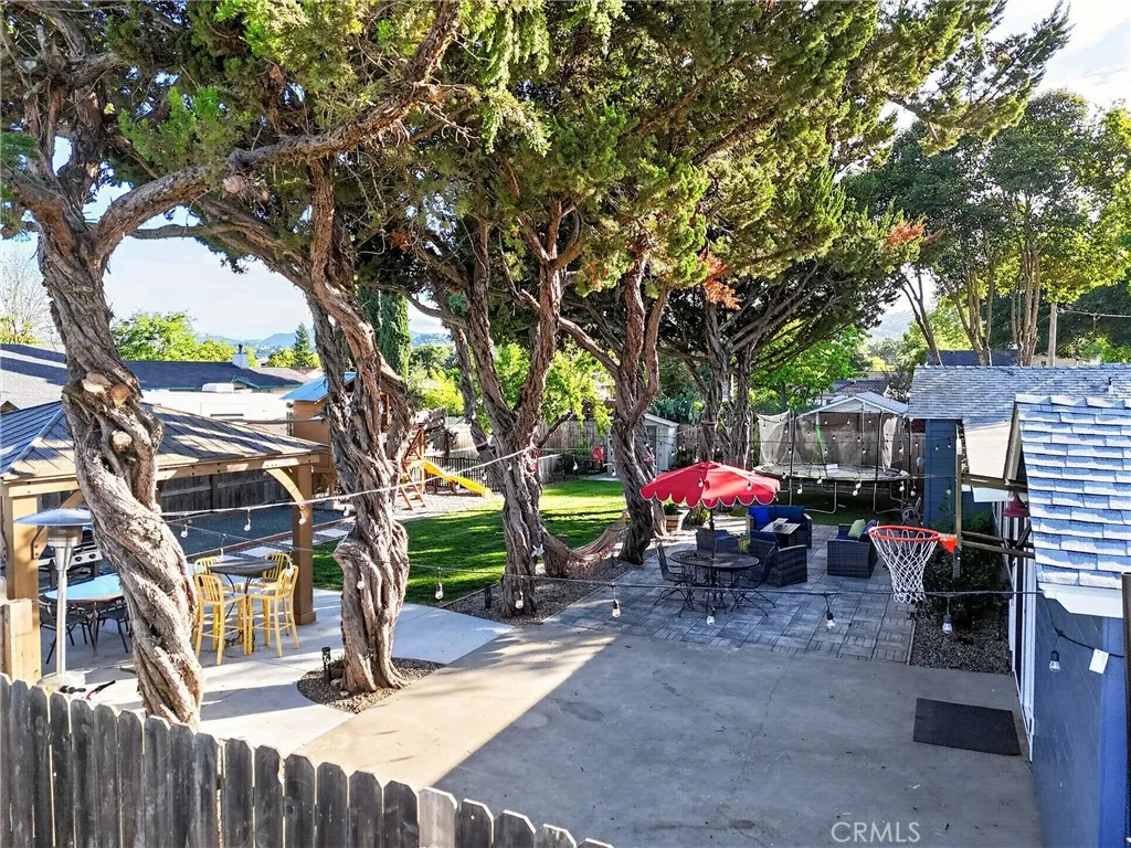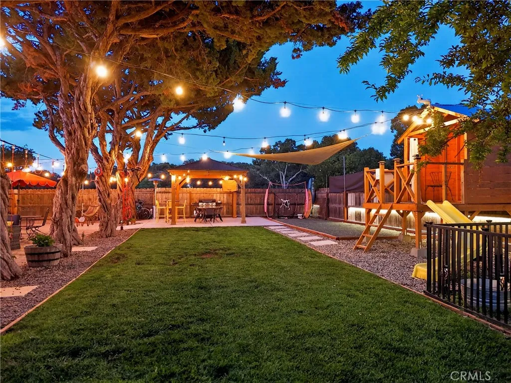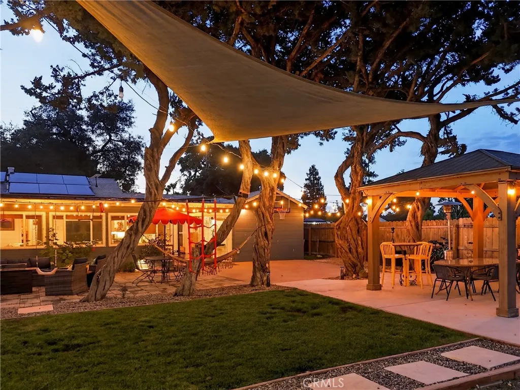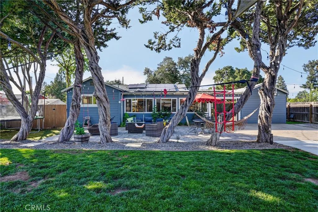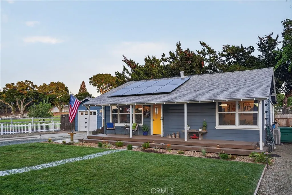 Style, comfort, and thoughtful upgrades come together at 5303 Carrizo Road in Atascadero, just minutes from town, Trader Joe’s, and convenient 101 access. A cobblestone pathway leads to the front door, where a charming composite porch, sprawling lawn, and gated entry with automatic gate create a welcoming first impression. The property is level and offers abundant parking, including RV parking with full hookups. Inside, the home features a warm and inviting layout with real hardwood flooring, updated lighting, and well-designed living spaces. The living room showcases stylish tile flooring, ceiling fans, and a wall of windows with sliders opening to the backyard for seamless indoor-outdoor flow. The kitchen has been tastefully updated with quartz countertops, shaker cabinetry, stainless steel appliances, a 5-burner stove, tile backsplash, and open shelving, all opening to the main living area. The dining space features updated lighting, while the hall bathroom has been renovated with solid surface counters, shaker cabinetry, and a tub/shower combination. Two guest bedrooms offer hardwood flooring and ceiling fans. The primary suite is a comfortable retreat with vaulted ceilings, ceiling fan, views of the backyard, and an updated en suite featuring custom tile, glass shower, quartz countertops, shaker cabinetry, and a private toilet area. The backyard is designed for both everyday enjoyment and entertaining, featuring a covered concrete patio with gazebo, additional paver patio, and café lighting. Mature trees and a variety of fruit trees, including orange, avocado, apple, lemon, and plum, enhance the setting. Additional features include a fenced and irrigated garden, multiple storage sheds, turf play area, and a custom playfort with slide, all within a fully fenced yard. Additional highlights include a 24-panel owned solar system, mini split system plus central AC with smart capabilities, electric heat, updated windows, whole house water filtration, and even smart irrigation. Designed for comfortable everyday living with space to relax, gather, and enjoy the Central Coast lifestyle... all just minutes from amenities, in a charming rural neighborhood! Call today to schedule your private showing!