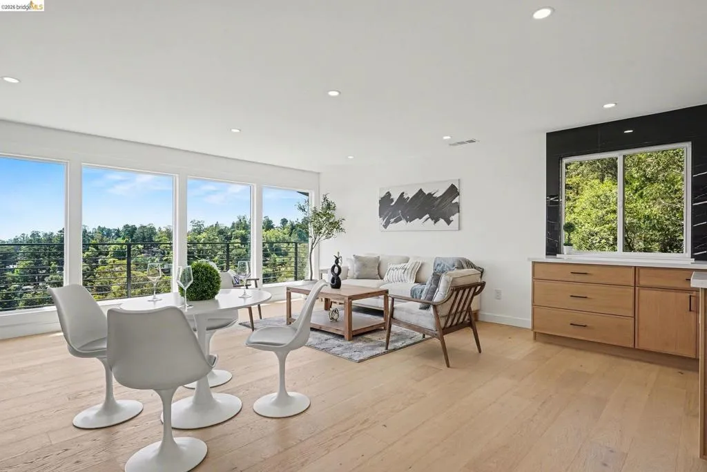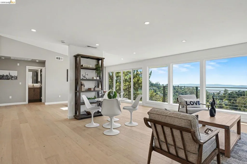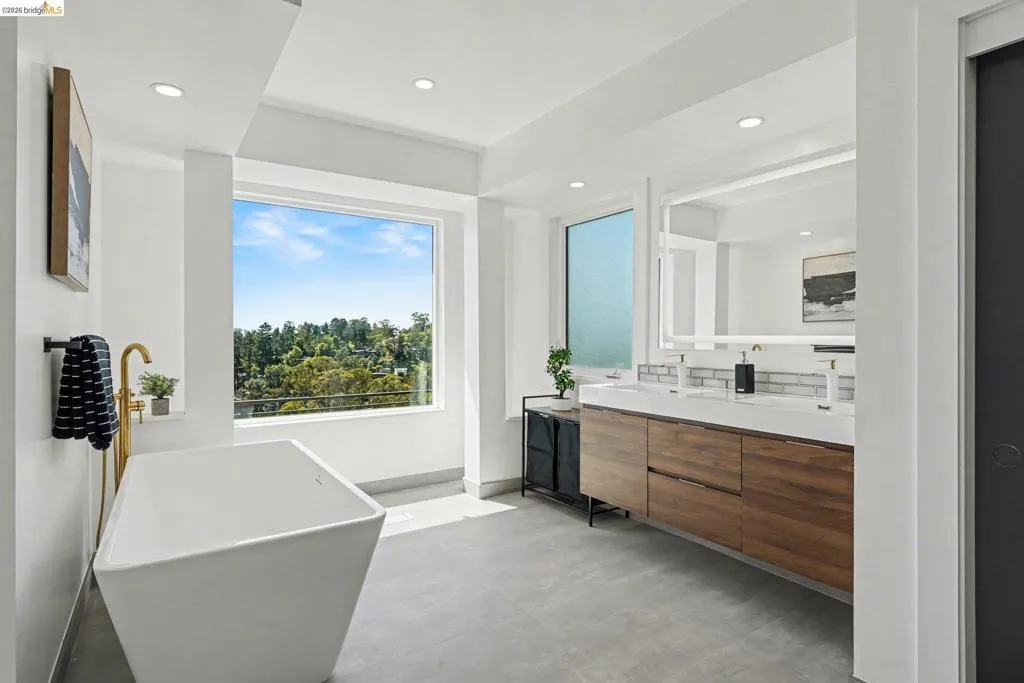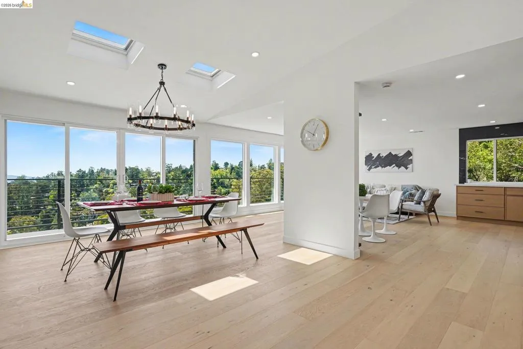 Tucked away in the highly desirable Montclair Hills, this fully renovated residence blends modern finishes with serene, nature-filled surroundings. Featuring an open floor plan and expansive windows, the home is filled with natural light and captures panoramic hillside forest views with a glimpse of the Bay. This versatile layout offers two spacious primary suites and a large family room or office with a sink. The lower levels provide an abundance of flexible spaces ideal for a gym, theater, office, storage, or other potential uses. Upgrades include Level 5 smooth walls, engineered wood flooring, a 200-amp main panel, copper plumbing, and two central heating and A/C systems with dual-zone controls. Skylights with retractable covers enhance the natural brightness throughout. The stylishly remodeled kitchen and four updated bathrooms complete the modern interior. Situated on a generous lot, the property features two attached garages, a large driveway, and an expanded backyard perfect for gardening or outdoor enjoyment. Sewer lateral compliant. Conveniently located near Montclair Village, regional parks, hiking trails, and top-rated schools, with easy access to Highway 13 for an easy commute.