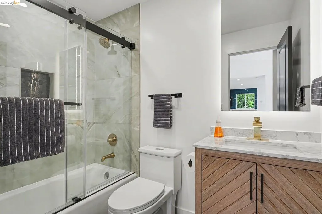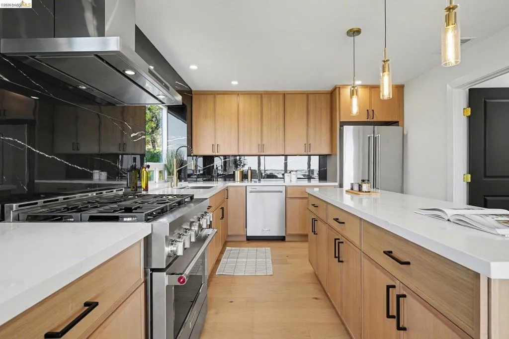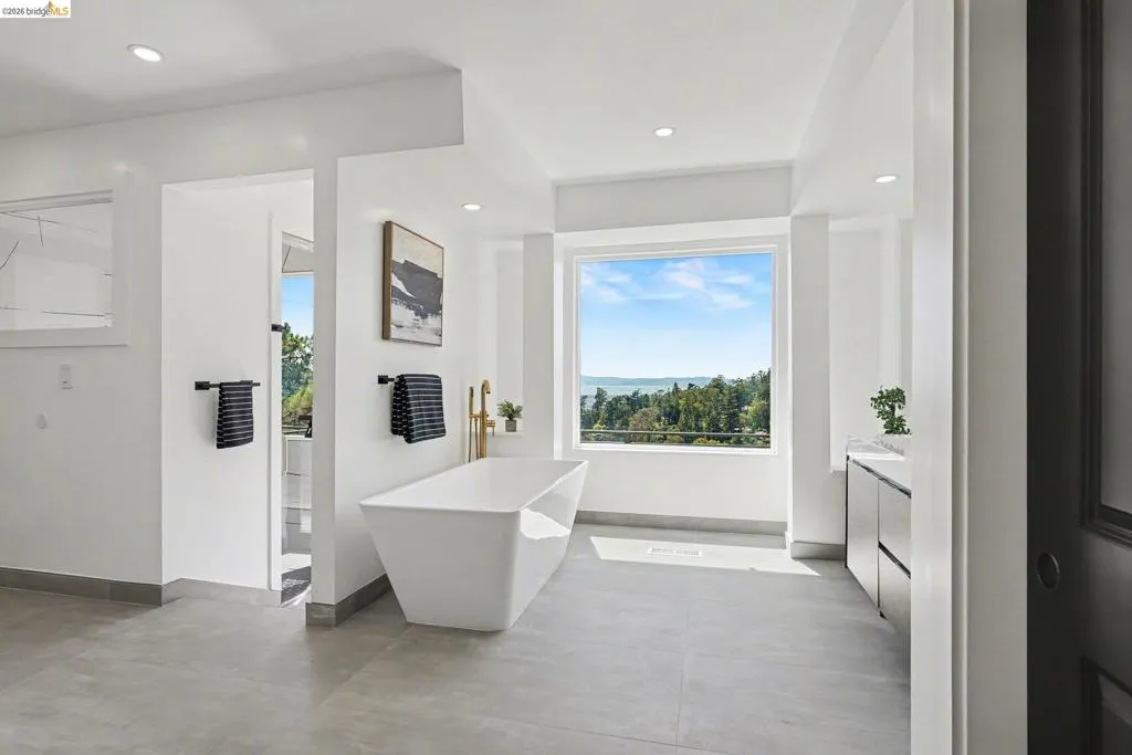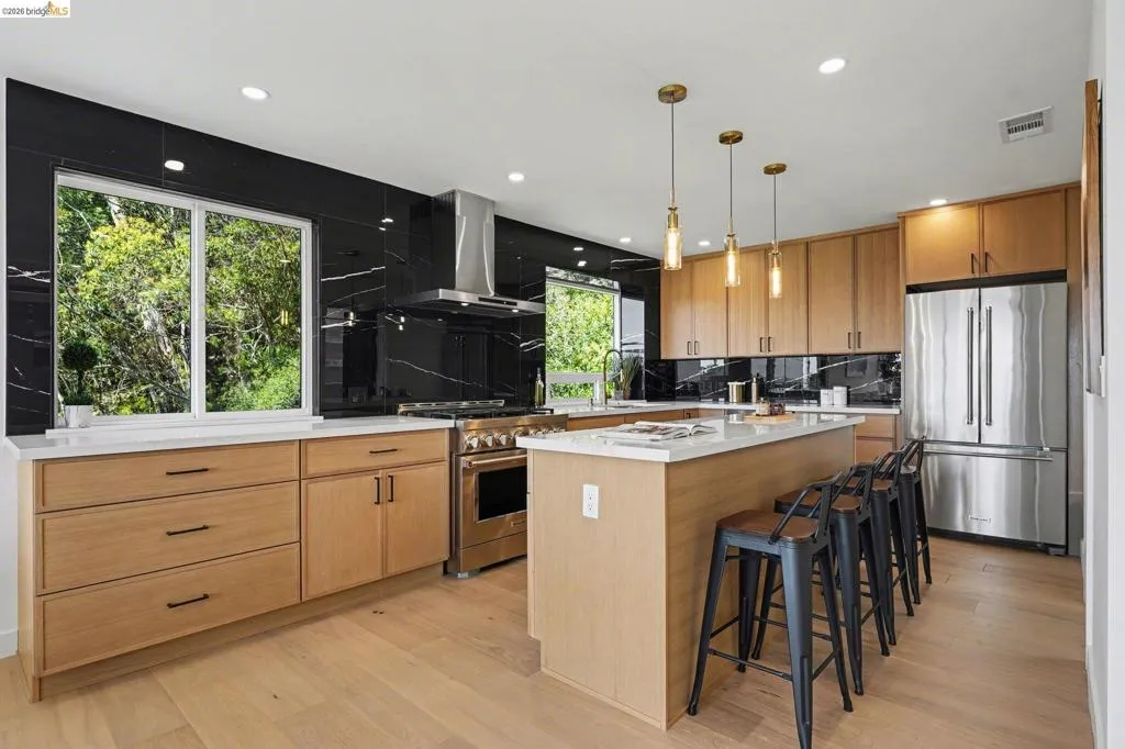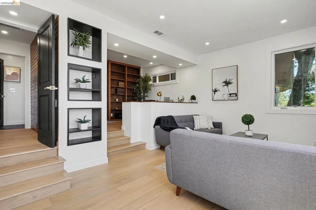 Tucked away in the highly desirable Montclair Hills, this fully renovated residence blends modern finishes with serene, nature-filled surroundings. Featuring an open floor plan and expansive windows, the home is filled with natural light and captures panoramic hillside forest views with a glimpse of the Bay. This versatile layout offers two spacious primary suites and a large family room or office with a sink. The lower levels provide an abundance of flexible spaces ideal for a gym, theater, office, storage, or other potential uses. Upgrades include Level 5 smooth walls, engineered wood flooring, a 200-amp main panel, copper plumbing, and two central heating and A/C systems with dual-zone controls. Skylights with retractable covers enhance the natural brightness throughout. The stylishly remodeled kitchen and four updated bathrooms complete the modern interior. Situated on a generous lot, the property features two attached garages, a large driveway, and an expanded backyard perfect for gardening or outdoor enjoyment. Sewer lateral compliant. Conveniently located near Montclair Village, regional parks, hiking trails, and top-rated schools, with easy access to Highway 13 for an easy commute.