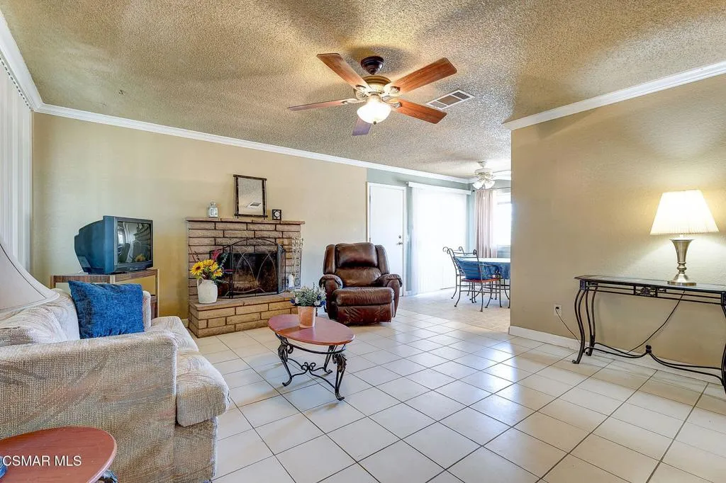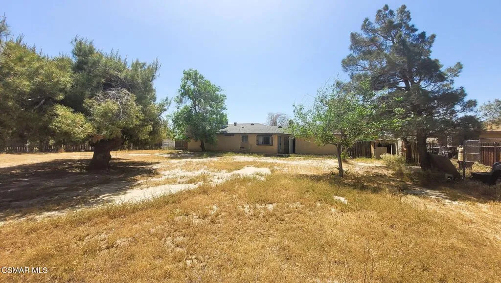 Welcome home to 15707 Lanfair Avenue, a move in ready single story in the Lake Los Angeles community of east Lancaster. Set on an oversized flat lot with mature shade trees, this 3 bedroom, 2 bathroom home offers 1,134 square feet of comfortable living and a bonus most Southern California buyers never see at this price point: real room to build a second home on the property.Step inside to a light filled living room with ceiling fan, crown molding, and a tall vertical blind window. The layout flows into a generous family room anchored by a full brick wood burning fireplace with raised hearth, crown molding, and slider access to the backyard. Continuous ceramic tile runs through the main living areas for easy care.The kitchen features bright white cabinetry, a gas range with vent hood, a dedicated pantry wall, and a window over the sink. The adjacent dining nook is oversized and skylit, with its own ceiling fan and sliding door to the backyard. Three carpeted bedrooms include a primary suite with dual sink vanity, mirrored wardrobe, and private en suite bath. Both full baths offer shower tub combos.Outside, the flat rear lot is anchored by mature pine and cottonwood trees, with real room for an ADU, JADU, or SB 9 second unit, buyer to verify feasibility with LA County. Attached two car garage, long concrete driveway, side yard access, and chain link fencing.Minutes from Pearblossom Highway for the commute west and weekend access to the Angeles National Forest. One home today. Two homes tomorrow.