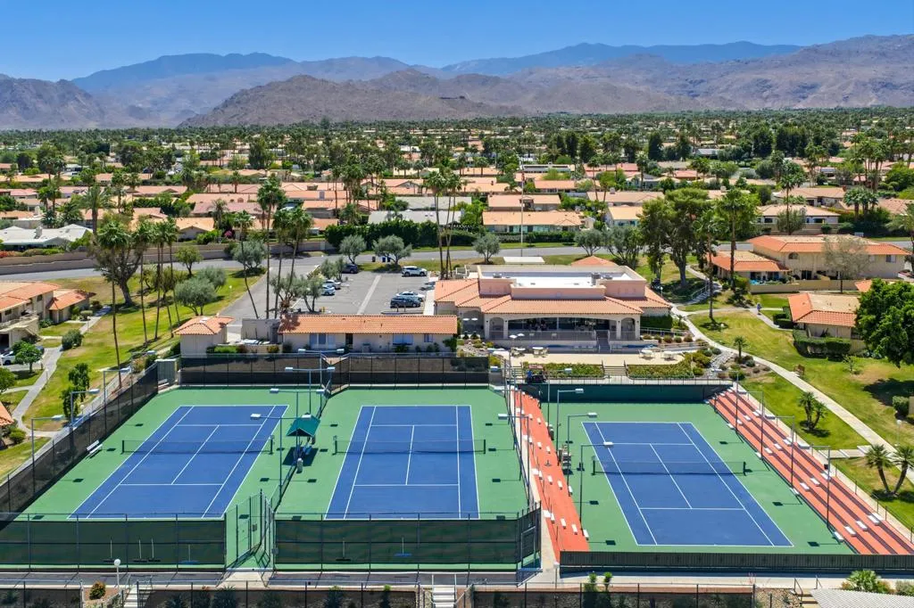 Welcome to Palm Desert Deep Canyon Tennis Club- -where style, comfort, and location come together beautifully. This fully renovated townhouse condo has been thoughtfully updated from top to bottom, offering a move-in-ready retreat in one of Palm Desert's most desirable gated communities.Featuring 2 spacious ensuite bedrooms and 2 completely remodeled full bathrooms as well as a powder bath downstairs, this home blends modern design with everyday functionality. The downstairs living area opens to a stunning, upgraded kitchen with sleek quartz countertops, stainless steel appliances, and a large island perfect for entertaining or casual dining.Wide luxury plank vinyl flooring runs throughout the home, adding both durability and contemporary appeal. Step outside to your private, quaint patio with convenient access to the community's exceptional amenities--including a clubhouse, 10 tennis courts, 6 pickleball courts with full staff during the season to get you into the games, chipping green, 12 pools, and 4 relaxing Heated spas, Newly refurbished Bocce Ball Court, and a workout Gym!Ideally situated just a short stroll from the renowned shops and fine dining of El Paseo, this home also sits on fee land (no land lease) and is offered turnkey furnished--making it an effortless full-time residence, vacation getaway, or investment opportunity.