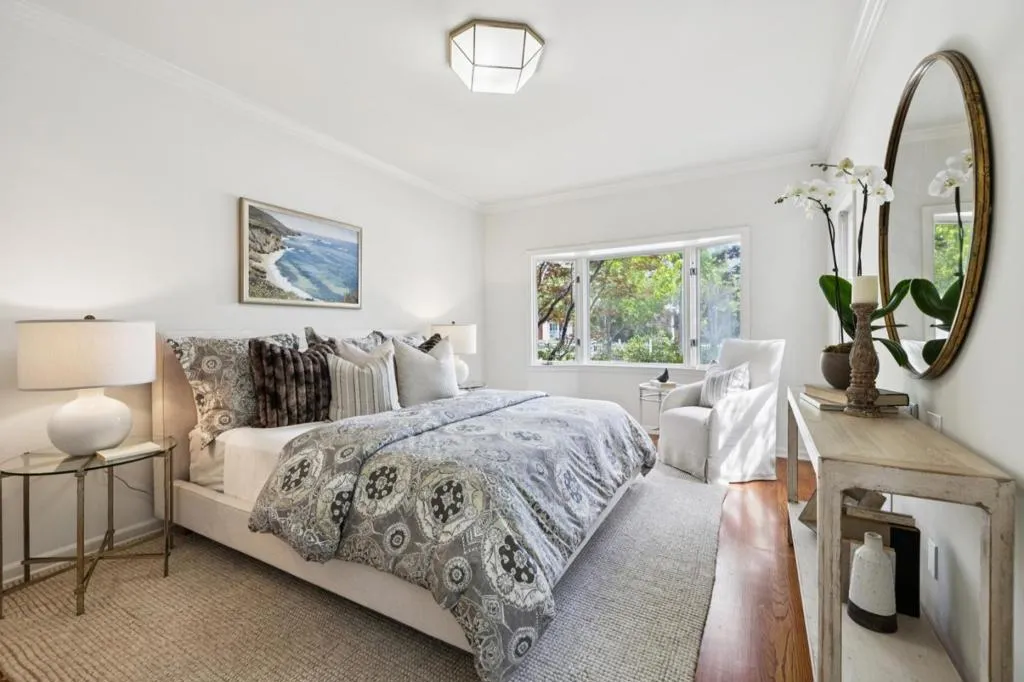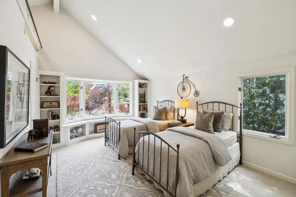 Turnkey Old Palo Alto home blending modern comfort with classic East Coast charm. Cathedral ceilings and skylights bring abundant natural light to expansive living spaces rarely permitted today. Open floorplan with elegant gathering areas and island kitchen featuring dual ovens, dual dishwashers, and gas range. Four upstairs bedrooms include a spacious primary suite, plus a ground-level guest suite. Private backyard with paver terrace, BBQ island, and English-style landscaping. Detached garage offers potential for studio or workshop. Prime location near California Avenue, and Town & Country Village with easy access to Downtown Palo Alto and top-rated schools. Close to Stanford University and premier tech campuses, offering exceptional access to Silicon Valleys innovation hub.