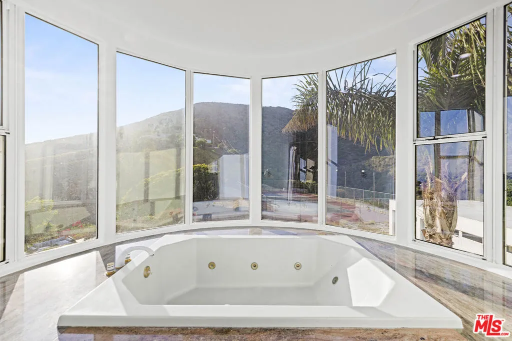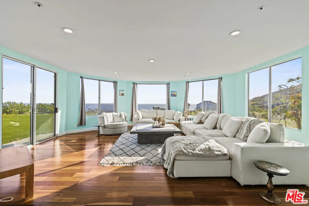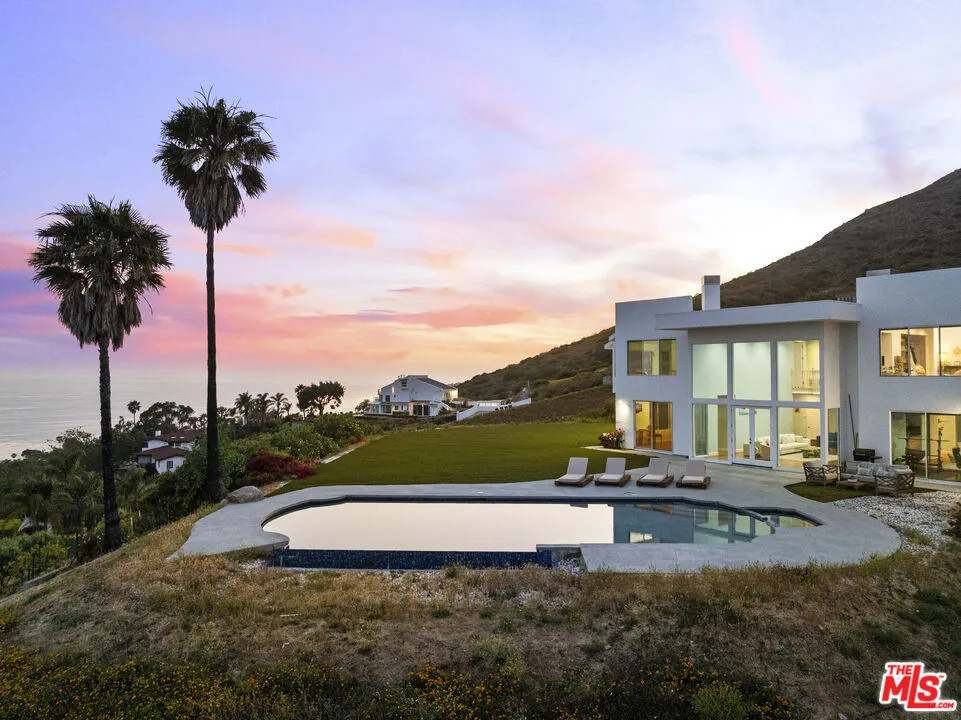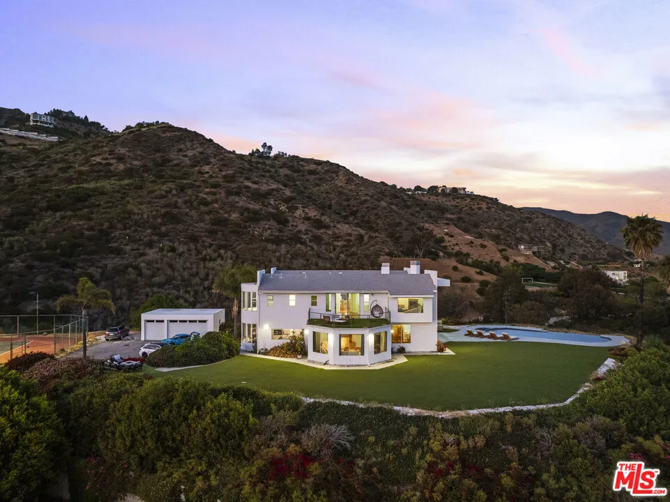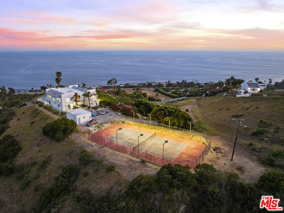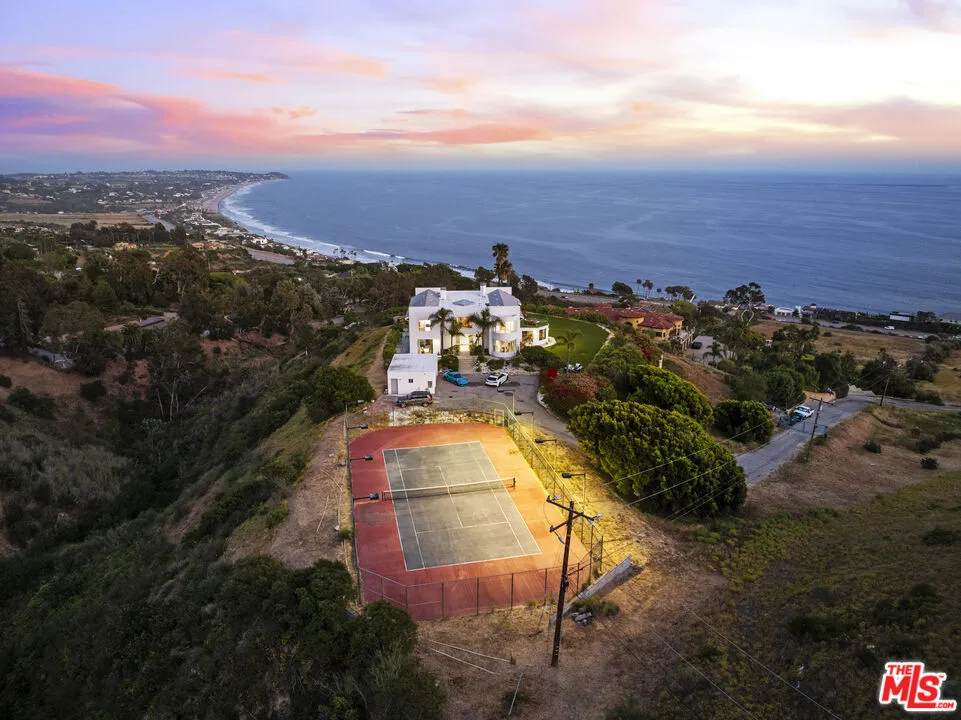 A refined coastal estate set above Pacific Coast Highway and the exclusive Broad Beach neighborhood, offering sweeping ocean, coastline, and mountain views from a private four-acre setting. This five-bedroom, six-bathroom residence delivers scale, light, and clean lines in one of Malibu's most sought-after locations. Floor-to-ceiling glass and open-concept living spaces frame the Pacific at every turn, creating a seamless connection between indoors and out. The home is designed for effortless living with expansive entertaining areas, a well-appointed kitchen, and a primary suite positioned to capture uninterrupted ocean views. The grounds are equally compelling. A view-facing pool and spa enhance the outdoor experience, complemented by a private lighted tennis court, broad lawns, and layered landscaping that enhances both privacy and usability. Moments from Malibu's best beaches, trails, and dining, this property offers a rare balance of design, land, and location. Clean. Private. Elevated coastal living.