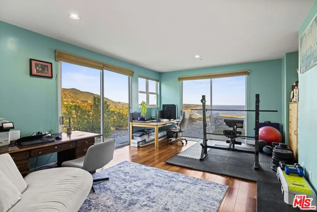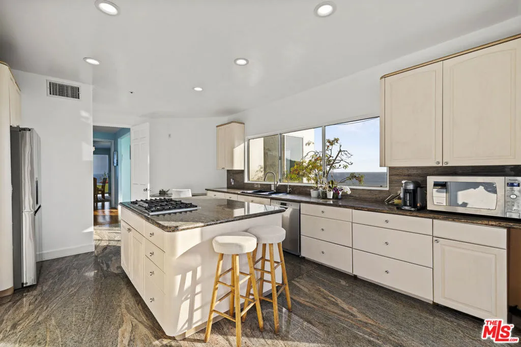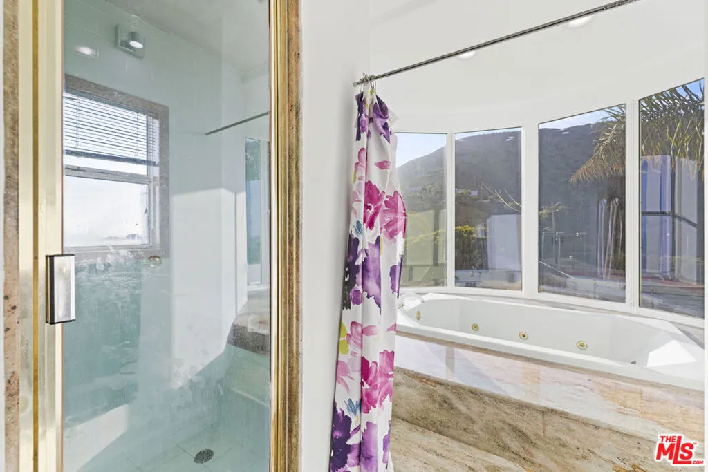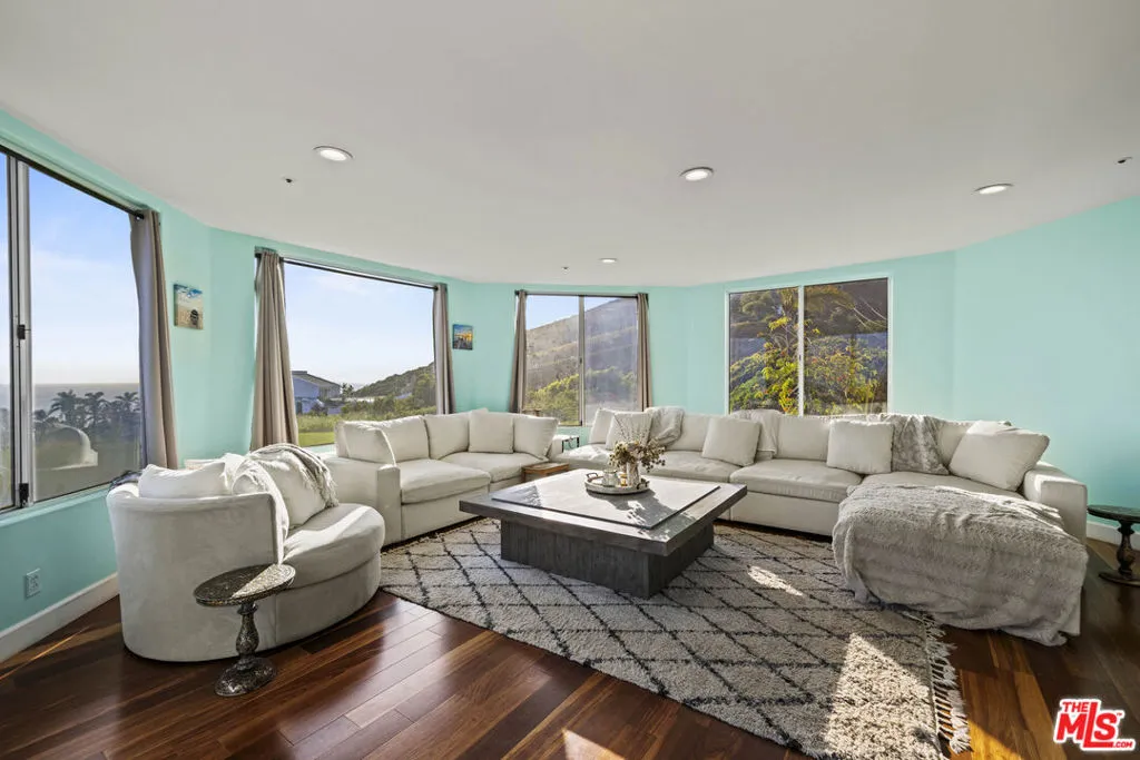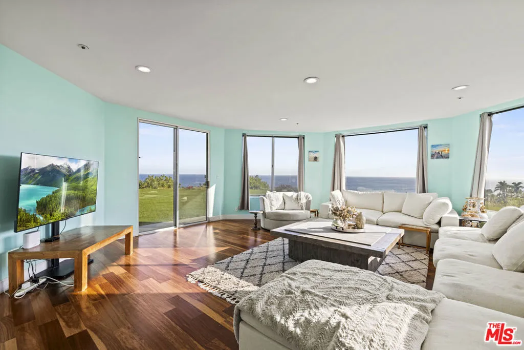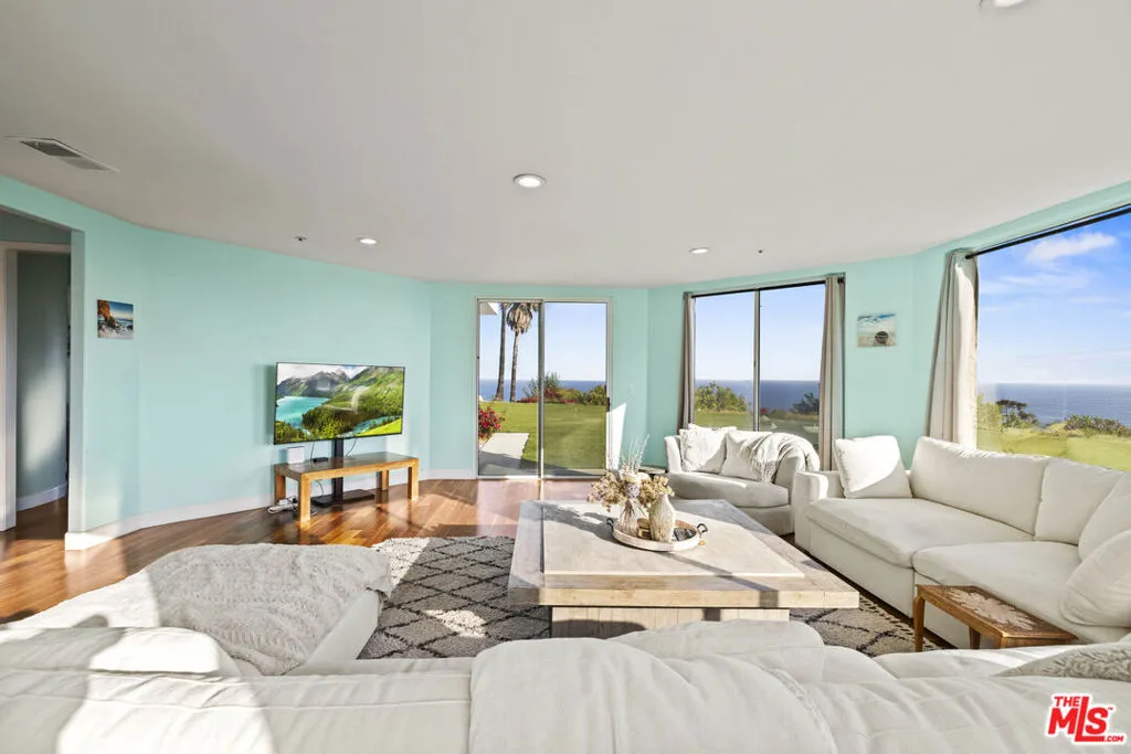 A refined coastal estate set above Pacific Coast Highway and the exclusive Broad Beach neighborhood, offering sweeping ocean, coastline, and mountain views from a private four-acre setting. This five-bedroom, six-bathroom residence delivers scale, light, and clean lines in one of Malibu's most sought-after locations. Floor-to-ceiling glass and open-concept living spaces frame the Pacific at every turn, creating a seamless connection between indoors and out. The home is designed for effortless living with expansive entertaining areas, a well-appointed kitchen, and a primary suite positioned to capture uninterrupted ocean views. The grounds are equally compelling. A view-facing pool and spa enhance the outdoor experience, complemented by a private lighted tennis court, broad lawns, and layered landscaping that enhances both privacy and usability. Moments from Malibu's best beaches, trails, and dining, this property offers a rare balance of design, land, and location. Clean. Private. Elevated coastal living.