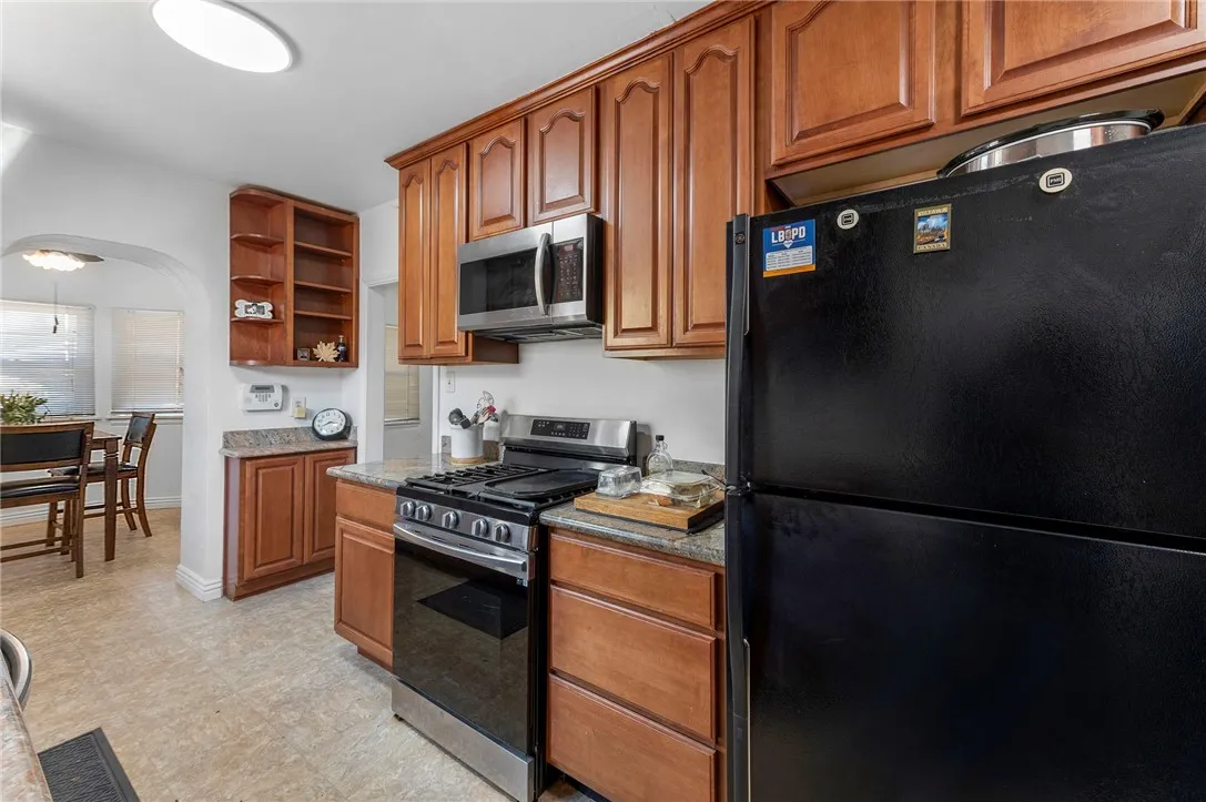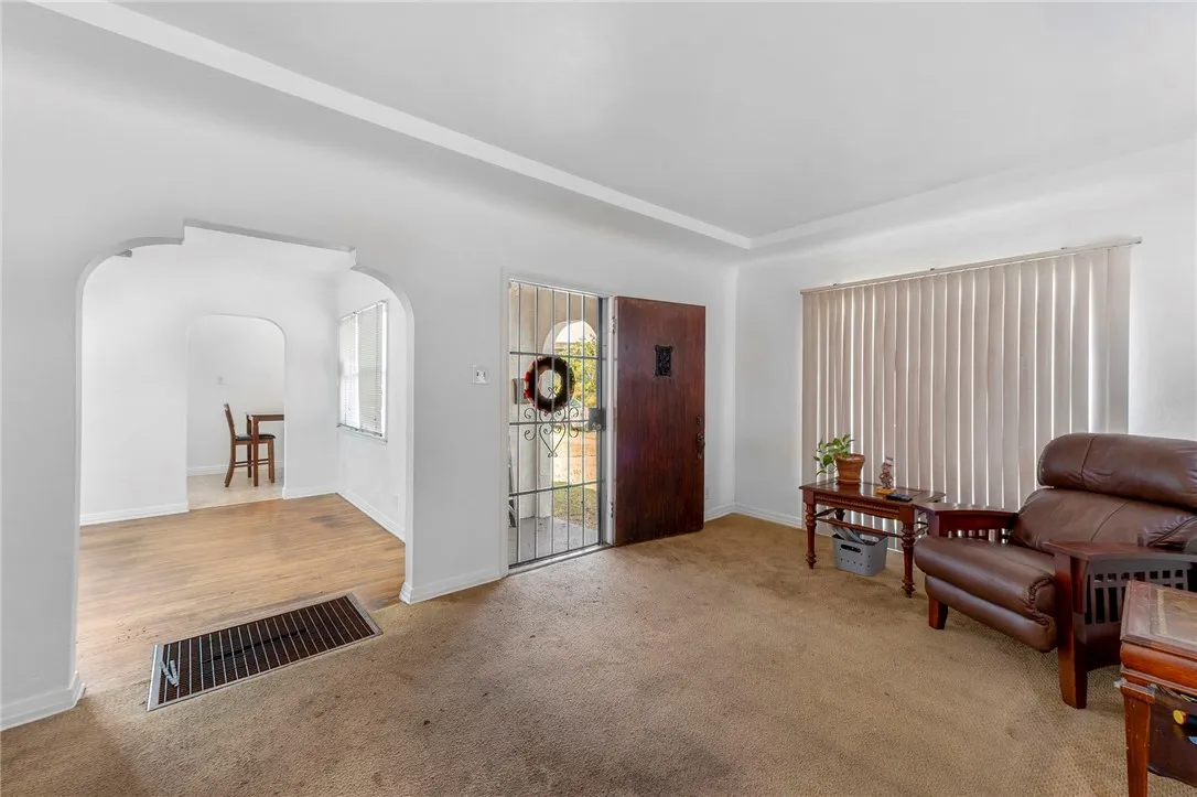 Charming Spanish Tudor-style 3-bedroom home offering 1,312 square feet of living space filled with timeless character and thoughtful updates. Features include beautifully crafted arches, built-ins, real oak hardwood floors, fresh interior and exterior paint, newer light fixtures, and a remodeled kitchen and bath. The spacious living room is highlighted by a large picture window that fills the home with natural light, while the formal dining room and delightful breakfast nook with built-ins showcase storybook-style architectural charm. The spacious primary bedroom offers generous proportions and a walk-in closet. An inside laundry room and multiple hallway closets add everyday convenience. Situated on a 5,345 square foot lot, the private backyard features fruit trees and a charming patio area. A rare detached 4-car garage with alley access provides outstanding convenience, abundant parking, and excellent potential for ADU conversion, workshop space, storage, or other future value-added use (buyer to verify). All of this is set on a beautiful tree-lined street near shopping and with easy access to the 91 Freeway.