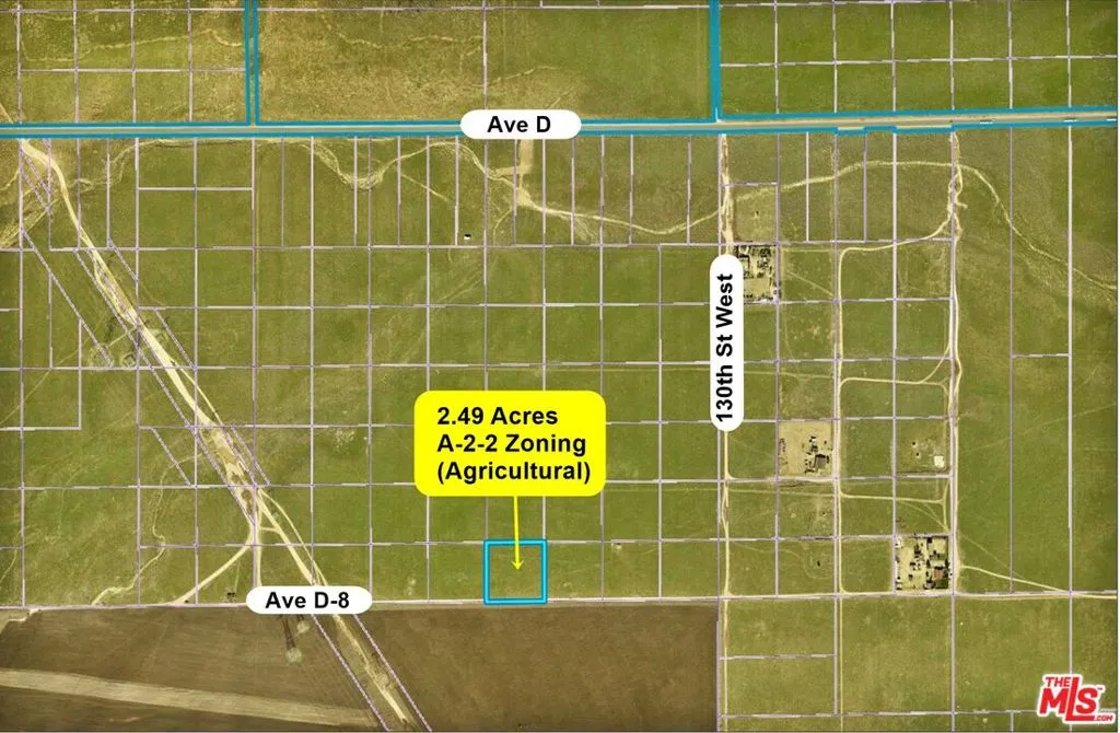 Fantastic opportunity to own 2.49 acres of flat, rural land in the growing Lancaster area of Antelope Acres, located near Poppy Reserve. This versatile parcel is zoned A-2-2 (Heavy Agriculture) in Los Angeles County, allowing for a wide range of uses. Whether you're planning to build a custom home, establish an agricultural operation, or hold as a long-term investment, this property offers flexibility to suit your vision. The land features beautiful desert and mountain views, peaceful surroundings, and convenient proximity to paved Highway 138 (Ave D). Ideal for off-grid living, recreation, farming, ranching, or potential future development, the zoning permits single-family residences, greenhouses, nurseries, wineries, animal shelters, apiaries, dog kennels, and the raising, breeding, and training of horses and livestock including cattle, sheep, and goats. Riding academies, stables, and horse boarding are also allowed, making this an exceptional opportunity for agricultural, equestrian, or rural residential use. Don't miss your chance to secure a slice of California's landscape. Directions: From Highway 14, exit at Highway 138 (Ave D) and proceed west. Turn left onto 130th St West. Continue approximately 0.5 mile, then turn right. The property will be on the right side.