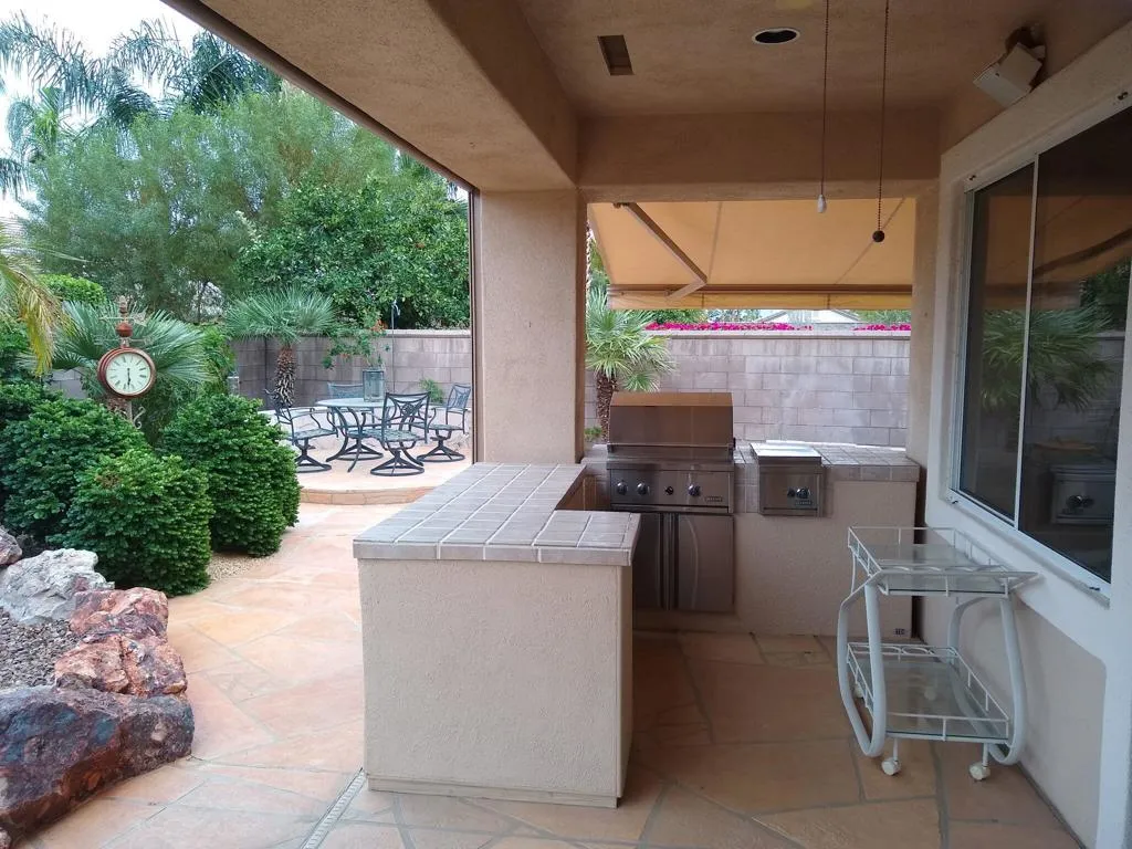 Welcome to resort-style living in this beautifully maintained St. Croix model, offering 2,032 square feet of living space with 2 bedrooms, 2 bathrooms, and a versatile office/den. Ideally situated on a private cul-de-sac with only six homes, this property provides a rare combination of privacy and community.A standout feature is the true 3-car garage with extensive built-in storage--perfect for car enthusiasts or those in need of extra space. Inside, the home features a large Great Room designed for comfortable living and entertaining, along with a spacious kitchen complete with abundant cabinetry, GE Profile appliances, and an inviting eat-in dining area. The interior has been freshly painted and showcases neutral tile flooring throughout the main living areas, with carpeting in the bedroom spaces.Additional highlights include interior shutters throughout, exterior sun screens for added efficiency, and an extra retractable patio awning that enhances outdoor living. The low-maintenance yard is ideal for easy living and features a built-in BBQ and fire pit--perfect for relaxing or entertaining guests.This home includes access to all the premier amenities Sun City Palm Desert is known for, including golf, fitness centers, pools, and an active lifestyle. Gardener and pest control services are included, offering added convenience.An exceptional lease opportunity offering comfort, space, and the full Sun City lifestyle.