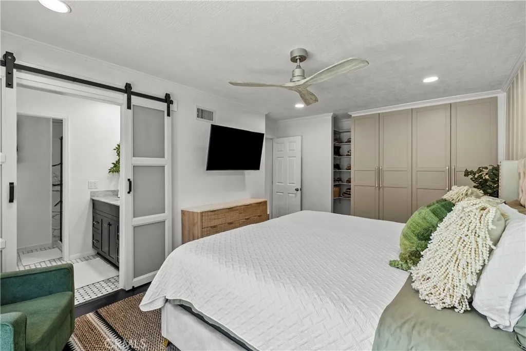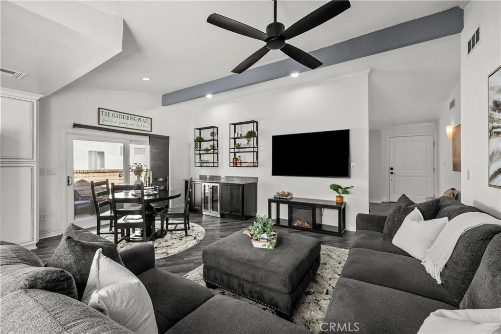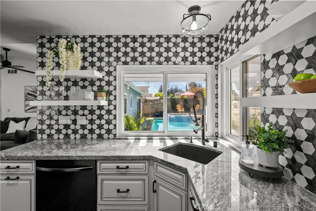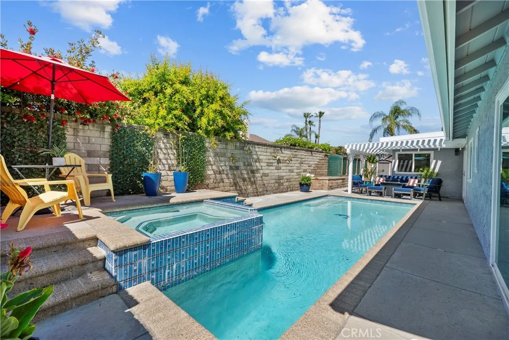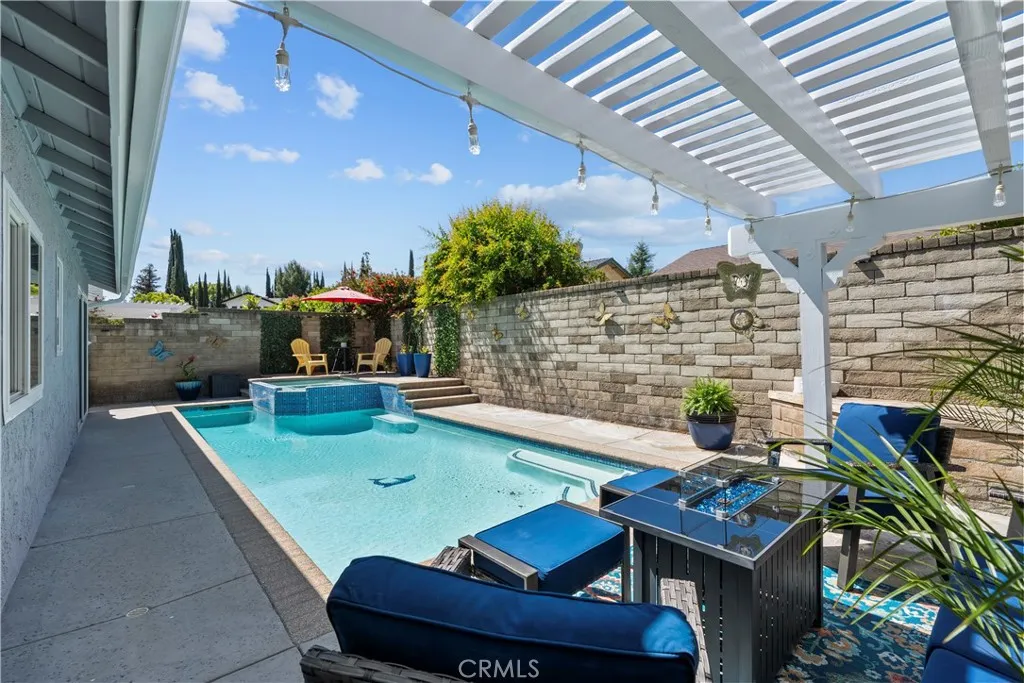 Welcome to this beautifully remodeled single story home in the highly sought after Valencia Meadows community offering the rare benefits of NO HOA and NO Mello-Roos. Tucked away on a quiet, picturesque cul-de-sac, this stunning 4 bedroom, 2 bathroom residence features approximately 1,550 square feet of thoughtfully upgraded living space, seamlessly blending modern style with everyday comfort. Step inside to a bright and inviting living room, where brand new flooring, fresh interior paint, and layout create a warm and welcoming atmosphere perfect for both relaxing and entertaining. The fully remodeled kitchen is a true centerpiece, showcasing vibrant tile and granite countertops, and new matching Samsung appliances. Do your dishes while looking out at your backyard oasis. Designed with both functionality and style in mind, it flows effortlessly into the adjacent dining area and family room, creating an ideal space for family meals and gatherings. The spacious primary suite offers a peaceful retreat, complete with custom closets and storage, bright natural light and a calming ambiance with direct access to your backyard. Its fully remodeled en-suite bathroom features modern finishes and fixtures, delivering a spa-like experience with carefully curated details. Three additional bedrooms provide versatility for family, guests, or a home office, each filled with natural light and finished with new carpet and fresh paint. The secondary bathroom has also been tastefully remodeled, offering both comfort and style for residents and visitors alike. A conveniently located laundry room adds to the home’s everyday practicality. Outside, the home continues to impress with freshly painted exterior surfaces and newly refreshed landscaping that enhance its curb appeal. The private backyard is an entertainer’s dream, featuring a pool and relaxing spa perfect for enjoying Southern California’s year-round sunshine. Additional highlights include a brand-new roof and meticulous upkeep throughout, offering peace of mind for years to come. Ideally located within an award-winning school district and just minutes from parks, shopping, and dining, this exceptional home truly has it all.