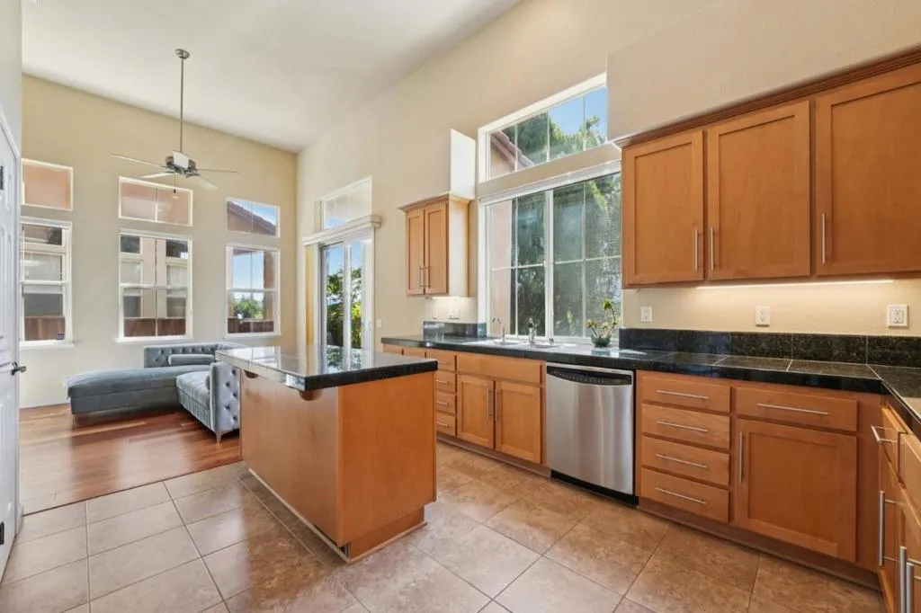 Nestled at the top of a serene cul-de-sac, this stunning home offers exceptional privacy with only one neighbor and no homes behind. The backyard is a personal outdoor retreat, showcasing breathtaking sunset views and open sky. Inside, the multi-level layout creates spaciousness: a welcoming reception area, formal living room with a cozy fireplace, bright dining room overlooking the yard, and a high-ceiling kitchen that flows into a large family room with a second fireplace. Upstairs, discover four bedrooms, including a primary suite with a bonus retreat and sweeping mountain and city-light vistas. Located in the sought-after Portofino neighborhood, enjoy quick access to 85, 87, Light Rail, parks, shopping, and downtown San Jose. This unique blend of privacy, elevation, natural light, and prime location makes this home a must-see!