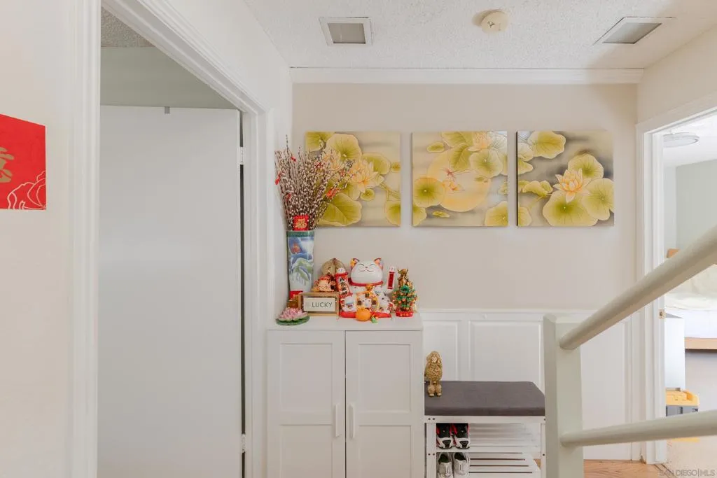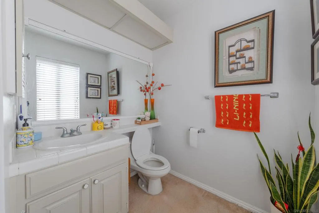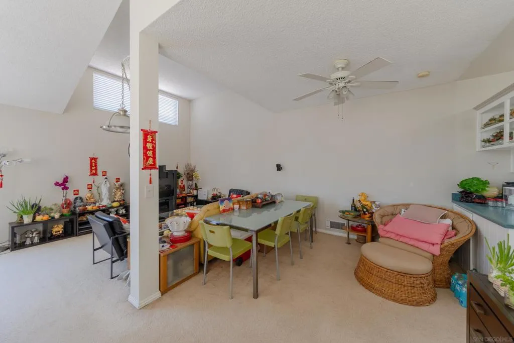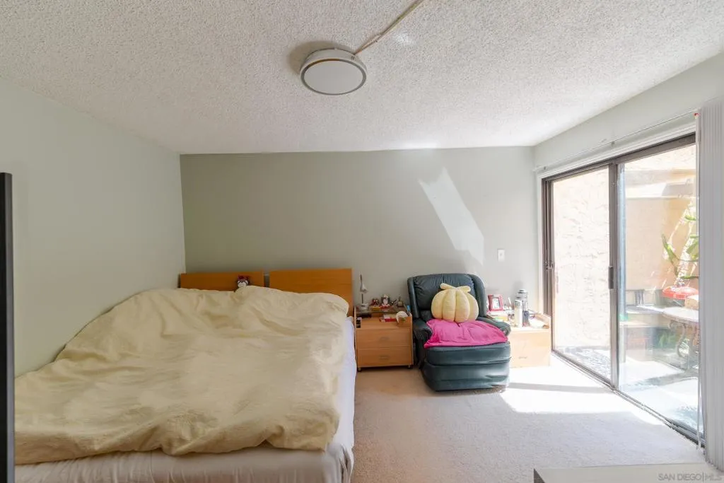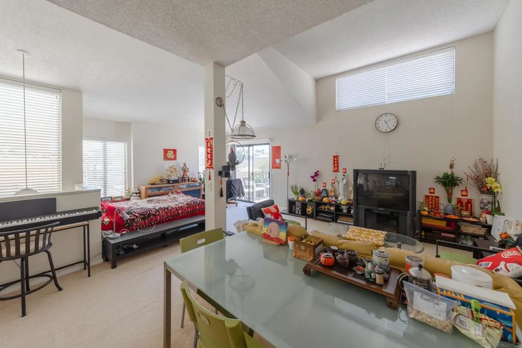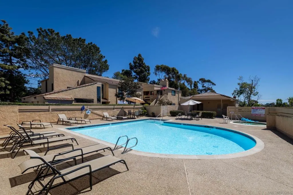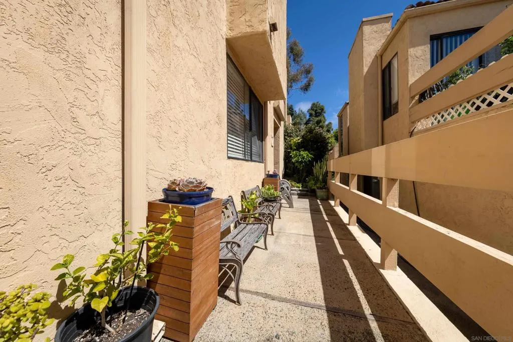 Nestled in the sought-after Dieguenos community, this charming 2-bedroom, 1.5-bathroom condo offers 1,103 sq ft of thoughtfully designed two-story living in one of San Diego's most vibrant neighborhoods. A rare opportunity in a highly desirable complex that seldom hits the market — don't miss your chance to own in one of University City's most coveted addresses. This unique reverse floor plan offers the best of both worlds — two spacious bedrooms on the first floor sharing a large bathroom with dual-door access from both bedrooms, providing privacy and convenience. The main living areas soar above on the second floor, where soaring high ceilings and an abundance of natural light create a bright, airy atmosphere that feels open and expansive. A convenient half bathroom on the second floor adds extra functionality for guests and everyday living. The sun-drenched living room features a cozy fireplace and flows seamlessly to your own private balcony — the perfect spot to enjoy San Diego's year-round sunshine and fresh coastal breeze. The well-appointed kitchen sits adjacent, making everyday living and entertaining effortless.