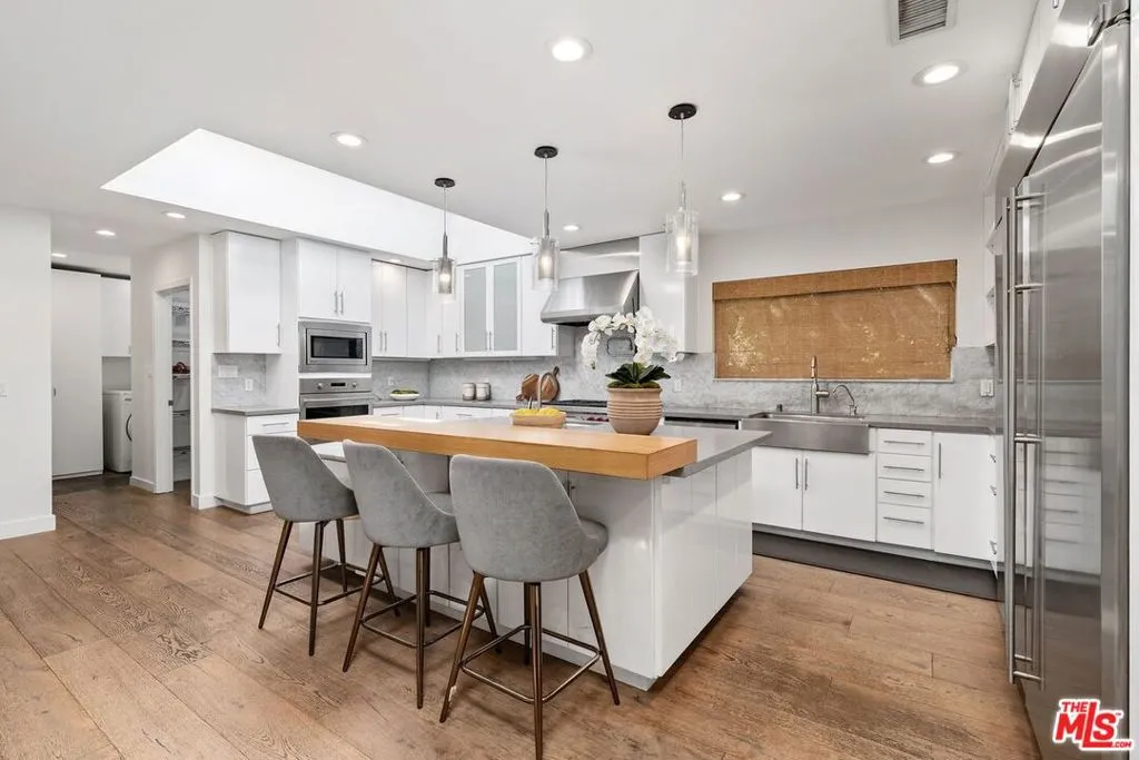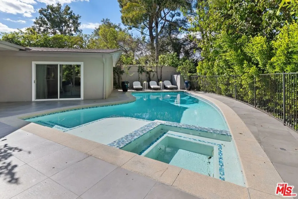 Nestled in the highly sought-after Sherman Oaks Hills, this stunning 5-bedroom, 4-bathroom residence offers the perfect blend of luxury, comfort, and convenience. Ideally located with easy access to Sepulveda, Mulholland, and the 405, this move-in-ready home delivers both tranquility and connectivity. Recently upgraded, the home features beautiful hardwood floors and a spacious open-concept layout designed for modern living. The chef's kitchen is a true showstopper, complete with a large marble island ideal for entertaining or pastry preparation, and equipped with high-end appliances to satisfy any culinary enthusiast. Set on an expansive 15,000+ square foot lot, the property boasts exceptional indoor-outdoor flow. Large bifold doors in the living room open seamlessly to a sumptuous covered patio, creating the ultimate California living experience. The outdoor space is an entertainer's dream, featuring a large outdoor kitchen, pool, and jacuzzi perfect for relaxing or hosting gatherings. Additional highlights include a two-car garage with level two electric vehicle charger, updated landscaping and thoughtfully designed spaces throughout. This is a rare opportunity to own a turnkey home in one of the Valley's most desirable neighborhoods.