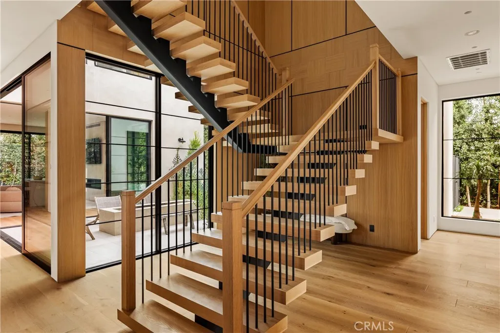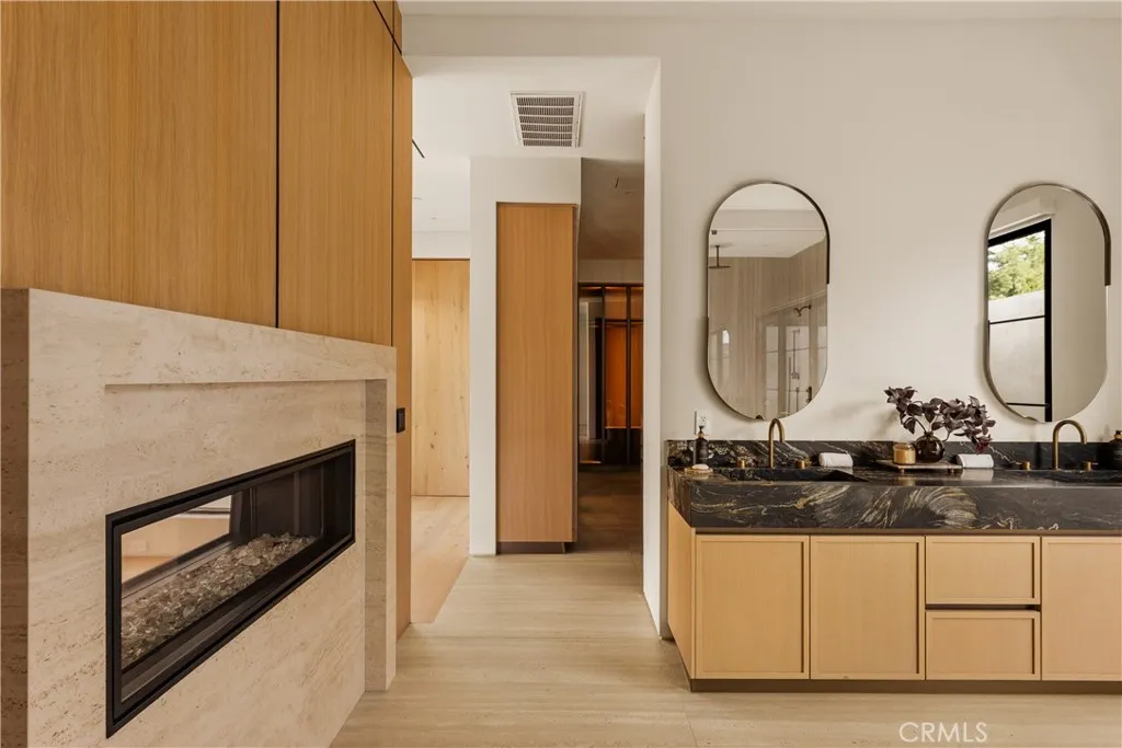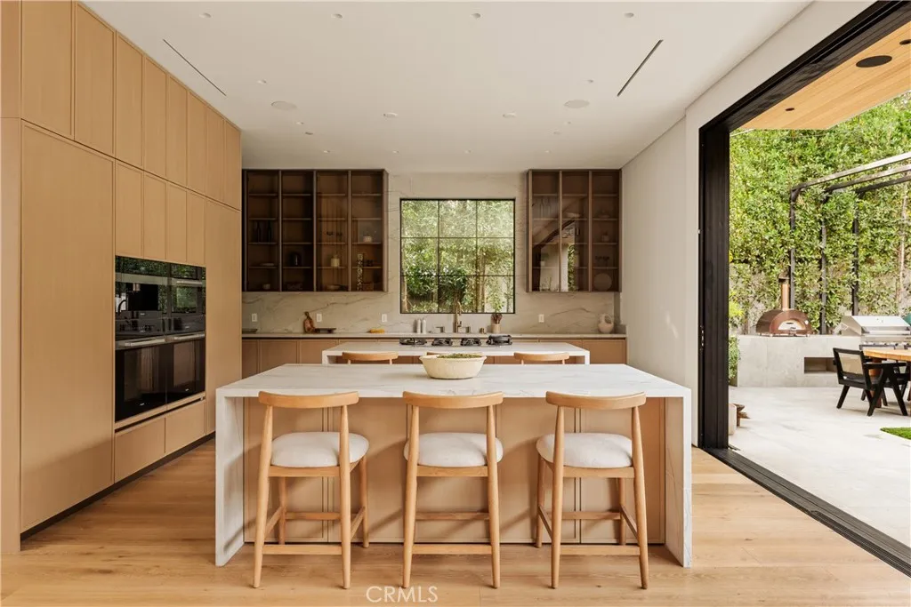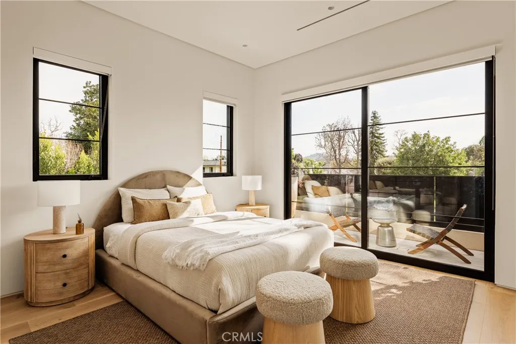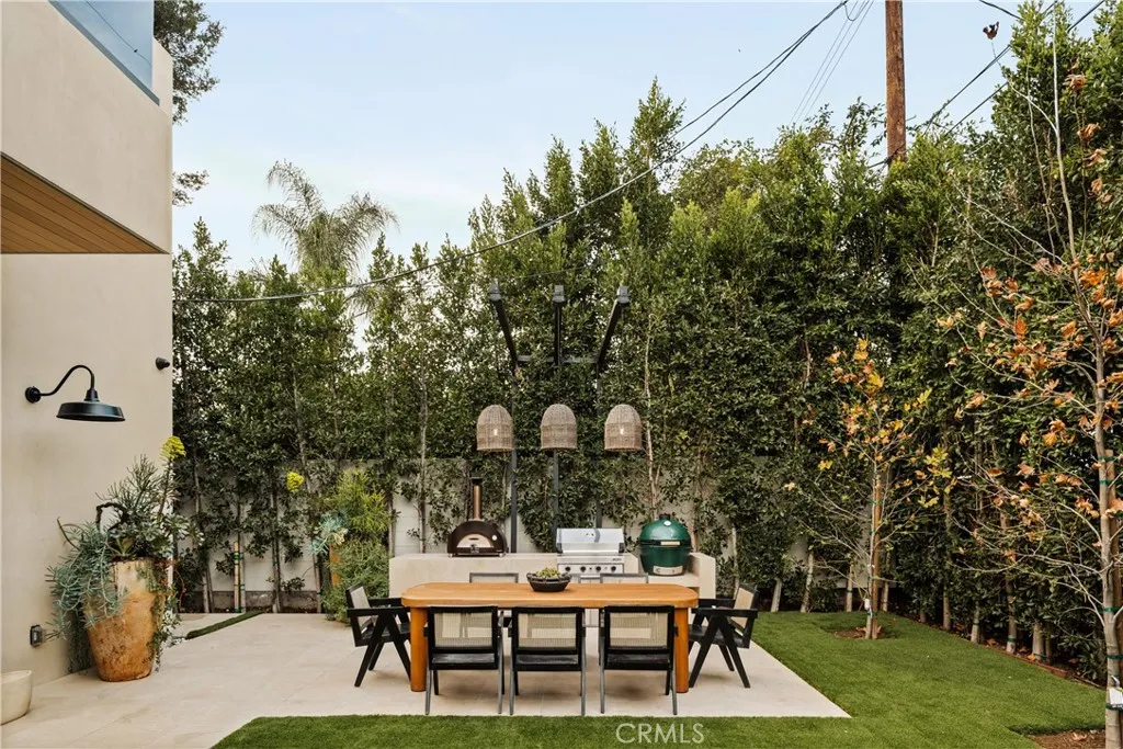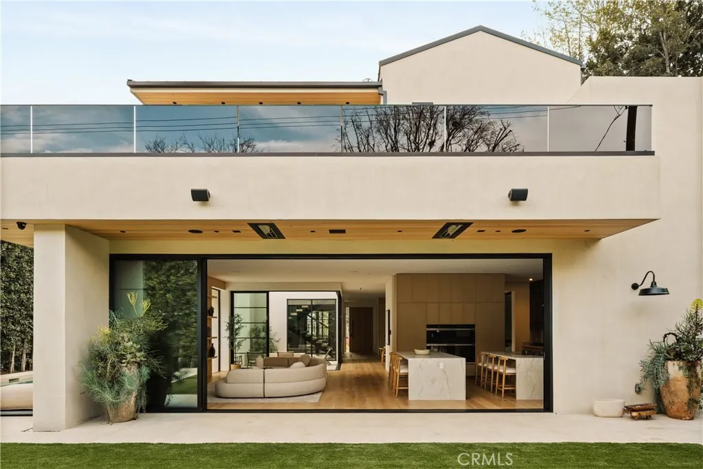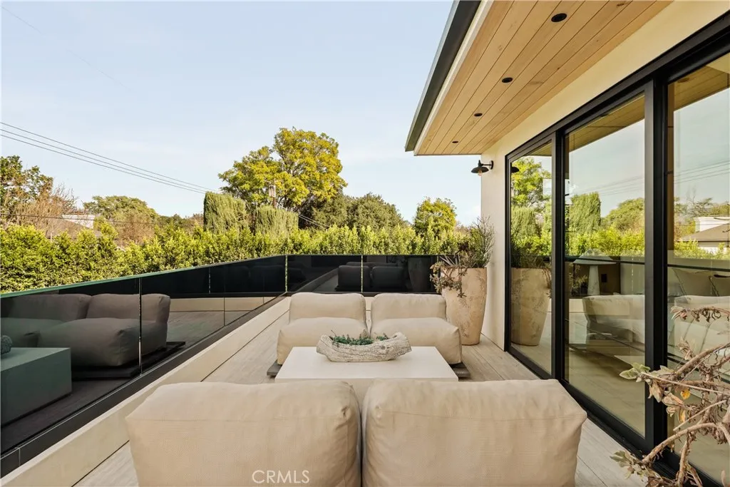 A striking new contemporary estate by MLR Development, this sophisticated home blends architectural style with everyday comfort in a coveted pocket of Valley Village near Colfax Elementary School. Offering 5 bedrooms and 6 baths, the residence is defined by dramatic volume, abundant natural light, and a floor plan tailored for modern California living. The main level unfolds through expansive entertaining spaces enhanced by oversized glass openings that connect effortlessly to the outdoors. A showpiece kitchen serves as the heart of the home, outfitted with top-tier Miele appliances, bespoke cabinetry, generous workspaces, and a statement island ideal for gathering. Outside, enjoy a private resort-style setting complete with a sparkling pool, spa, built-in barbecue kitchen, and fireside lounge area designed for year-round enjoyment. Additional highlights include a dedicated screening room, a private guest suite on the first floor, and thoughtfully selected finishes that bring warmth and elegance throughout. Upstairs, four spacious ensuite bedrooms are complemented by a convenient laundry room. The grand primary retreat features vaulted ceilings, a secluded terrace, spa-inspired bath, and an impressive custom dressing room. Smart-home integration and timeless design complete this exceptional offering in one of the most desirable neighborhoods in the San Fernando Valley.