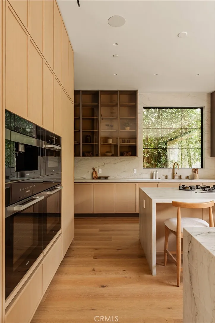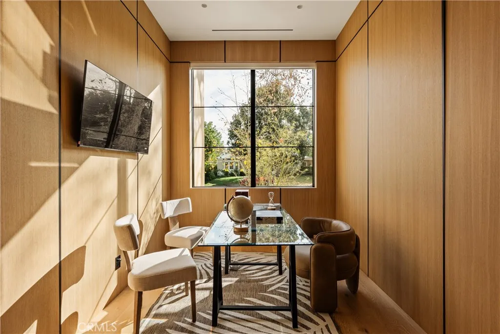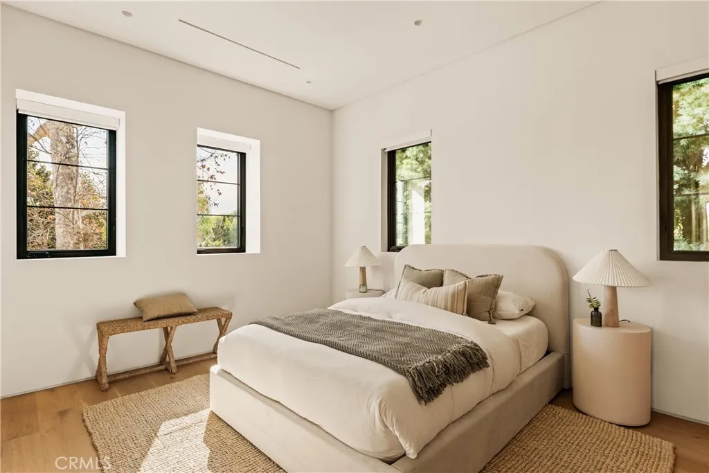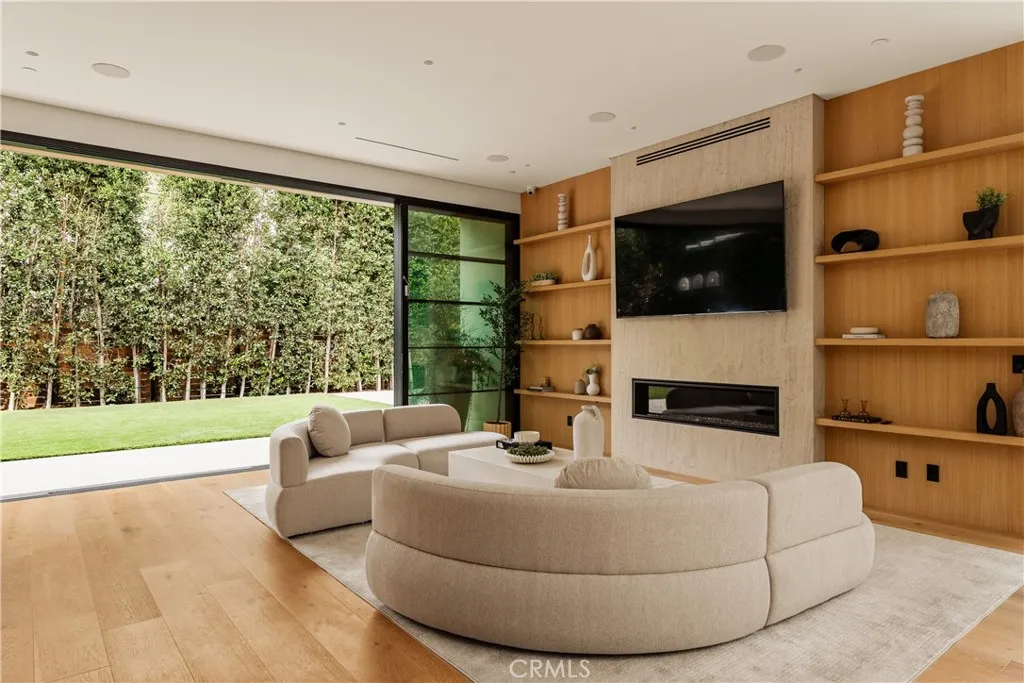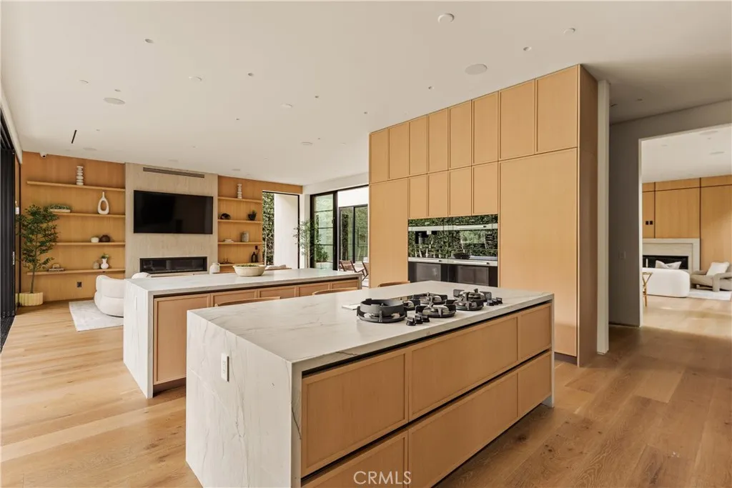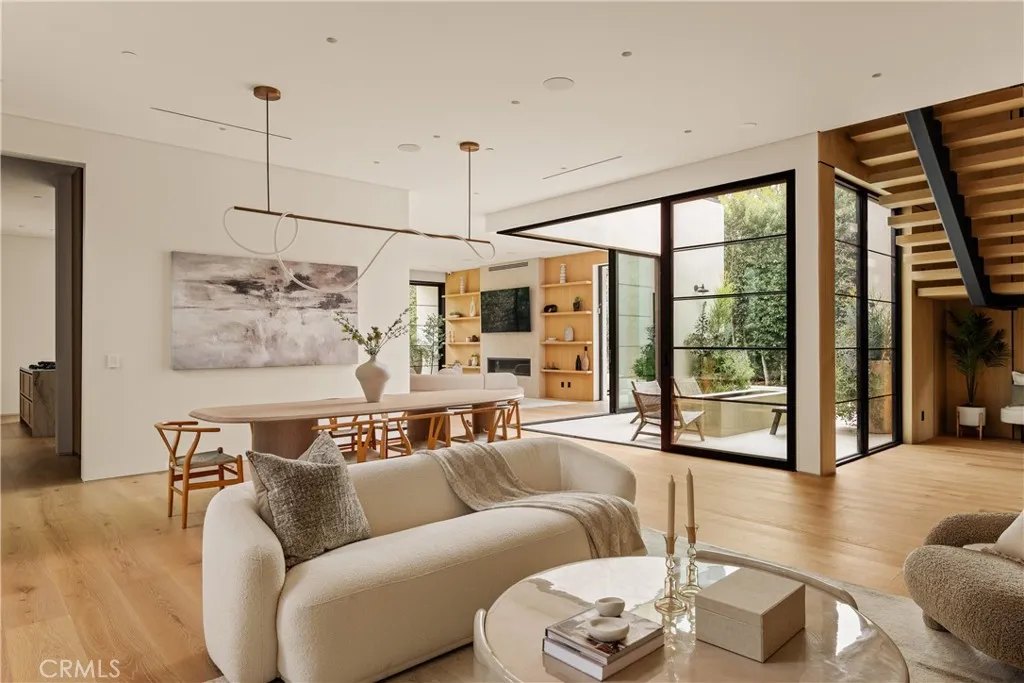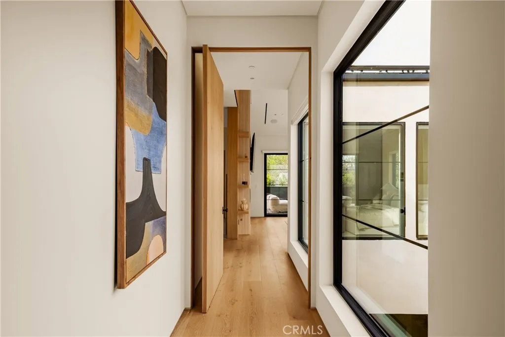 A striking new contemporary estate by MLR Development, this sophisticated home blends architectural style with everyday comfort in a coveted pocket of Valley Village near Colfax Elementary School. Offering 5 bedrooms and 6 baths, the residence is defined by dramatic volume, abundant natural light, and a floor plan tailored for modern California living. The main level unfolds through expansive entertaining spaces enhanced by oversized glass openings that connect effortlessly to the outdoors. A showpiece kitchen serves as the heart of the home, outfitted with top-tier Miele appliances, bespoke cabinetry, generous workspaces, and a statement island ideal for gathering. Outside, enjoy a private resort-style setting complete with a sparkling pool, spa, built-in barbecue kitchen, and fireside lounge area designed for year-round enjoyment. Additional highlights include a dedicated screening room, a private guest suite on the first floor, and thoughtfully selected finishes that bring warmth and elegance throughout. Upstairs, four spacious ensuite bedrooms are complemented by a convenient laundry room. The grand primary retreat features vaulted ceilings, a secluded terrace, spa-inspired bath, and an impressive custom dressing room. Smart-home integration and timeless design complete this exceptional offering in one of the most desirable neighborhoods in the San Fernando Valley.