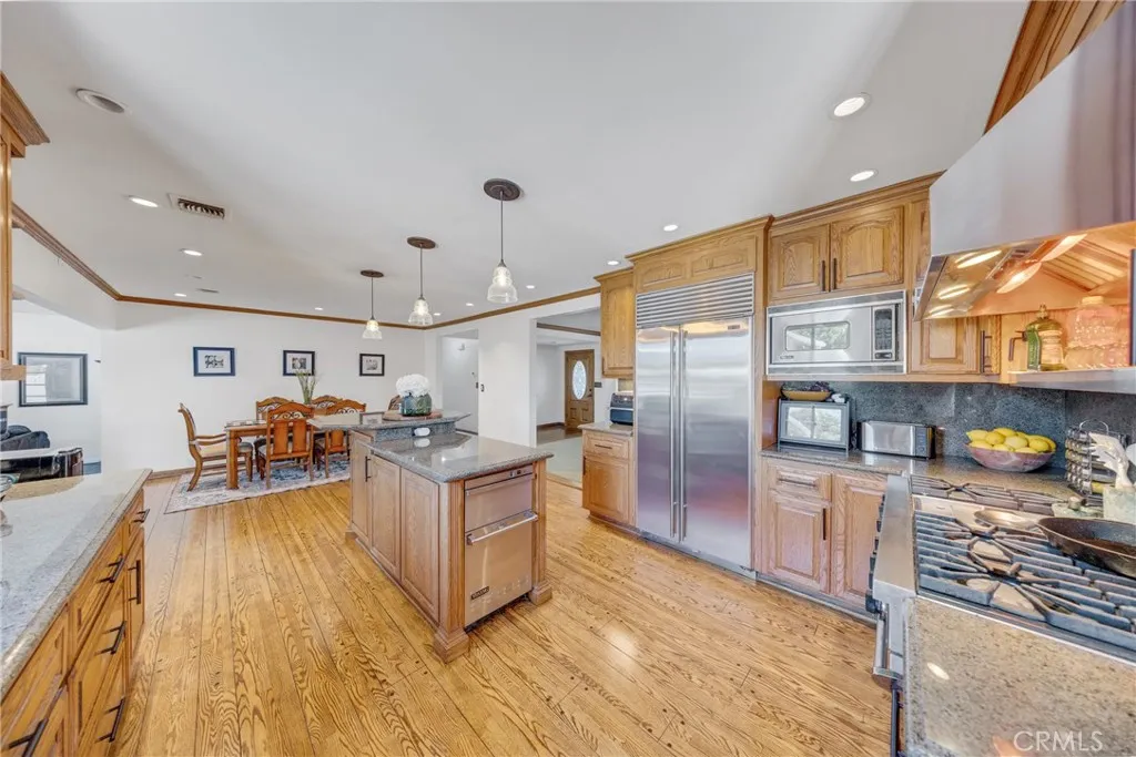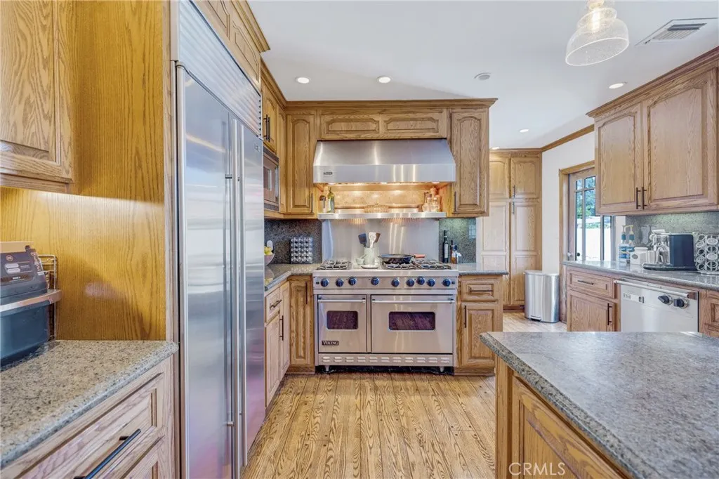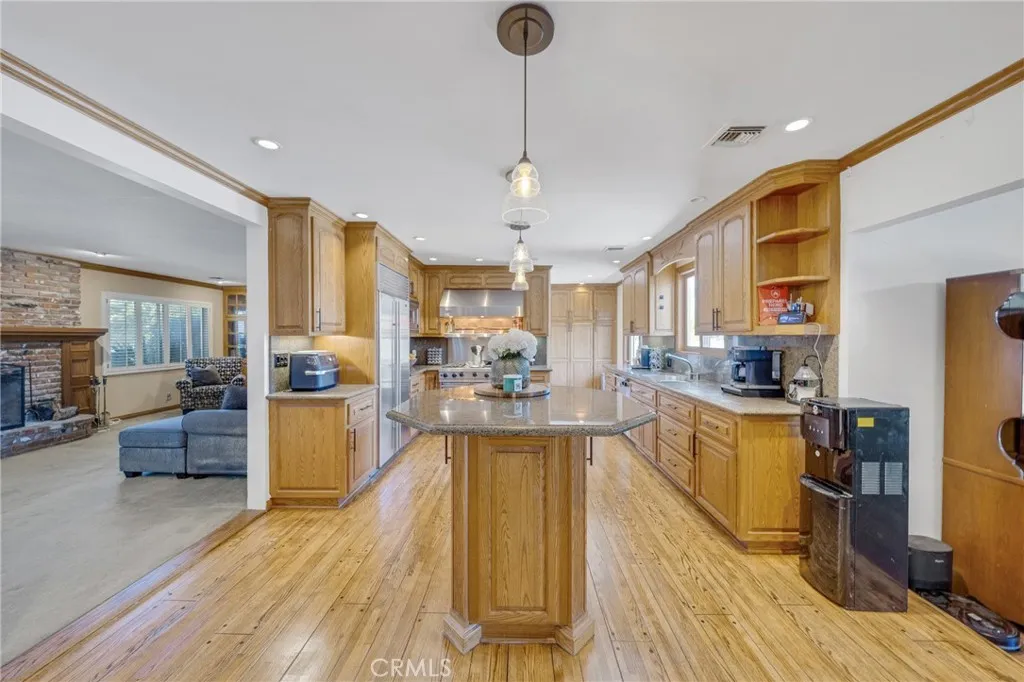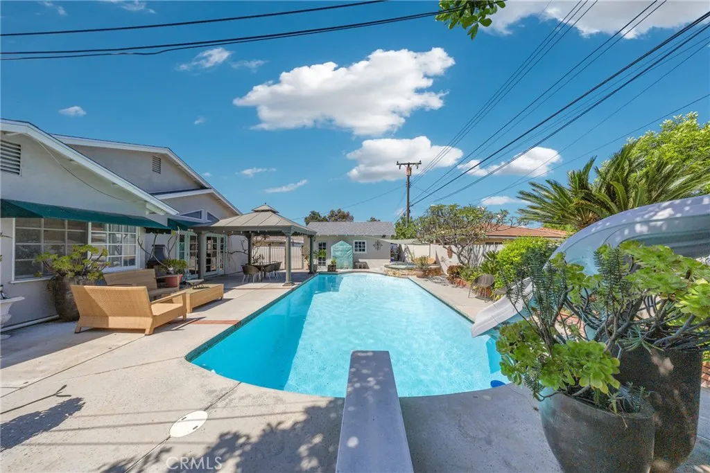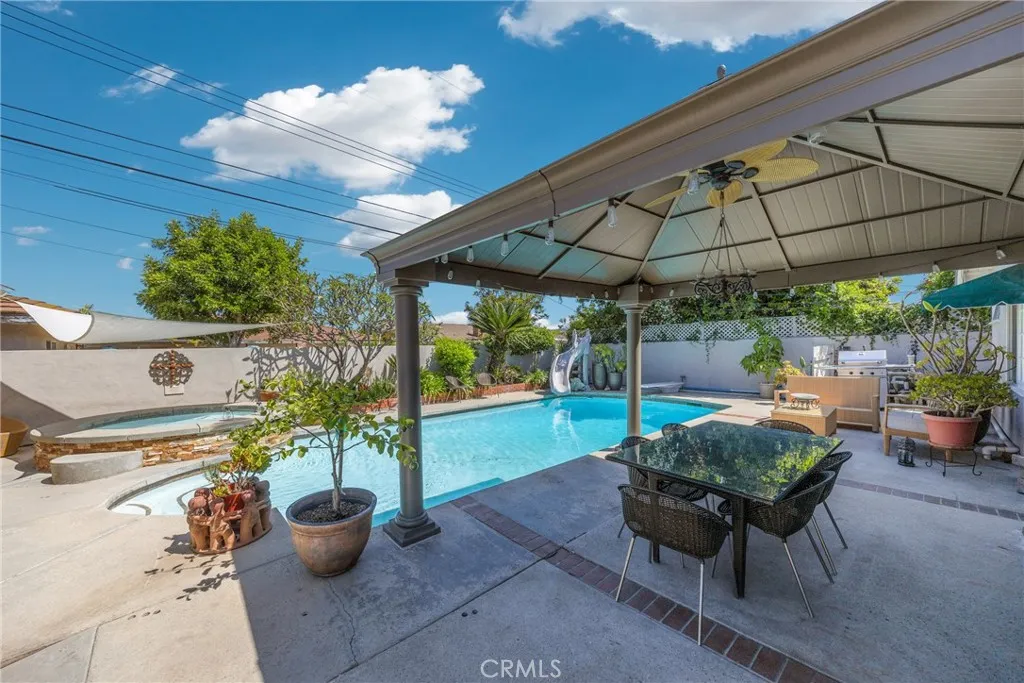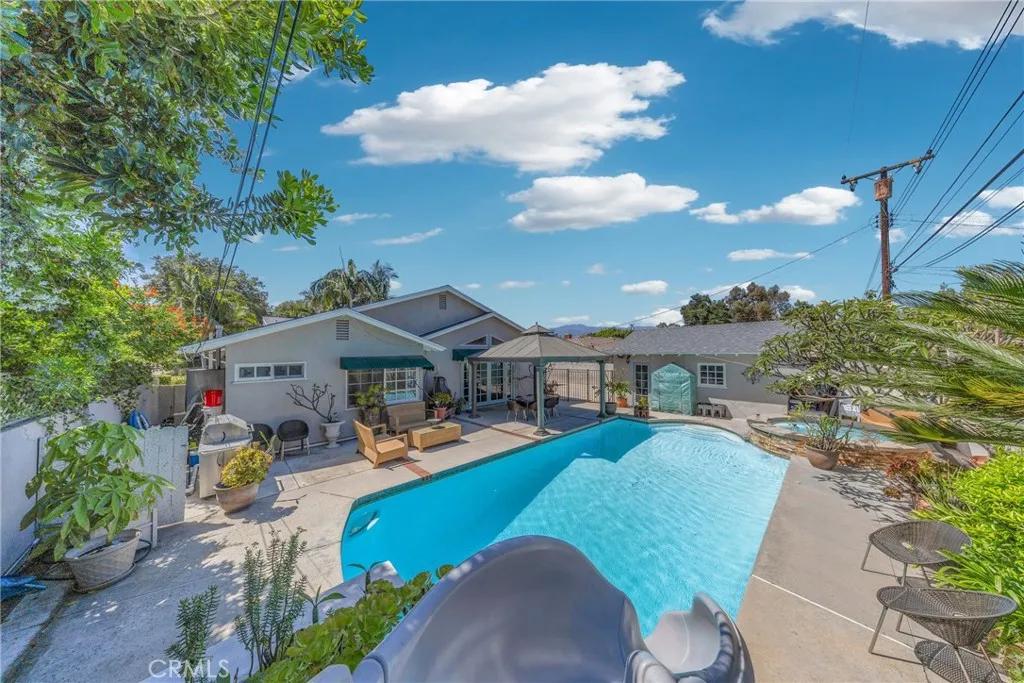 Available for the first time in over two decades, this 4-bedroom, 3-bathroom trophy home stands as a singular masterpiece in one of Covina’s most coveted cul-de-sacs. Designed for those who demand excellence, the residence unfolds into a massive open layout, at the heart of the home, the chef’s dream kitchen, featuring a seamless single-slab granite island, full-height granite backsplashes, and a professional-grade Viking range complete with six burners, dual ovens, an integrated food warmer and Sub-Zero refrigerator. Adjacent to the heart of the home, a sprawling attached den serves as the ultimate entertainment hub, boasting high-performance waterproof LVP Cortec flooring and a magnificent custom bar finished with thick granite, a built-in refrigerator, and dedicated cabinetry. Every corner of this property has been meticulously curated, from the original hardwood floors in the entry and bedrooms to the primary suite’s sanctuary, which features a jetted tub and a cutting-edge anti-fog LED mirror. Beyond its aesthetic brilliance, this estate is a marvel of modern efficiency and outdoor luxury, meticulously upgraded for the next generation of ownership. The property is powered by 24 fully paid-off solar panels and supported by a brand-new 5-ton HVAC system with fresh ducting and insulation, ensuring year-round comfort under a pristine new roof. Outside, the resort-style grounds are anchored by a heated pool and jacuzzi, elevated by a diving board and a custom waterfall slide that creates an atmosphere of pure tranquility. With fresh interior and exterior paint, a driveway and garage capable of hosting up to seven vehicles, and a location within the prestigious Charter Oak school district, this home offers an unparalleled blend of scale, sophistication, and represents rare turnkey opportunity that combines luxury amenities and long term value.